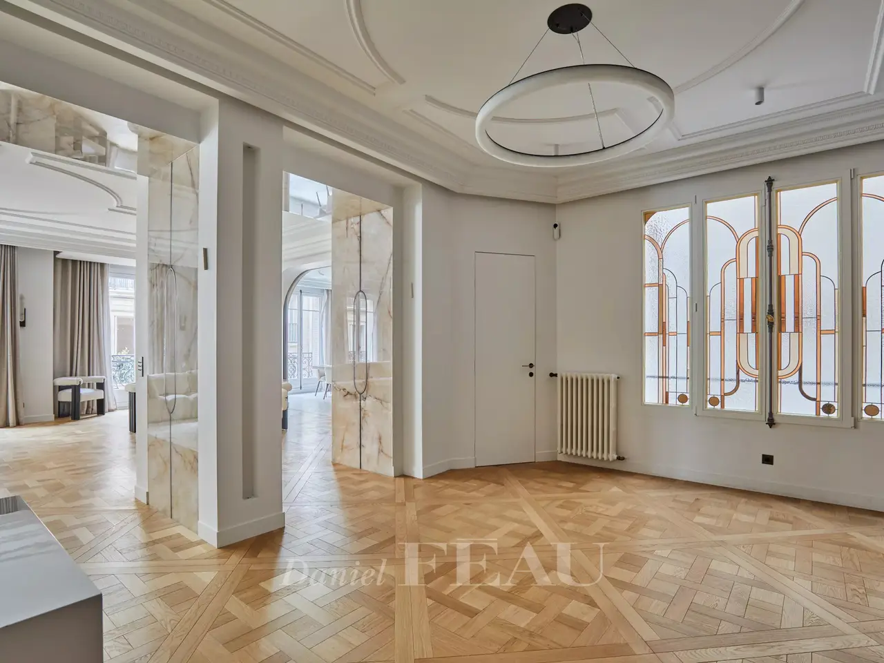 Sole Agent. Place Victor Hugo. This exceptional apartment offering 255.11 sqm of living space as defined by the Carrez Law is on the 2nd floor of a fine late 19th century building. Meticulously renovated throughout and air-conditioned, it includes an entrance hall, a 53 sqm triple living/reception room, a 25 sqm kitchen with dining facilities, a master suite, and three further bedrooms with bathrooms. With a cellar.