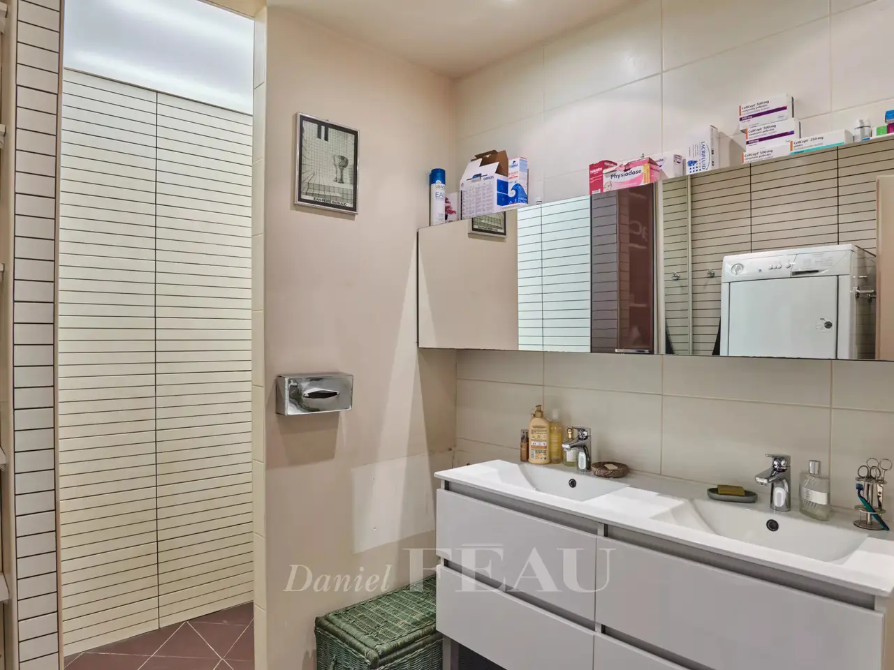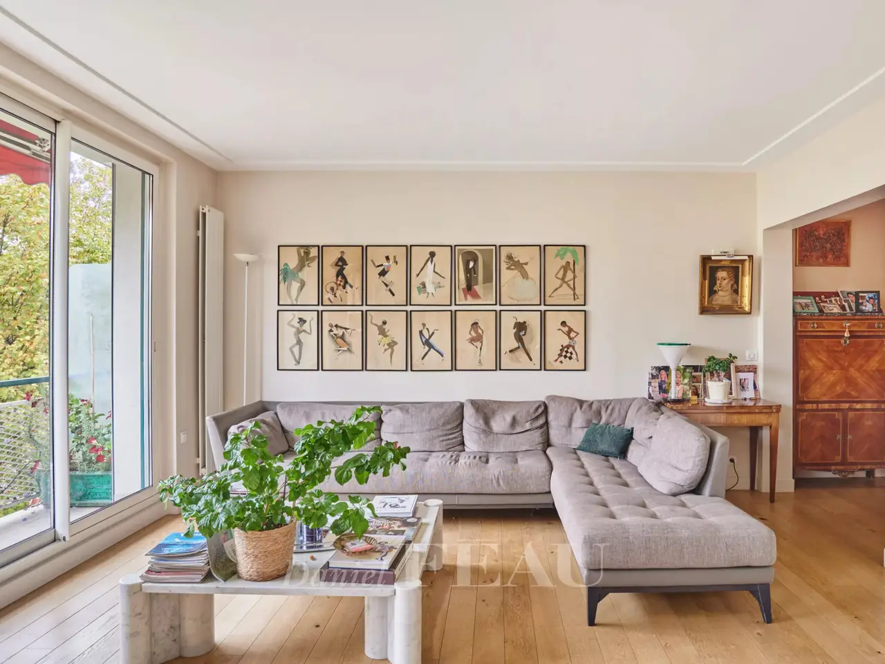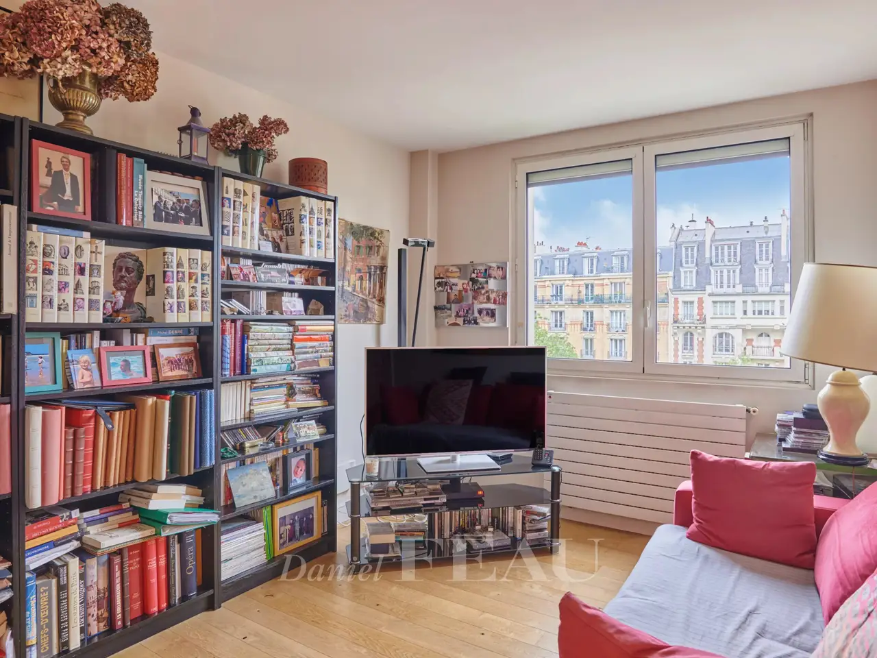 Quai Louis Blériot. This bright dual-aspect apartment on the 5th floor of a luxurious mid 20th century building with a lift enjoys an open view of the Seine. In very good condition, it offers 89 sqm of living space including a 30 sqm living/reception room opening onto a continuous balcony, a separate equipped kitchen, two 12 sqm bedrooms, a shower room and a separate wc. Ample fitted storage space. Cellar. Parking is possible in the courtyard. In a convenient location near the shops and transport networks. Jean-Baptiste Say catchment area.