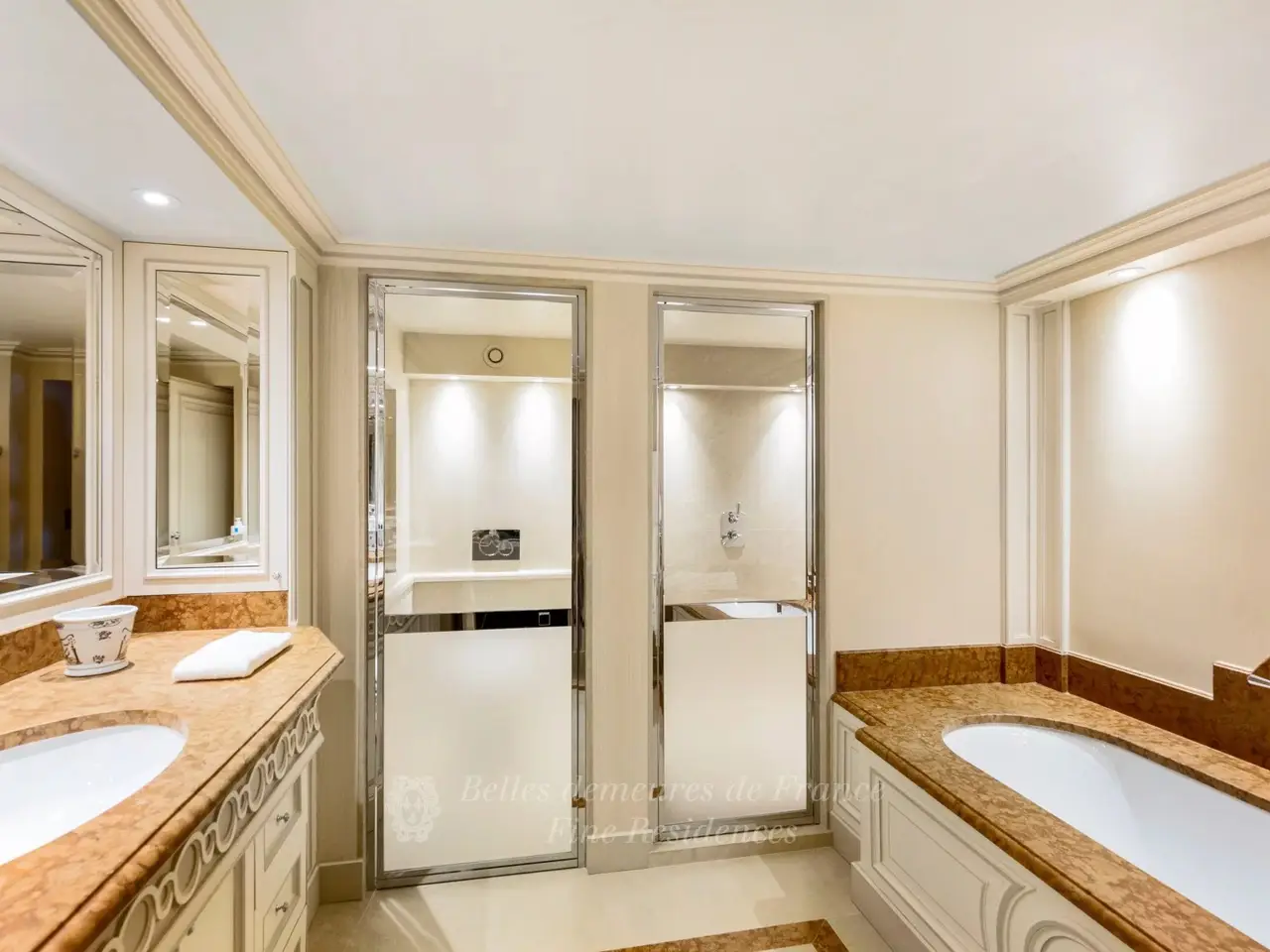 This sumptuous apartment on the « piano nobile » of a magnificent late 19th century building commands an exceptional view of Place des Etats-Unis. Meticulously renovated throughout while preserving and highlighting superb period features including high ceilings, panelling and Herringbone parquet flooring, it includes an elegant entrance hall, a superb 62 sqm living/reception room, a study/library, a dining room, a beautifully equipped kitchen, a grandiose master suite with a TV lounge, a bathroom and a dressing room, a second suite with a bathroom and dressing room, and a generously proportioned utility room. With a spacious staff studio apartment and two lock-up garages.