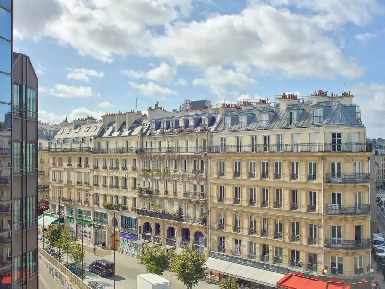 This dual-aspect apartment offering 77.74 sqm of living space as defined by the Carrez Law is on the 4th floor of a relatively recent building located in the heart of the capital’s les Halles neighbourhood. East and west facing, it includes a living/reception room opening onto a 40 sqm terrace commanding open views, a separate kitchen (open-plan would be possible), two bedrooms (one opening onto a balcony overlooking a peaceful courtyard), and two bathrooms. Cycle storage premises. Renovation is required to exploit the full potential.