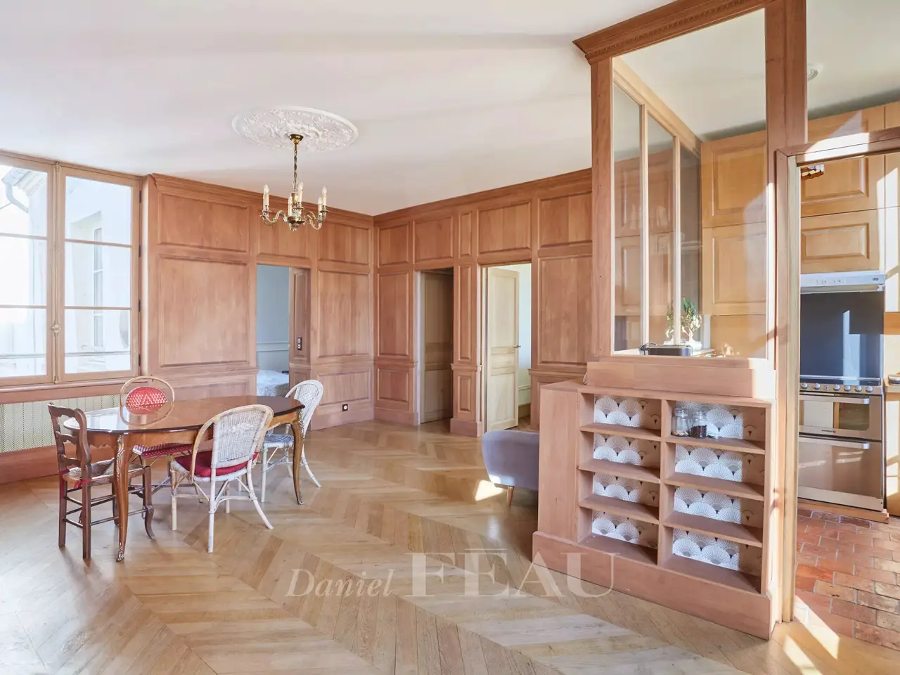 Fondation Pinault neighbourhood. This 91 sqm apartment bathed in sunshine is on the 3rd floor of a perfectly maintained 18th century building. It includes a spacious panelled living/reception room and dining room featuring near 3-metre high ceilings, a kitchen, three bedrooms, a bathroom and a study.