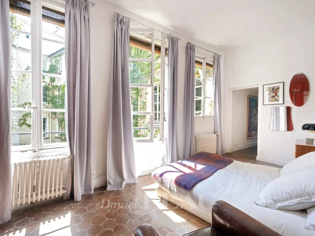 Rue de Saintonge, in the historic Haut Marais neighbourhood. This magnificent dual-aspect apartment is on the second floor of a superb early 18th century building featuring a remarkable façade and a majestic main staircase. Triple-aspect and bathed in sunshine, It includes a refined living/reception room, a dining room, an equipped kitchen, a bedroom with a bathroom, and a second bedroom with a shower room overlooking a courtyard. Period features include Versailles-style parquet flooring, terracotta floor tiles, Burgundy flagstones, panelling, mouldings, interior shutters and fireplaces. In a prime location a stone’s throw from rue de Bretagne and Enfants Rouges Market.