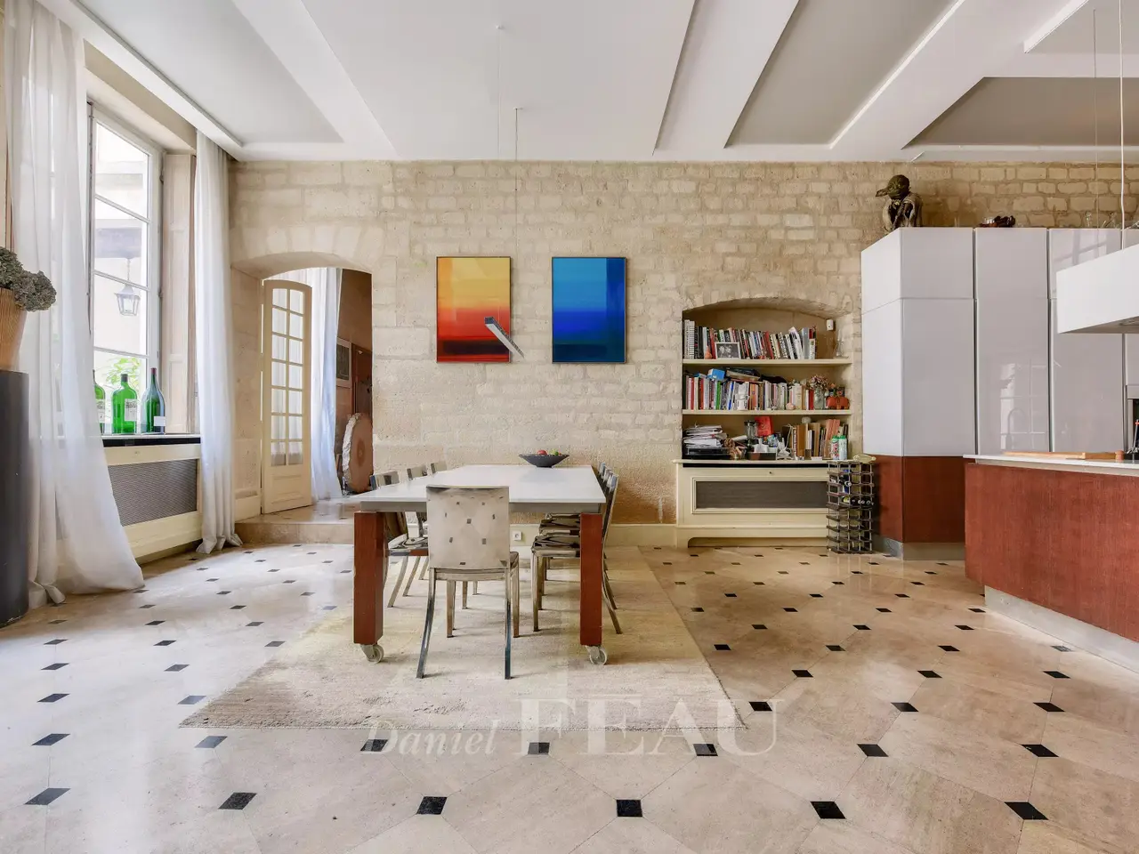 Rue Quincampoix. This magnificent duplex apartment overlooking a paved courtyard is on the ground and first floor of a listed 17th century co-ownership. Directly accessed by means of the main courtyard, it offers 176.26 sqm of living space including a grandiose entrance hall, a 76.33 sqm living/reception room featuring 3.90 metre high ceilings and with a TV lounge featuring a stone fireplace, a fully equipped kitchen, a second sitting room area and a dining room, and a bedroom. Magnificent period features include exposed stone, marble, a fireplace and exposed beams. A wide staircase with wrought-iron banisters leads to two further bedrooms, two bathrooms and a dressing room.