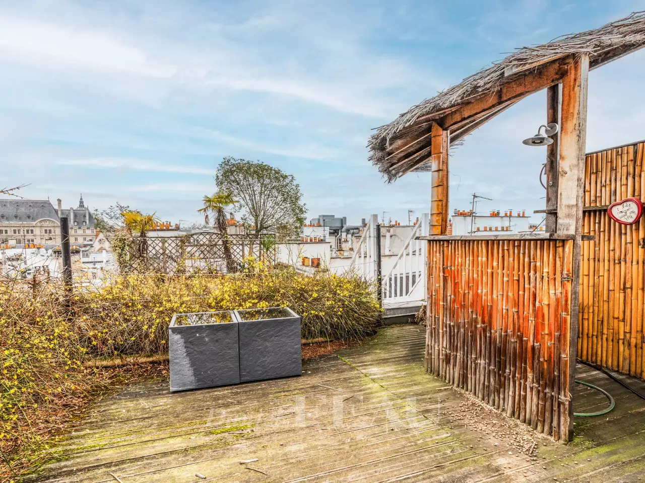 Between Notre Dame Cathedral and the Panthéon. This atypical apartment offering 118 sqm of bright and peaceful floor space and 108 sqm of living space as defined by the Carrez Law is on the 4th and top floor of a late 19th century building with a lift. Enjoying an open view over the rooftops, it includes a spacious living/reception room, a kitchen with dining facilities, a bedroom with a shower room, and a separate wc. Upstairs are two rooms including a master suite with a bathroom, both of which open onto a sunny terrace. A roof terrace commanding a panoramic view of the capital’s iconic landmarks is on the top floor. Henri IV catchment area.