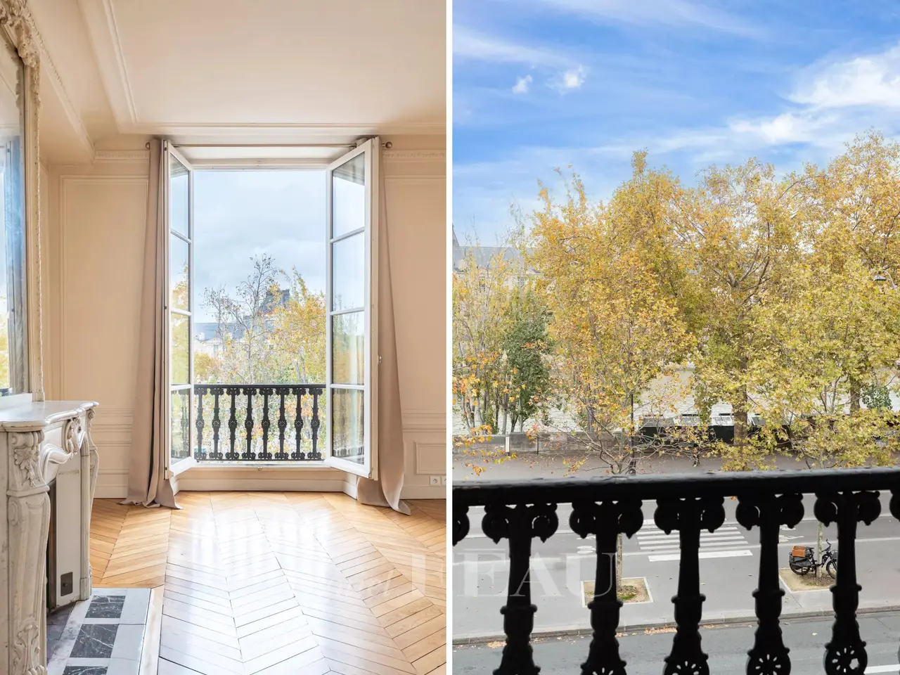 Boasting a beautiful view of the Seine, this apartment, located on the second floor of a building with an elevator, offers approximately 200 sq m of living space. Currently divided into two units due to a previous partition, it will be restored to its former glory after renovation, becoming a spacious family and entertaining apartment. The future layout will create a grand entrance hall, a large double living room, a kitchen with dining area, a laundry room, and three or four bedrooms overlooking the courtyard, each with its own bathroom and toilet. Features include remarkable proportions (3.40 m high ceilings), parquet flooring, moldings, and fireplaces. A parking space in the building's courtyard and a cellar are also included.