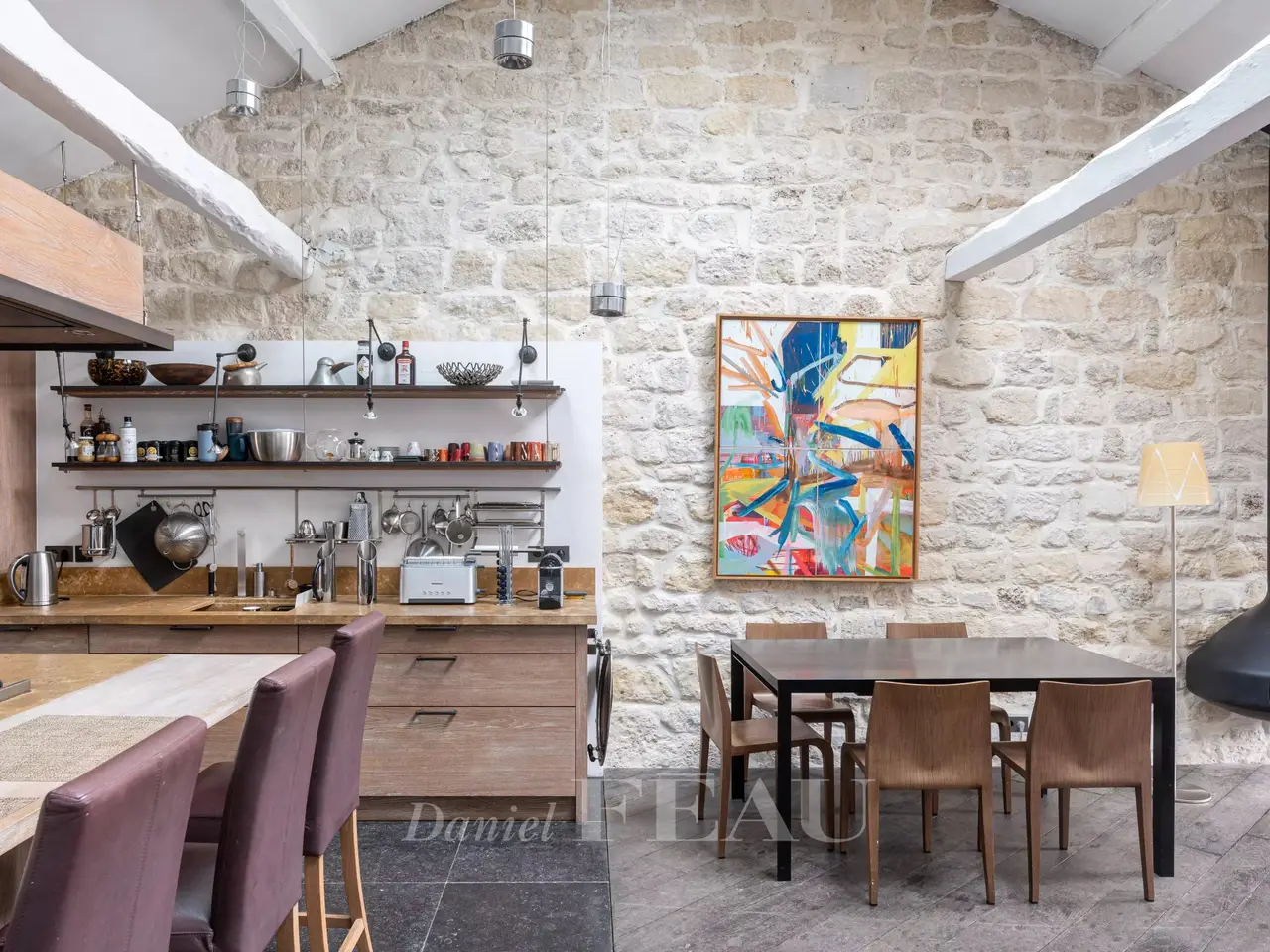 This atypical five-storey mid 19th century property with a lift is located a stone’s throw from Luxembourg Gardens. Offering 427 sqm of floor space and 324 sqm of living space, it includes a ground-floor counter-current lap pool, and access to the lift and the staircase accessing all floors. The first, second and third floors each comprise a spacious bedroom or study, a bathroom and a wc. It would be possible to create two further bedrooms if required. An elegant music room in the style of a piano-bar is on the fourth floor. The top floor includes a superb dual-aspect living/reception room featuring a soaring ceiling, and an open-plan kitchen. On a basement with a utility room and a wine cellar.