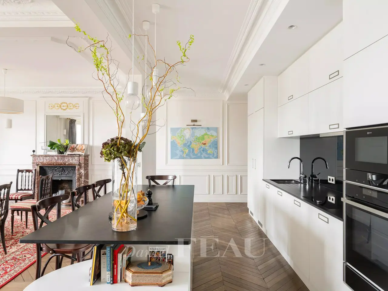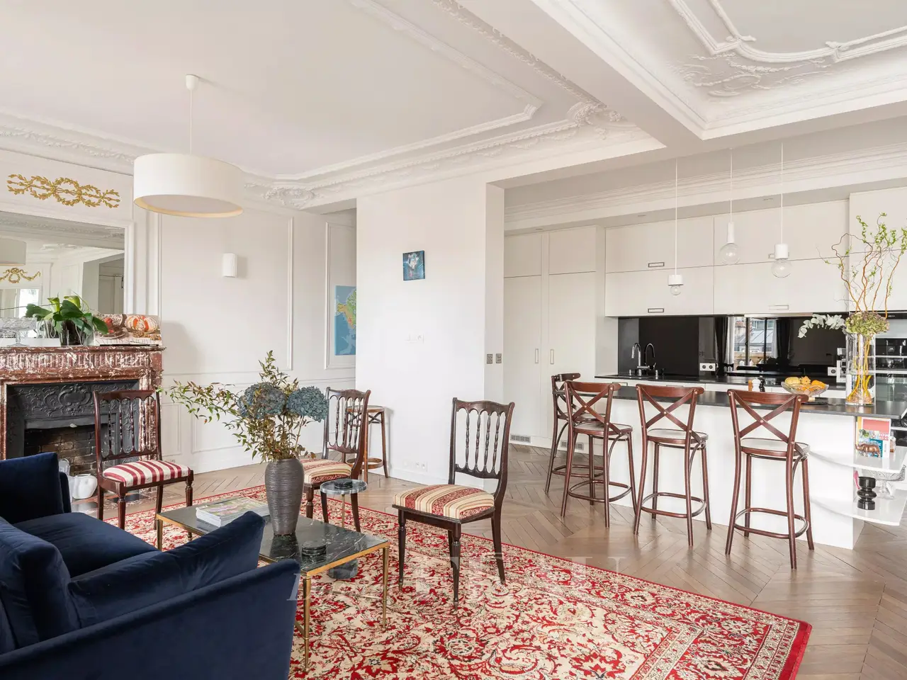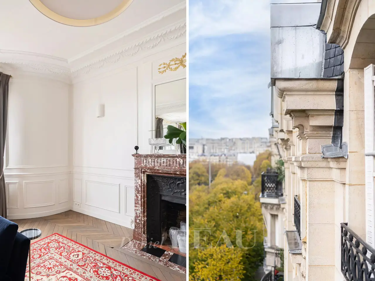 Suffren/Champ-de-Mars neighbourhood. This magnificent dual-aspect apartment benefiting from balconies enjoying open views is on the 6th floor of a fine early 20th century building with a caretaker and a lift. 114.62 sqm of bright living space in very good condition includes a south-west facing double living/reception room, a sitting/dining room with a fireplace, an open-plan kitchen, a master suite with a bath/shower room and wc, a dressing room, a bedroom with a shower room and a guest wc. Ample fitted storage space. With a maid’s bedroom (kitchenette/shower), and a fitted cellar.