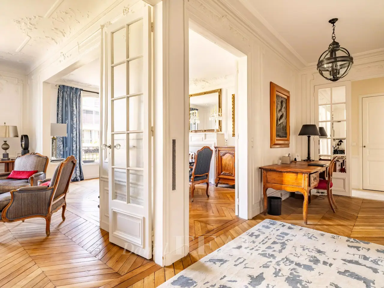 Located on the 5th floor of a beautiful pierre de taille building dating from 1910, with caretaker and elevator, this elegant 147.16 m² apartment combines classic charm with contemporary features. It comprises an elegant entrance hall, a spacious and light-filled reception room, a modern eat-in kitchen, as well as three en-suite bedrooms and a laundry room. Fully renovated with high-quality materials, the property is in excellent condition and benefits from full air conditioning. A cellar completes this exceptional property, ideally located just 100 meters from the Champ de Mars and Rue Saint-Dominique, in the heart of one of the most sought-after areas of the 7th arrondissement.