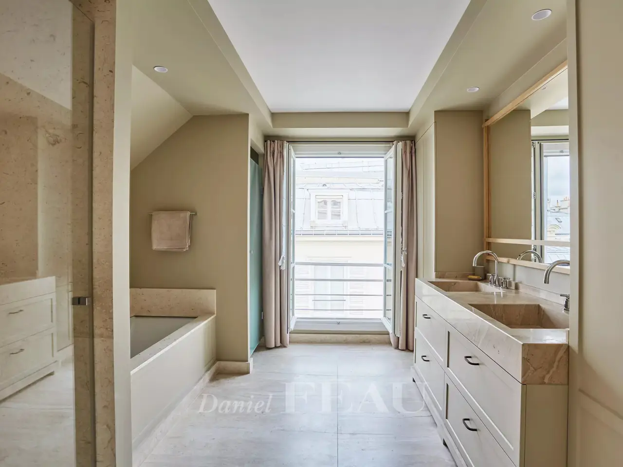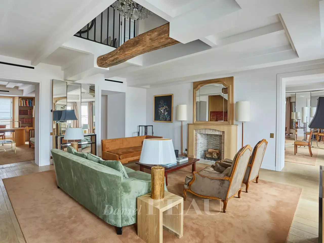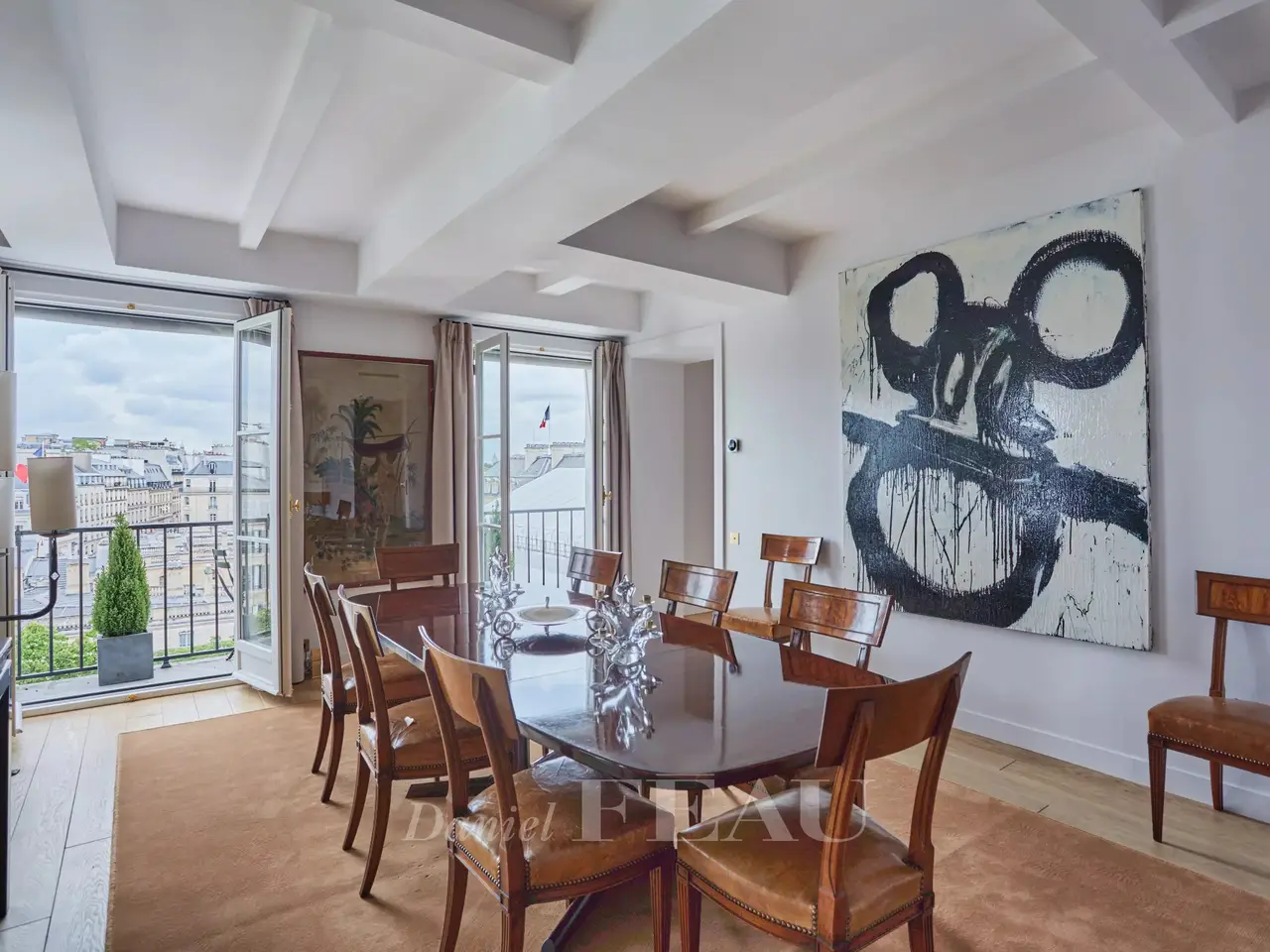 Avenue de Marigny. This superb apartment occupies the entire top floors (5th and 6th) of an elegant early 19th century building which was acquired in the mid 1950’s by James and Elie Rothschild, and the apartment itself was the Parisian pied a terre of Gianni and Marella Agnelli for many years. Offering 219 sqm of floor space and 208 sqm of living space as defined by the Carrez Law, it has been meticulously renovated and decorated throughout. It includes a living/reception room and dining room opening onto a 9 sqm continuous balcony, a drawing room or study, a kitchen with dining facilities, a guest wc, and a master suite with a bathroom, a dressing room and a wc. The top floor comprises two further suites and a utility room. Reversible air conditioning. With an 11 sqm vaulted cellar. A parking space may be possible in a side street. The building’s environment is remarkable, being in the immediate vicinity of the Elysée Palace, formerly the Hotel d’Evreux which was offered by King Louis XV to the Marquis de Marigny in 1753. Also close by is 23 avenue Marigny and the Hôtel de Marigny, built in 1873 for Baron Gustave de Rothschild, and currently a residence for the Presidential palace’s prestigious guests.