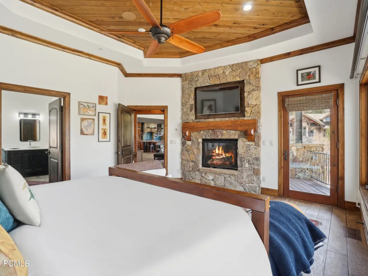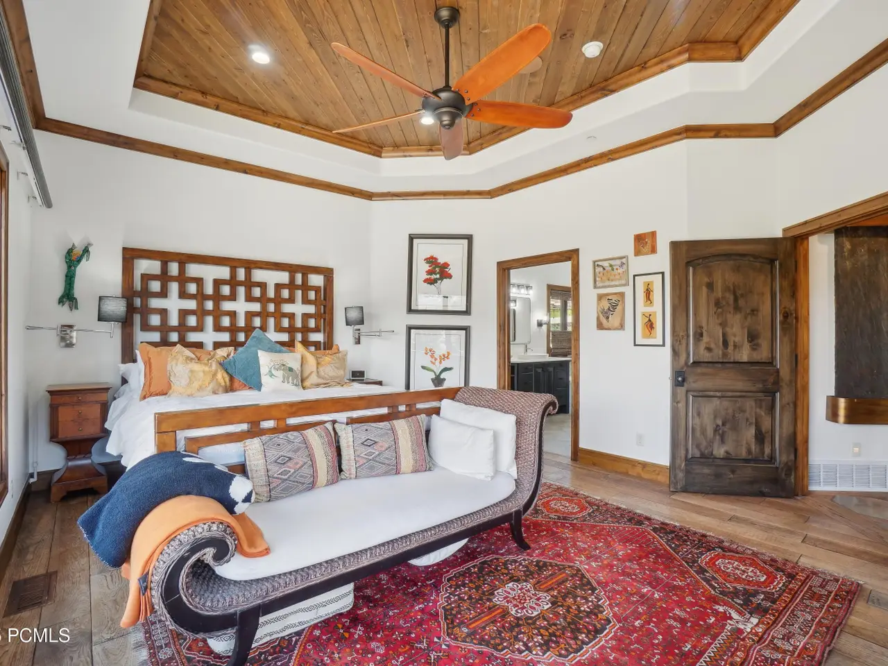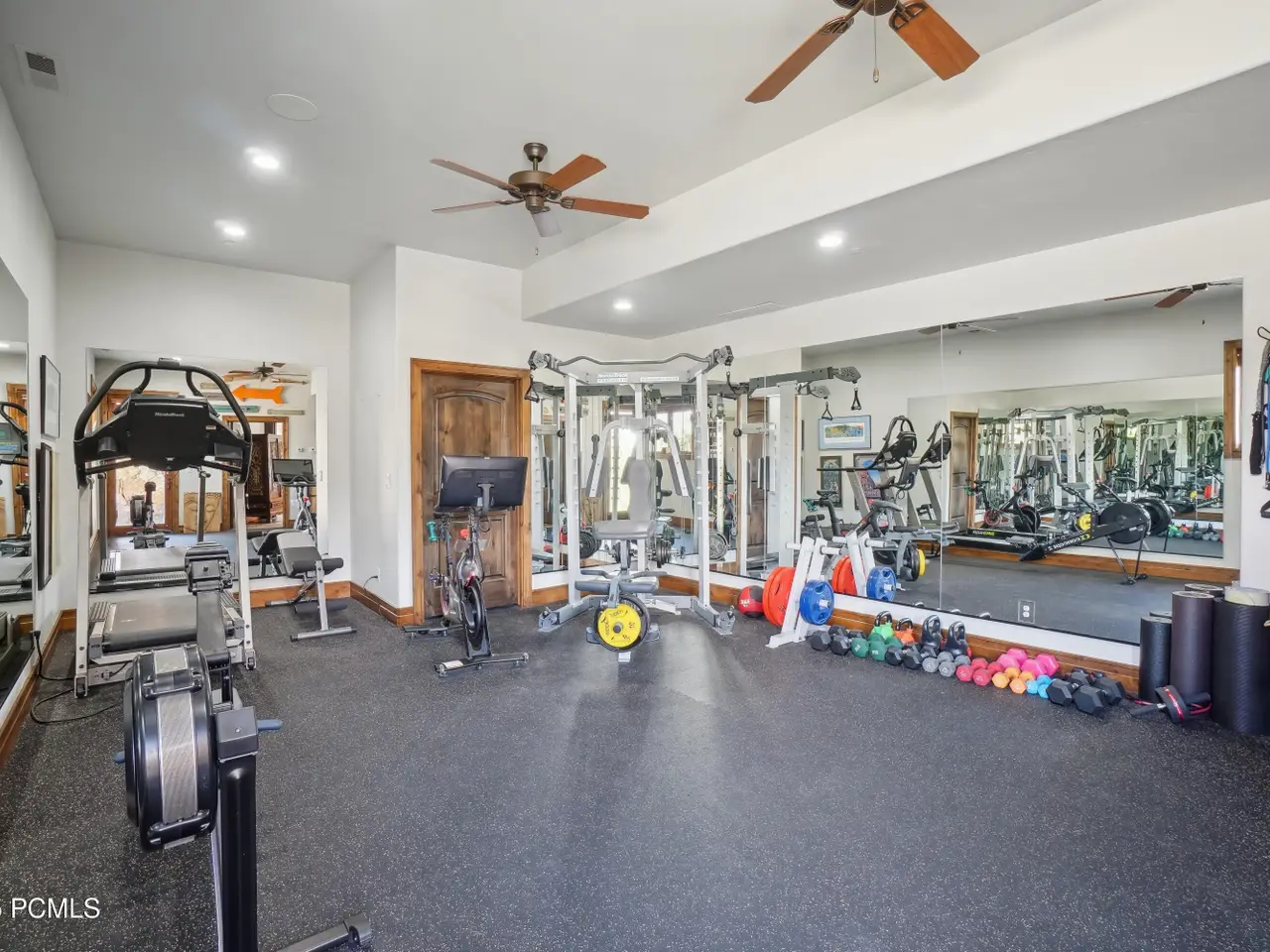 This stunning residence offers gorgeous contemporary craftsman design, stunning panoramic ski views, and an incredible location in the heart of Park Meadows. The home is anchored by its spacious great room, with soaring architectural ceilings, custom stonework, hickory floors, and cozy wood-burning fireplace. The open-concept kitchen features Viking appliances, large center island, walk-in pantry, and beautiful granite countertops. The great room offers access to the expansive wrap-around deck — the perfect spot for entertaining family and friends, or simply relaxing and enjoying the spectacular mountain vistas. The main-level primary suite is a peaceful sanctuary with wonderful natural light and gas fireplace. The en suite bathroom offers radiant heated floors, soaking tub, and generous walk-in closet space. The main floor also features another large bedroom suite, powder bath, laundry room, and mud room area with ski storage. The lower level of the home features two additional, light-filled bedroom suites, a dedicated gym, powder bath, and a second living area with full wet bar and wine storage — providing another perfect space for gathering and entertaining. The living area offers access to a wraparound patio and the home's landscaped lawn and outdoor area. Additional features of the home include both radiant floor and forced air heating, wine cellar, whole-house water softener, reverse osmosis filtration, and abundant storage. A heated three-car garage and heated driveway and walkways ensure easy year-round access. The property sits in the perfect location for four-season living in Park City, just a short walk to Park Meadows Country Club and the 1,000+ miles of open space and trails in Round Valley - including summer hiking and biking trails, and groomed winter cross-country skiing. The home is ten minutes to Deer Valley and Park City Mountain Resort, or hop on free transit just steps away. Don't miss this Park Meadows luxury gem!