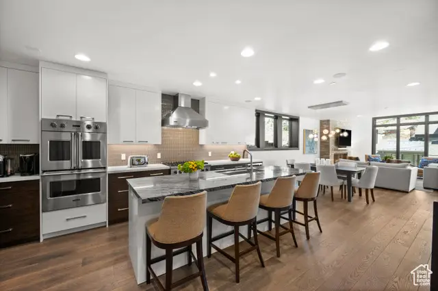 Perched amidst the coveted enclave of Old Town Park City, this elegant 4,583-square-foot contemporary residence offers a refined blend of mountain comfort and modern design. Carefully crafted with attention to detail, this home provides a sophisticated sanctuary in one of Utah's most desirable locations. Inside, the residence features sleeping accommodations for 12 guests, including four private ensuite bedrooms and a custom-designed bunk room-perfect for family and friends gathering together. Over 1,000 square feet of heated outdoor living space invites year-round enjoyment, seamlessly connecting indoor comfort with outdoor leisure. A private elevator ensures easy movement throughout the home's four levels, complemented by comforts such as a media lounge, billiards and game room, and two-car garage with two additional covered parking spaces. The home is finished with high-quality materials, including solid white oak flooring, striking stacked-stone fireplaces, professional-grade Viking appliances, and designer fixtures by Kohler, Brizo, and Hansgrohe. It is offered fully furnished with stylish, curated furnishings. Located just a short walk from Park City's historic Main Street and the Quit 'N Time ski run at Park City Mountain Resort, this exceptional home places world-class skiing, fine dining, boutique shopping, and scenic trails within easy reach. Just 35 minutes from Salt Lake City International Airport, this property offers a rare combination of convenience and mountain elegance-a true retreat in the heart of Park City.