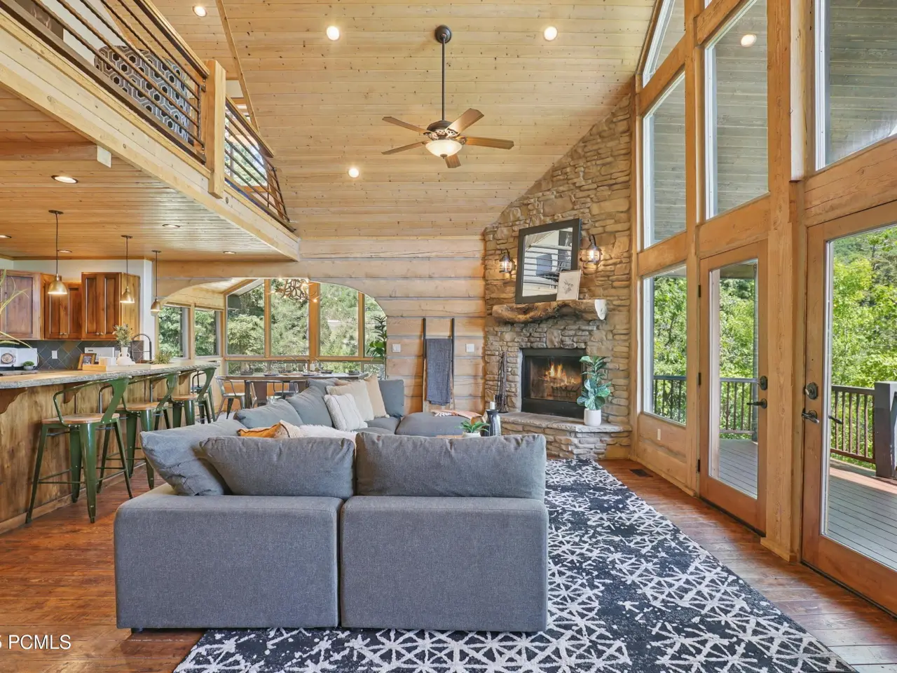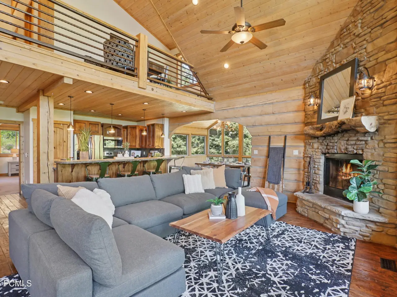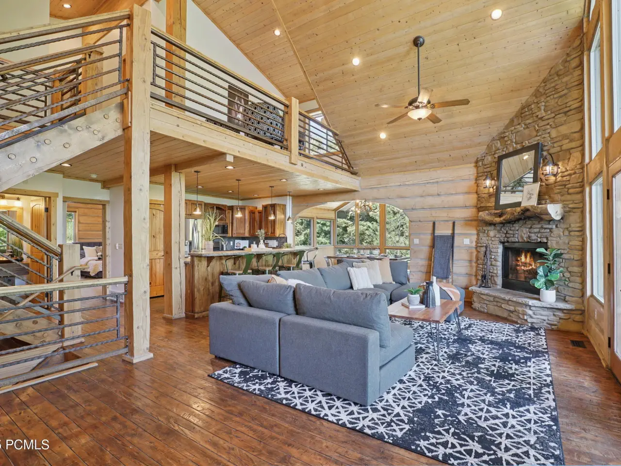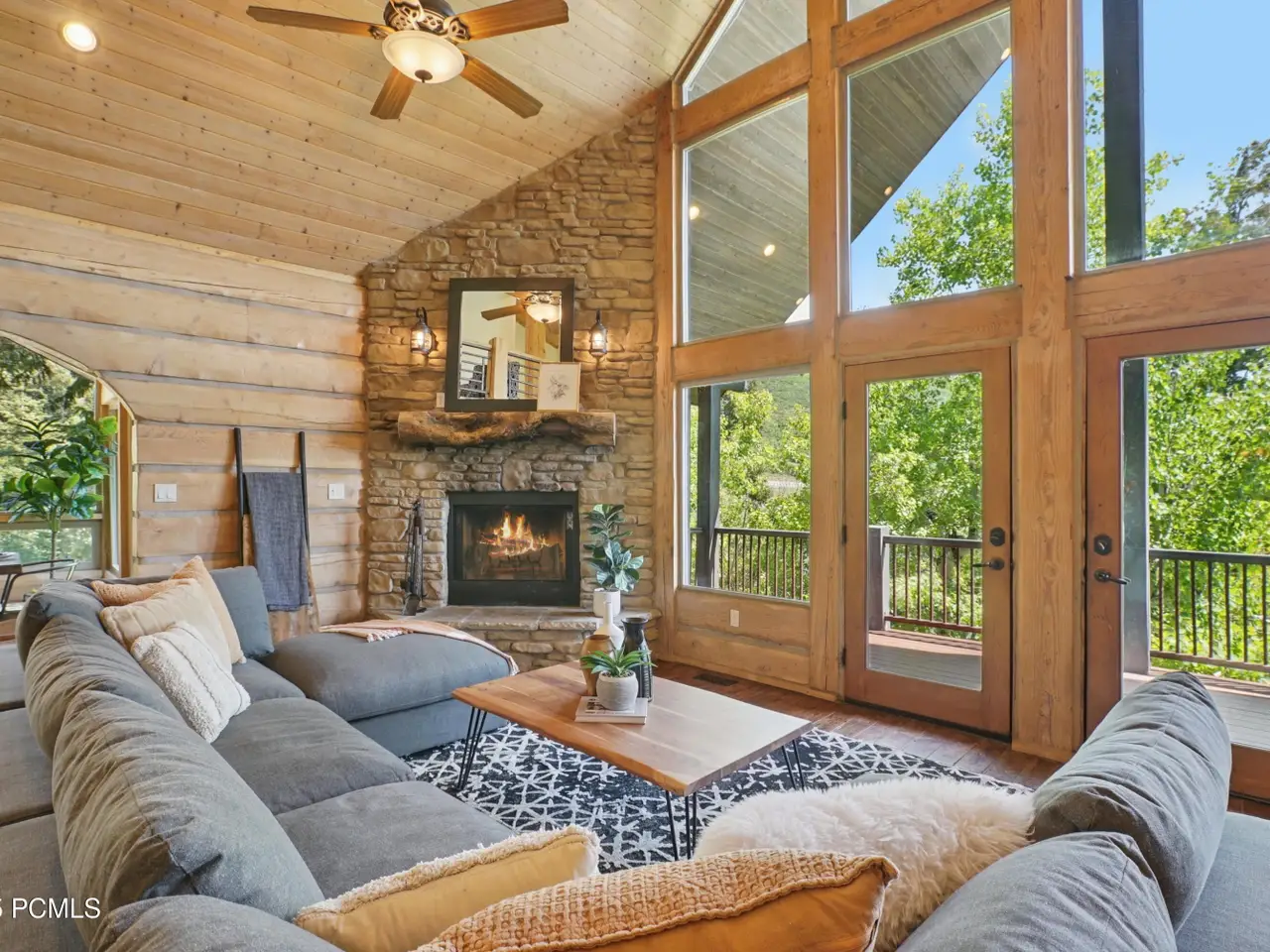 This stunning mountain retreat blends timeless alpine design with a modern, open floor plan and light-filled setting in the heart of Summit Park. On a private, wooded lot of over 1/3 of an acre, the home offers the rare combination of privacy, space, close proximity to both Park City and the Salt Lake valley—with recreation access steps away from your front door. Inside, the soaring great room makes a stunning first impression with its A-frame wall of windows, stone fireplace, vaulted ceilings, and seamless flow into the kitchen and dining areas. Perfect for entertaining or relaxing, this space captures the essence of alpine living—warm, open, and surrounded by nature. The kitchen features custom alder cabinetry, granite countertops, stainless steel appliances, and a generous breakfast bar. Just beyond, a bright, window-wrapped dining area looks out onto the evergreens and hills beyond. The main-level primary suite is a quiet retreat with a walk-in closet and en suite bath, including dual sinks, walk-in slate shower, and soaking tub. Upstairs, a lofted office or study area provides an inviting and light-filled workspace, while two additional bedrooms offer privacy, charming architectural features, and views. The lower level features a spacious second living room with wet bar, game area, gas fireplace and walk-out access. This level also features a laundry room, fourth bedroom, and generous storage. Additional features of the home include a two-story, oversized two-car garage, central vacuum, and electric pet fence. The home's picture-perfect outdoor living spaces include an expansive main-level deck with views, a peaceful and private yard, and a secluded hot tub—perfect for stargazing or après-ski soaks. The property is just steps from trail heads for access to Park City's world-renowned trail system, and is located in the Park City School District. Nightly rentals are allowed. Don't miss this mountain contemporary gem in Summit Park!