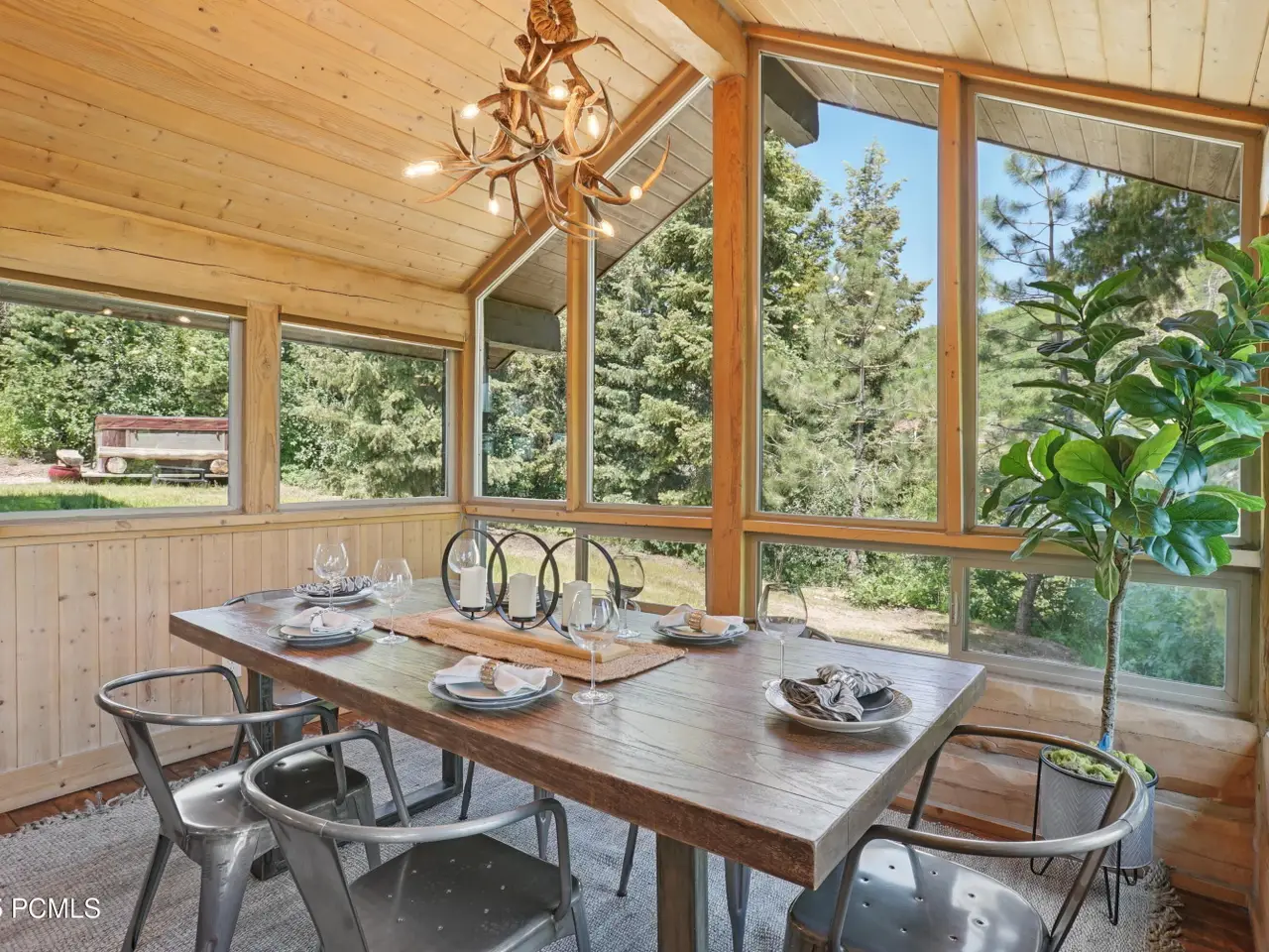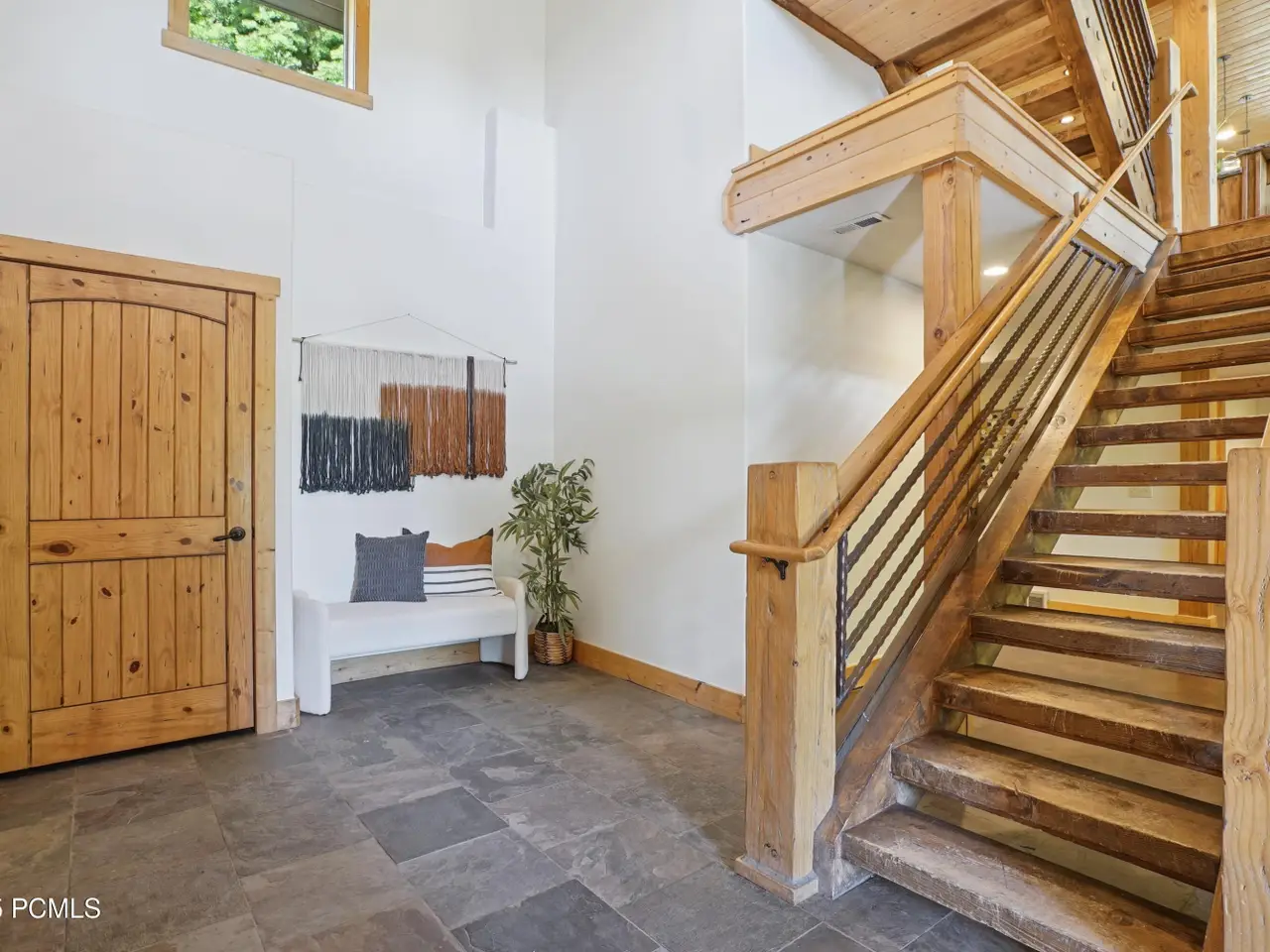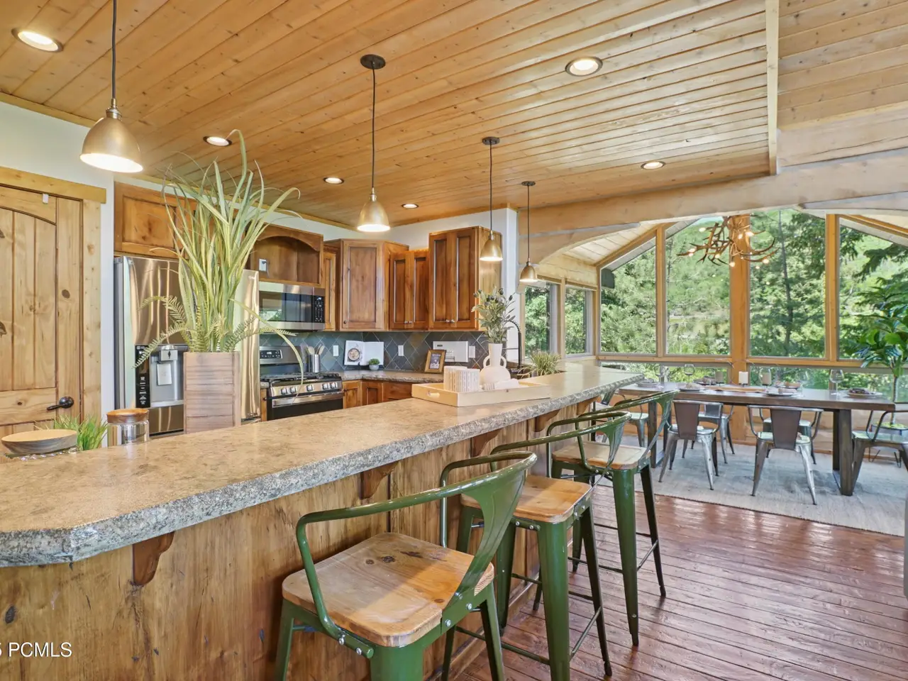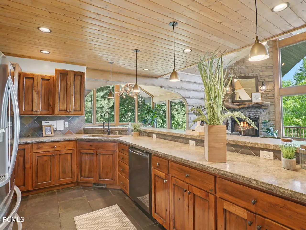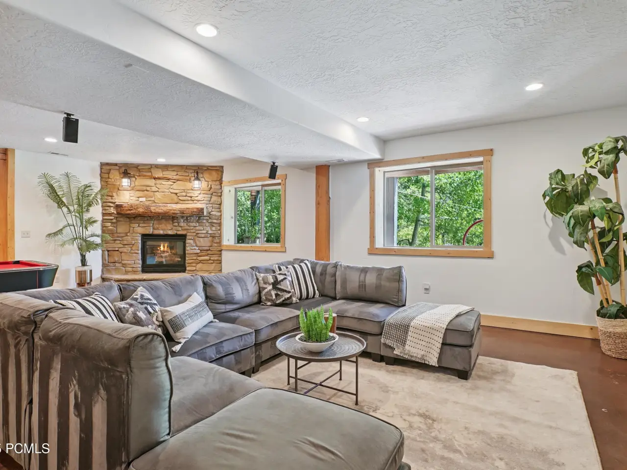 This stunning mountain retreat blends timeless alpine design with a modern, open floor plan and light-filled setting in the heart of Summit Park. On a private, wooded lot of over 1/3 of an acre, the home offers the rare combination of privacy, space, close proximity to both Park City and the Salt Lake valley—with recreation access steps away from your front door. Inside, the soaring great room makes a stunning first impression with its A-frame wall of windows, stone fireplace, vaulted ceilings, and seamless flow into the kitchen and dining areas. Perfect for entertaining or relaxing, this space captures the essence of alpine living—warm, open, and surrounded by nature. The kitchen features custom alder cabinetry, granite countertops, stainless steel appliances, and a generous breakfast bar. Just beyond, a bright, window-wrapped dining area looks out onto the evergreens and hills beyond. The main-level primary suite is a quiet retreat with a walk-in closet and en suite bath, including dual sinks, walk-in slate shower, and soaking tub. Upstairs, a lofted office or study area provides an inviting and light-filled workspace, while two additional bedrooms offer privacy, charming architectural features, and views. The lower level features a spacious second living room with wet bar, game area, gas fireplace and walk-out access. This level also features a laundry room, fourth bedroom, and generous storage. Additional features of the home include a two-story, oversized two-car garage, central vacuum, and electric pet fence. The home's picture-perfect outdoor living spaces include an expansive main-level deck with views, a peaceful and private yard, and a secluded hot tub—perfect for stargazing or après-ski soaks. The property is just steps from trail heads for access to Park City's world-renowned trail system, and is located in the Park City School District. Nightly rentals are allowed. Don't miss this mountain contemporary gem in Summit Park!