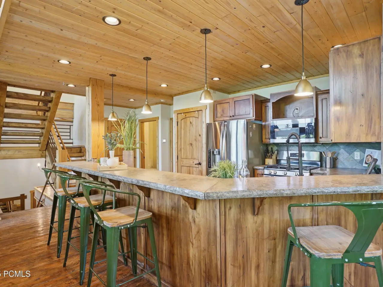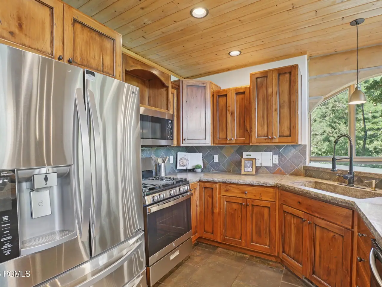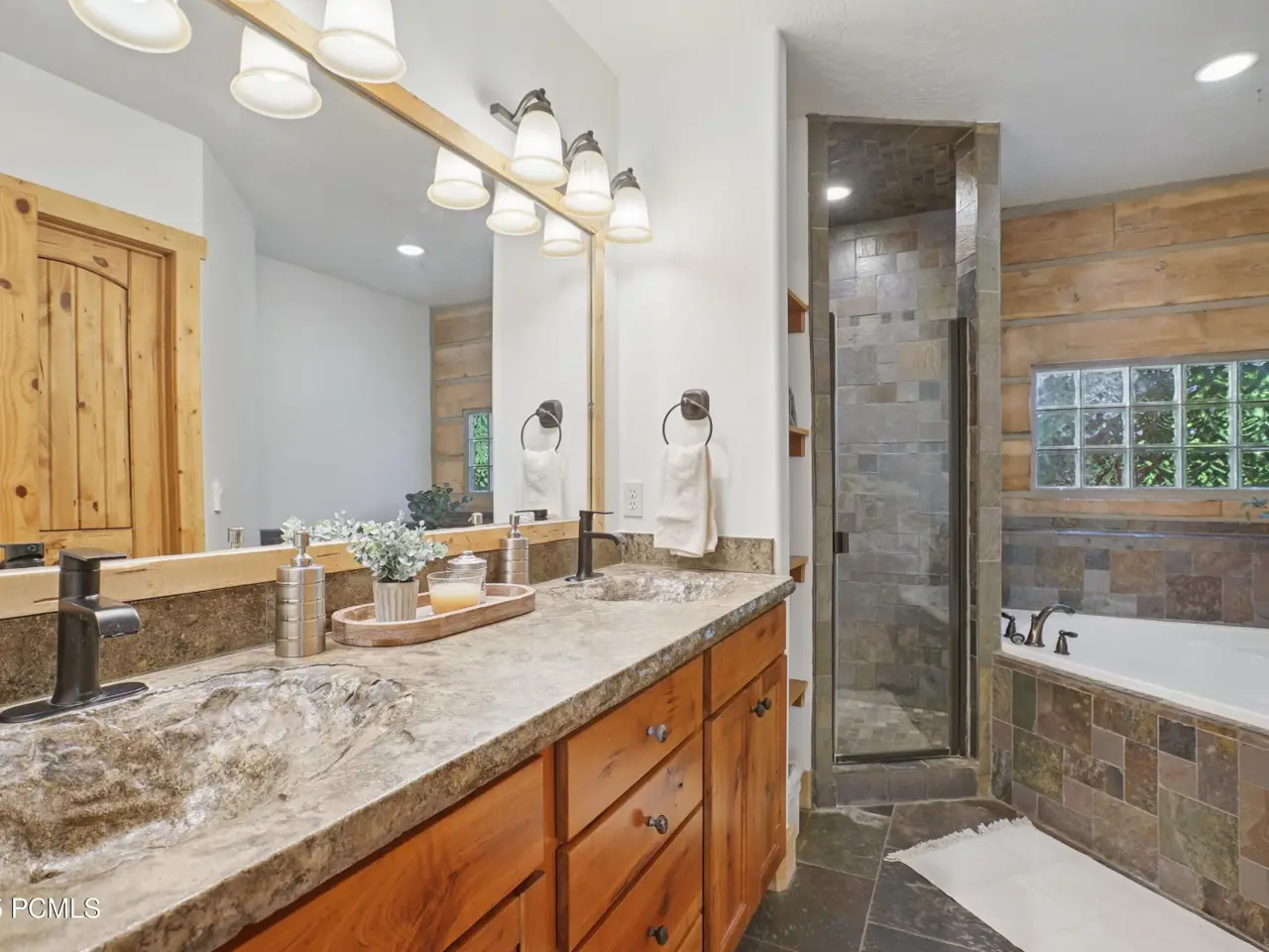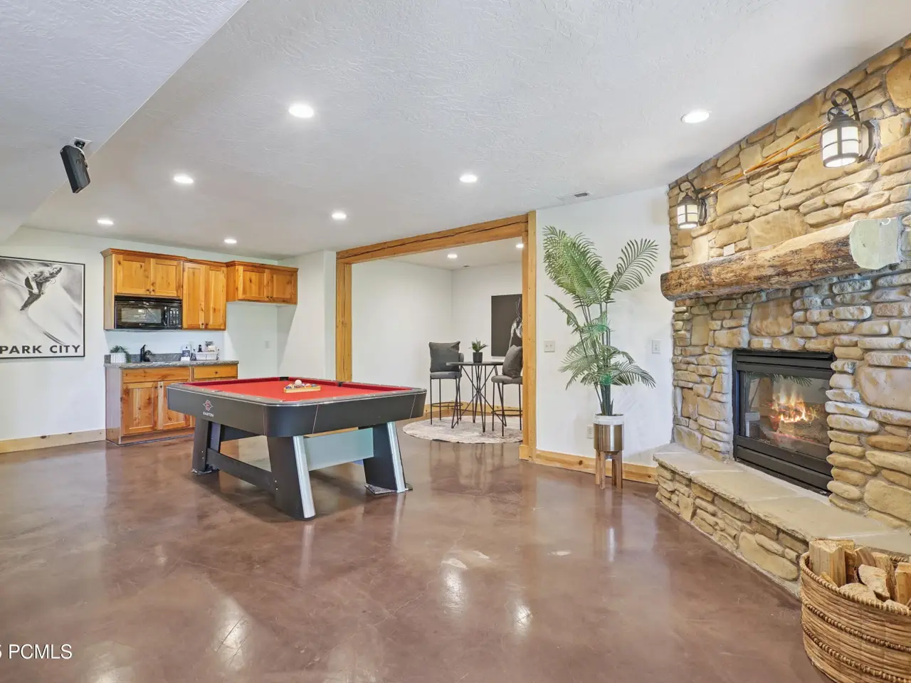 This stunning mountain retreat blends timeless alpine design with a modern, open floor plan and light-filled setting in the heart of Summit Park. On a private, wooded lot of over 1/3 of an acre, the home offers the rare combination of privacy, space, close proximity to both Park City and the Salt Lake valley—with recreation access steps away from your front door. Inside, the soaring great room makes a stunning first impression with its A-frame wall of windows, stone fireplace, vaulted ceilings, and seamless flow into the kitchen and dining areas. Perfect for entertaining or relaxing, this space captures the essence of alpine living—warm, open, and surrounded by nature. The kitchen features custom alder cabinetry, granite countertops, stainless steel appliances, and a generous breakfast bar. Just beyond, a bright, window-wrapped dining area looks out onto the evergreens and hills beyond. The main-level primary suite is a quiet retreat with a walk-in closet and en suite bath, including dual sinks, walk-in slate shower, and soaking tub. Upstairs, a lofted office or study area provides an inviting and light-filled workspace, while two additional bedrooms offer privacy, charming architectural features, and views. The lower level features a spacious second living room with wet bar, game area, gas fireplace and walk-out access. This level also features a laundry room, fourth bedroom, and generous storage. Additional features of the home include a two-story, oversized two-car garage, central vacuum, and electric pet fence. The home's picture-perfect outdoor living spaces include an expansive main-level deck with views, a peaceful and private yard, and a secluded hot tub—perfect for stargazing or après-ski soaks. The property is just steps from trail heads for access to Park City's world-renowned trail system, and is located in the Park City School District. Nightly rentals are allowed. Don't miss this mountain contemporary gem in Summit Park!
