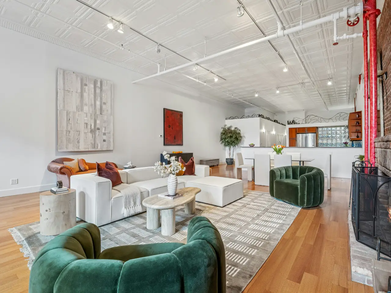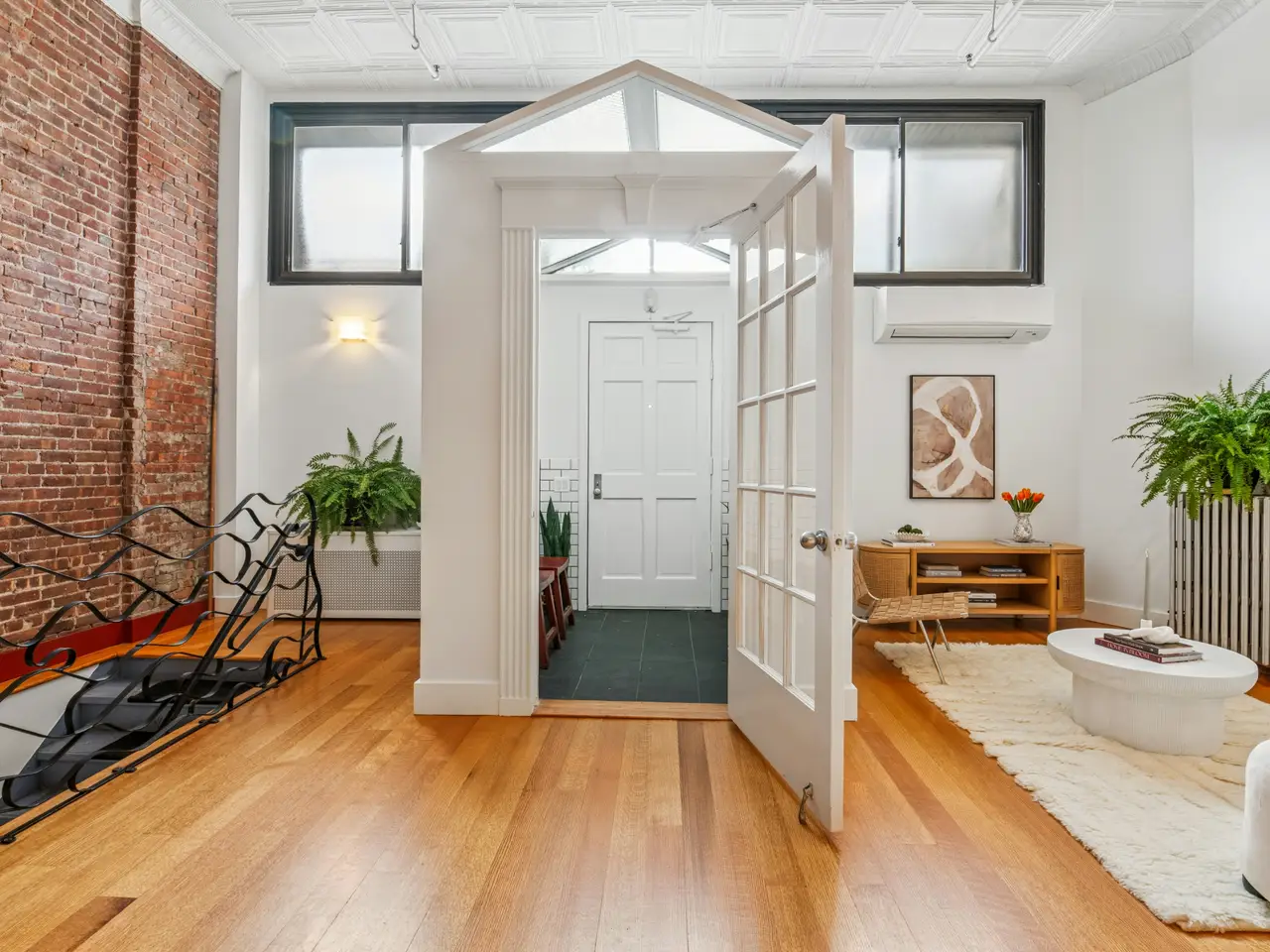 An extraordinary Park Slope residence that defies expectation. With over 3,500 square feet, this loft condominium combines industrial charm, a beautifully crafted environment, and remarkably low monthly costs. Set beneath 12-foot ceilings, this duplex is configured with an upper level one-bedroom (easily convertible to two) and a lower level featuring a spacious dance studio, dedicated office, and guest room. Upon entering the loft, the grand scale and architectural artistry of the great room immediately impress. Exquisite red oak hardwood floors, exposed brick walls, tin ceilings, a wood-burning fireplace, and bespoke ironwork create a space that is both dramatic and inviting. The large chef's kitchen has rich cherry wood cabinetry, handcrafted tile-work, a convection oven and dishwasher. The bathroom is stunning. It's a spa-inspired space with marble & stone tiling, an open rainfall shower and a clawfoot soaking tub. A staircase, framed by built-in bookshelves, leads to the sleeping loft, a lovely room perched above the great room and bathed in soft light. There is also a dedicated laundry room, a large walk-in closet, and 3 additional storage closets. The lower level opens to a professional dance studio, but if dance isn't your passion, this flexible space can be reimagined as an entrepreneurial space, architect's office, wellness studio, recreation room, or guest retreat. This gas-free home is designed with sustainability in mind, featuring split-system HVAC on both levels and an energy-efficient on-demand hot water system. This exceptional property offers rare versatility - fully residential, or a sophisticated fusion of home, business, and pleasure. Opportunities of this scale and adaptability rarely appear in the Park Slope market. Claim your place here and shape its next chapter, surrounded by Brooklyn's fantastic cultural hubs, the beauty of Prospect Park, and the vibrant shops and eateries along 5th Avenue.