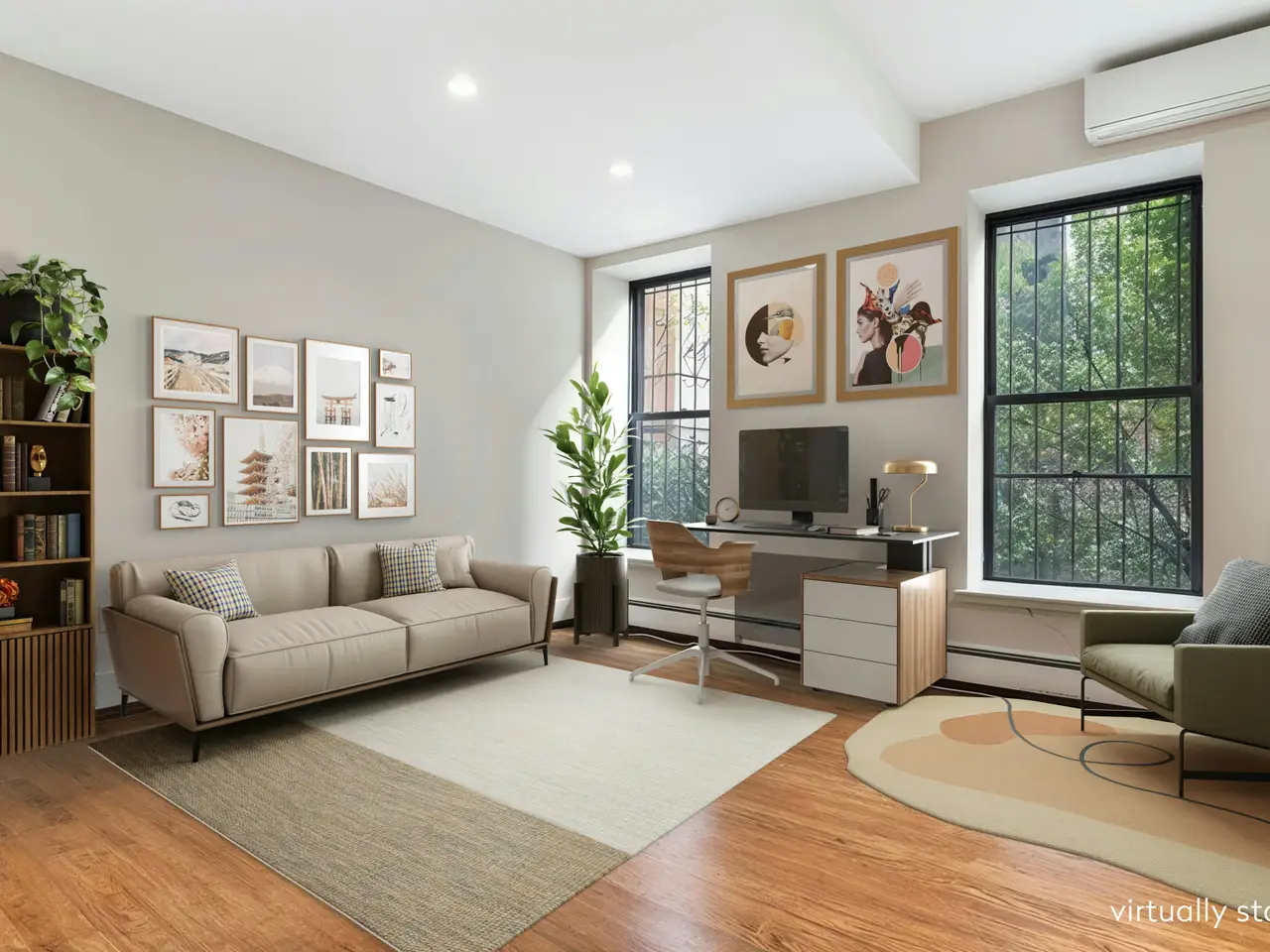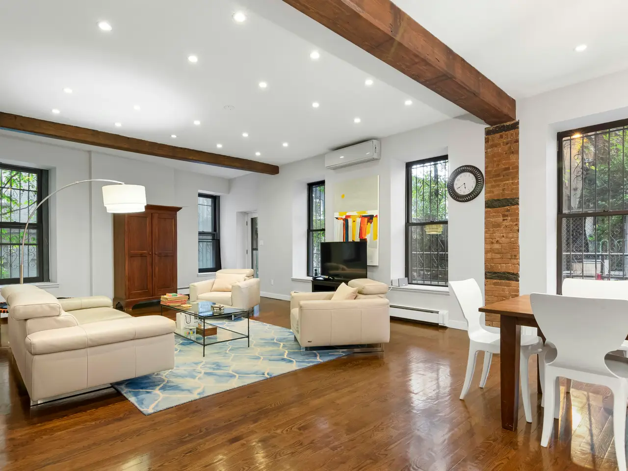 2062 sf duplex. 10ft +/- ceiling height. Lower level 8ft+ ceilings. 15 oversized windows surround this unit. 10 upstairs and 5 downstairs. Currently lived in as a 3 bdrm with a 178sf den. 2 full baths. W/D in unit. Pets allowed. Stepping into this loft is like stepping into your own private brownstone. Enjoy the luxurious comfort of space and quiet that surrounds you in this generous loft. Wood floors and beams and exposed brick provide the backdrop of a classic loft building. The modern open kitchen has ease of space whether it's just you or you with all your friends. A modern full bath on each floor. Primary bath has a self-cleaning Chromatherapy tub. There is a split system AC with dehumidifier with 2 zones. Currently is used for just AC. Unit is self-contained with a boiler just installed this last winter for heat and hot water. The 558+/-sf private garden with pavers is ready for your personal touches. There is a gracious comfort that this home brings while just outside your door the fabulous 5th Avenue vibrant and loaded with restaurants and places to explore. Moments away from Barclay center and the 2, 3, 4, 5, B, Q, N, R, D. City travel made easy.
