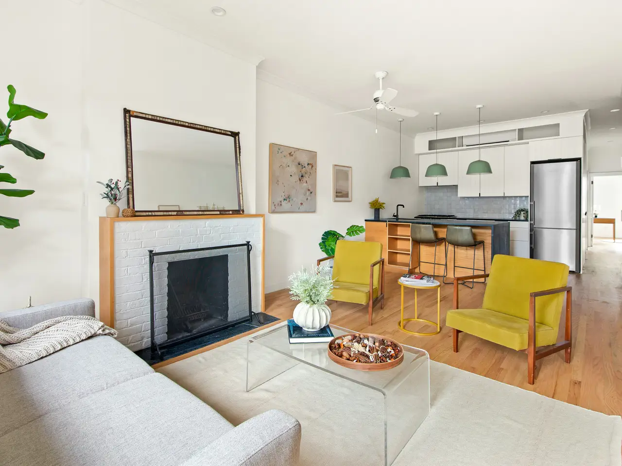 Spread out in this lovely two bedroom, two bath condo off 5th Avenue in prime Park Slope with prewar details and craftsman finishes. Just one flight up to the second floor where, as soon as you enter, you see bright southern light streaming in through mullioned bay windows onto the newly refinished white oak hardwoods. Entertain in the open concept layout showcasing high ceilings, a cozy wood burning fireplace, and a modern kitchen with striking Vermont Soapstone countertops. The separate windowed dining L and sizable office nook are bonus areas that add convenience and truly define this special space. Retreat to the primary bedroom with a beautifully designed ensuite marble bath with a modern shower stall. Exit out onto the bedroom balcony to take in the view of the garden with a cup of coffee. This stunning home is complete with the second bathroom with a bathtub and a second bedroom that easily accommodates guests as well as an additional workspace. Other modern perks include an in-unit washer/dryer, ample closet spaces outfitted by Elfa and a new HVAC split system. 667 Degraw Street, a charming pet friendly boutique 3-unit pre-war condominium, is self-managed and offers spacious apartments within a fiscally responsible community. Enjoy the quintessential Park Slope experience, with seamless access to the lush greenery of Prospect Park and a lively array of dining and shopping options on 5th and 7th Avenues and Union Street. Transit is a cinch with the nearby access to 2/3/4/5/B/Q/R trains and the LIRR at Atlantic station. For health and well-being, there are many local gyms, a lovely community garden just a block away and Union Market and the Food Coop just two short blocks away! This enchanting home is ready to welcome its new owners. Don't miss the chance to make it your own-schedule a showing today and explore all that this exceptional property has to offer in one of Brooklyn's most sought-after neighborhoods!