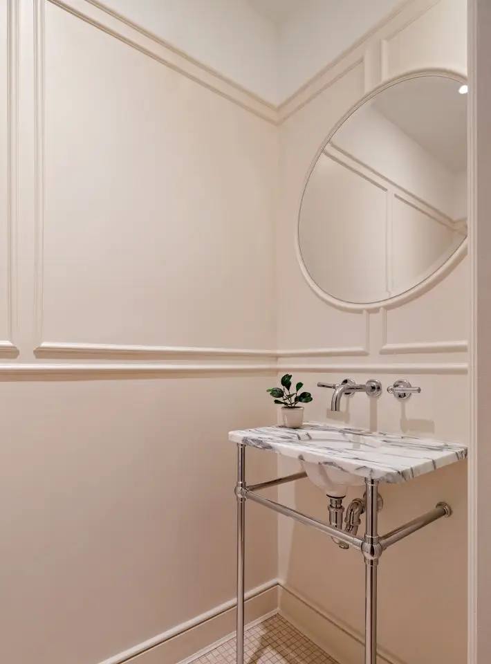 Novelda Cream limestone and Bianco Dolomite marble in en-suite bath