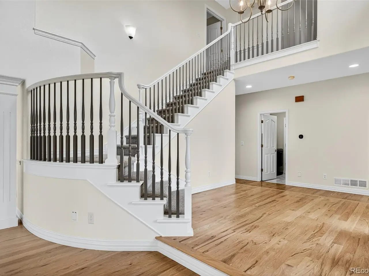 Vaulted entryway with curved stairway
