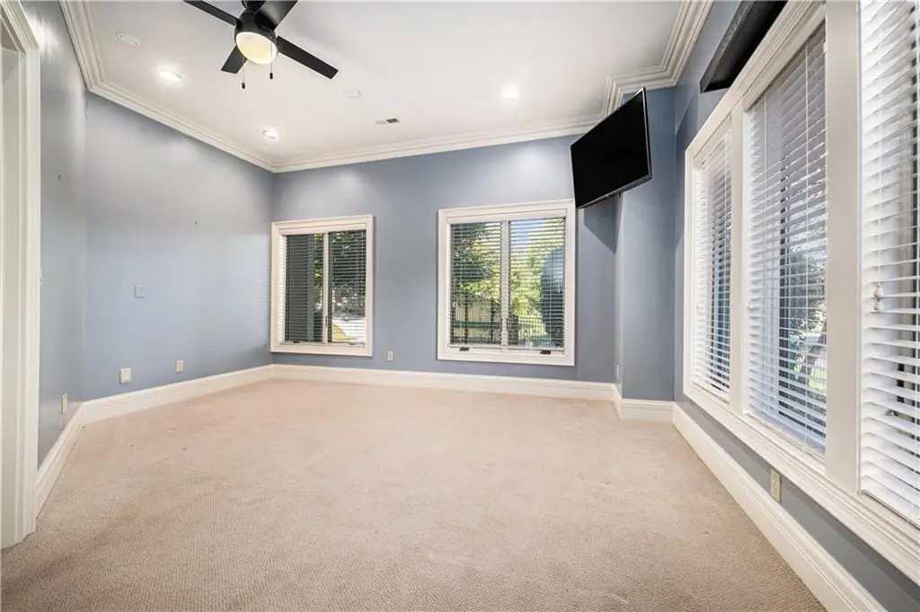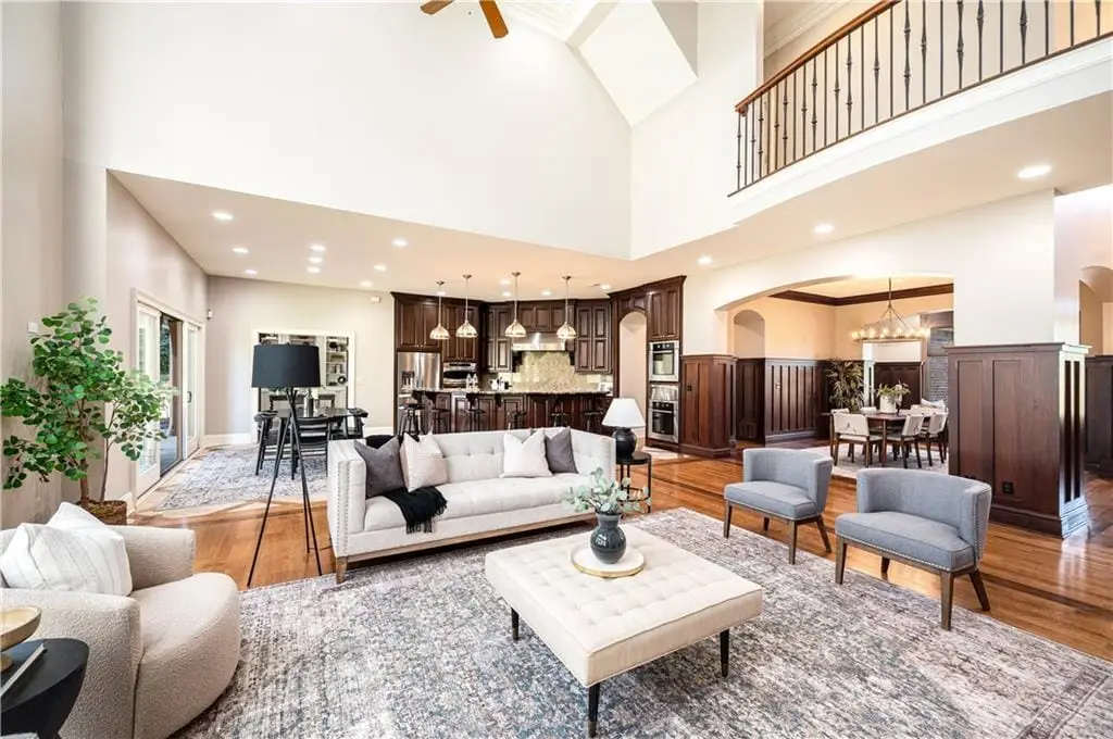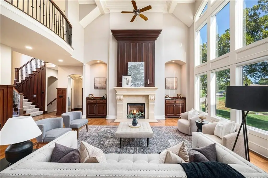 $100,000 price reduction!!!! Stunning Custom 1.5-Story Estate at The National Nearly 7,000 sq ft of Luxe Living! This extraordinary home features a 4-car garage and breathtaking floor-to-ceiling windows that showcase the best views of the golf course and water. As you step through the soaring entry, you'll be greeted by an open floor plan, designer chandeliers, exquisitely detailed trim, beautiful hardwoods, and crown molding. The gourmet kitchen is a chefs dream, featuring exotic granite counters, soft-close cabinets and drawers, two new Bosch dishwashers, a Therador 6-burner gas range with griddle, Viking hood, Bosch double oven and warming drawer, a new refrigerator, beverage refrigerator, and a walk-in pantry. Slide open the glass doors to your outdoor oasis a covered porch with a gas fireplace, expansive patio, and space to grill and relax. The main floor primary suite is a true retreat, complete with its own fireplace, frame TV, heated tile floors, a jetted tub, walk-in shower with glass surround, and walk-in closet. On the mail level there is also a study with a full bath, along with laundry area. Upstairs, you'll find three large bedrooms with walk-in closets, a bonus/gaming room, and second laundry. Walkout lower level is an entertainers paradise an open recreation space, wet bar/second kitchen, wine cellar, fifth bedroom suite, second office or workout room with breathtaking green views, and unfinished storage space. Additional storage, or golf cart garage beneath the covered patio. A new 5-foot black aluminum fence with two gates provides privacy and security. All of this is nestled in the heart of KCs premier country club, The National, featuring an exclusive 18-hole golf course, driving range, clubhouse, swimming pool, gym, tennis and pickleball courts, and a vibrant social scene. Plus, enjoy access to the second 18-hole course. Live the luxury lifestyle you deserve this exceptional estate and community await!