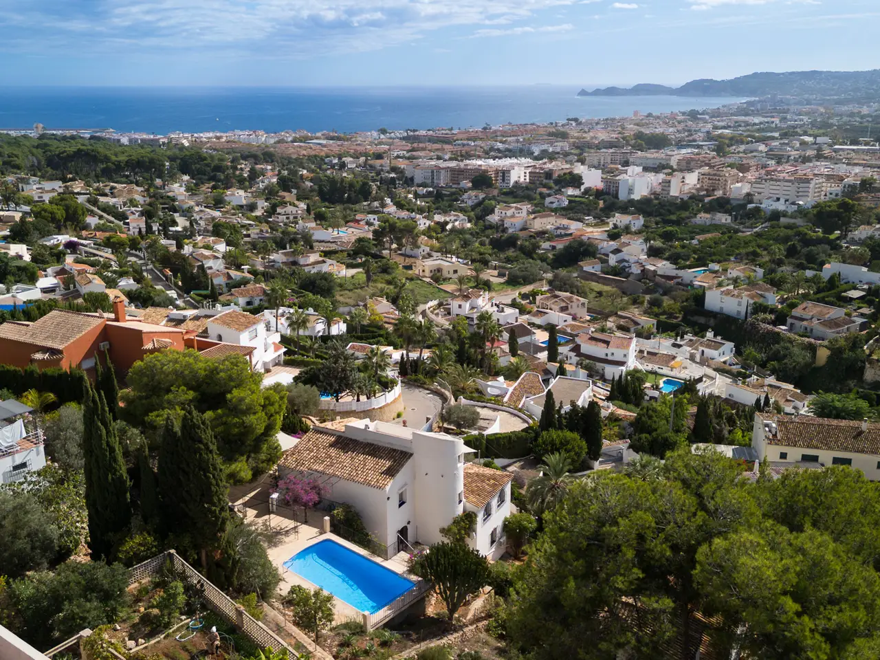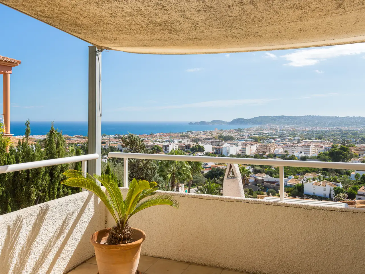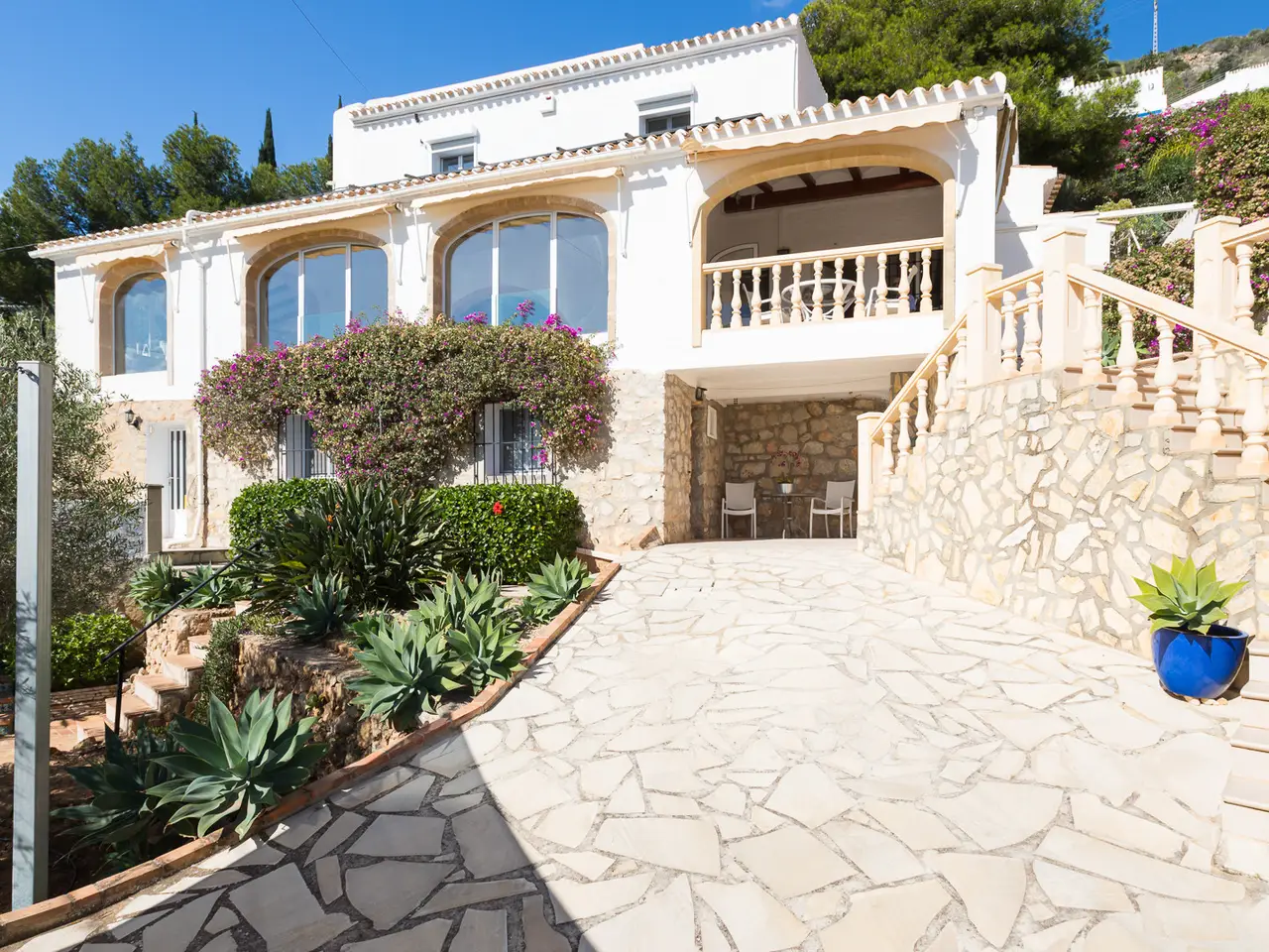 Villa located in the Puchol area with stunning views of Jávea Bay and the town. The main house comprises a south-facing glazed naya with fantastic sea views, a spacious lounge with air conditioning and a fireplace, a dining room and a large room ideal for use as an office or bedroom, a fitted kitchen with access to an open terrace, 1 bathroom with shower and a storage room with a small wine cellar. The first floor is used as a relaxation area, with 3 double bedrooms with fitted wardrobes, 1 full bathroom and a laundry room. This floor leads to the 8x4 swimming pool as well as to the roof terrace. In the basement there is a guest apartment, comprising a lounge with kitchenette and a bedroom that leads to a naya with sea views. It has a closed garage. The property has marble floors, motorised shutters, solar panels with batteries and awnings. An ideal property for living in a quiet environment close to the centre of Jávea.