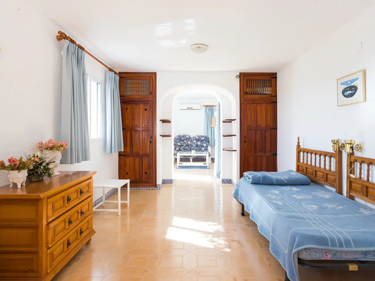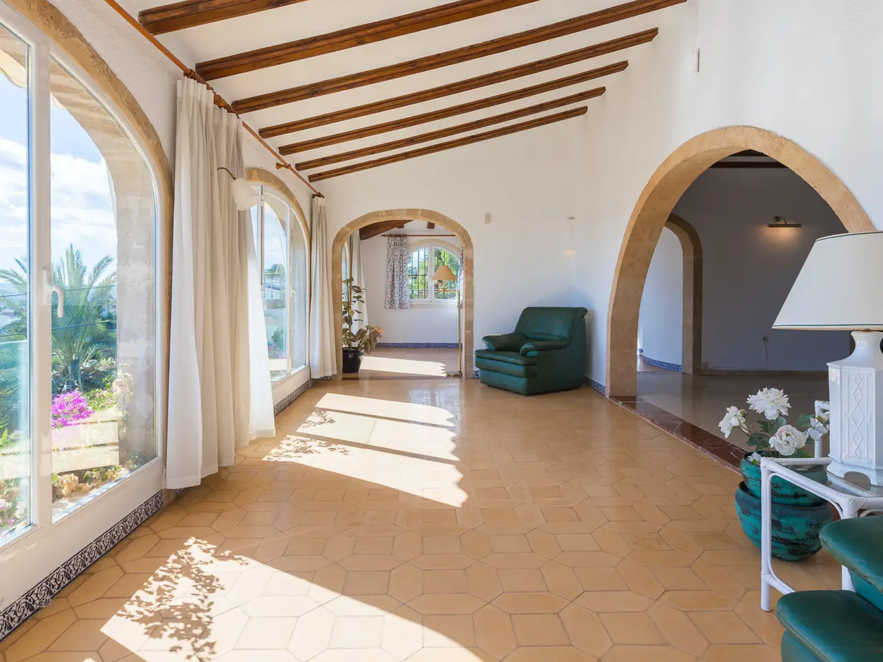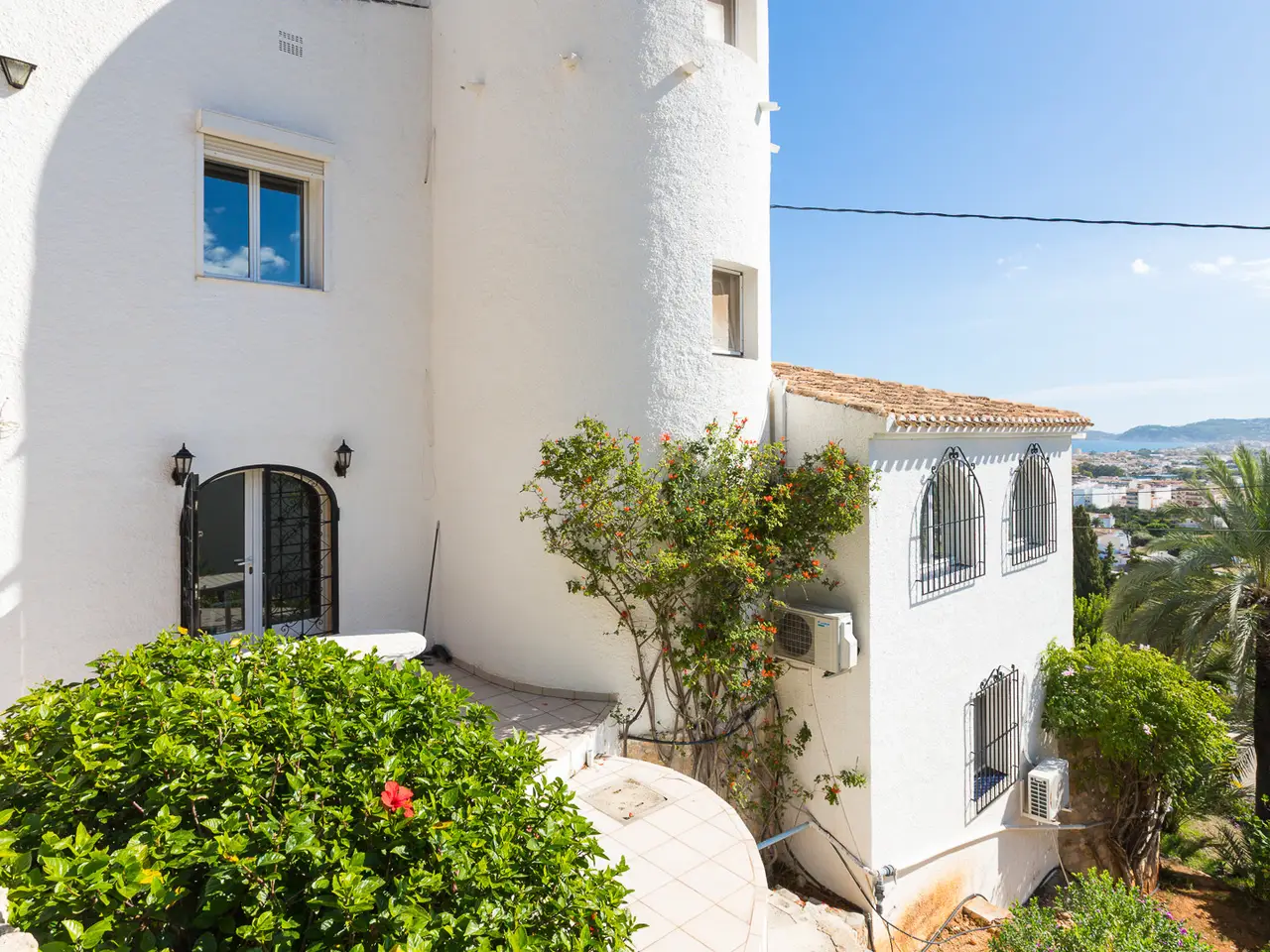 Villa located in the Puchol area with stunning views of Jávea Bay and the town. The main house comprises a south-facing glazed naya with fantastic sea views, a spacious lounge with air conditioning and a fireplace, a dining room and a large room ideal for use as an office or bedroom, a fitted kitchen with access to an open terrace, 1 bathroom with shower and a storage room with a small wine cellar. The first floor is used as a relaxation area, with 3 double bedrooms with fitted wardrobes, 1 full bathroom and a laundry room. This floor leads to the 8x4 swimming pool as well as to the roof terrace. In the basement there is a guest apartment, comprising a lounge with kitchenette and a bedroom that leads to a naya with sea views. It has a closed garage. The property has marble floors, motorised shutters, solar panels with batteries and awnings. An ideal property for living in a quiet environment close to the centre of Jávea.