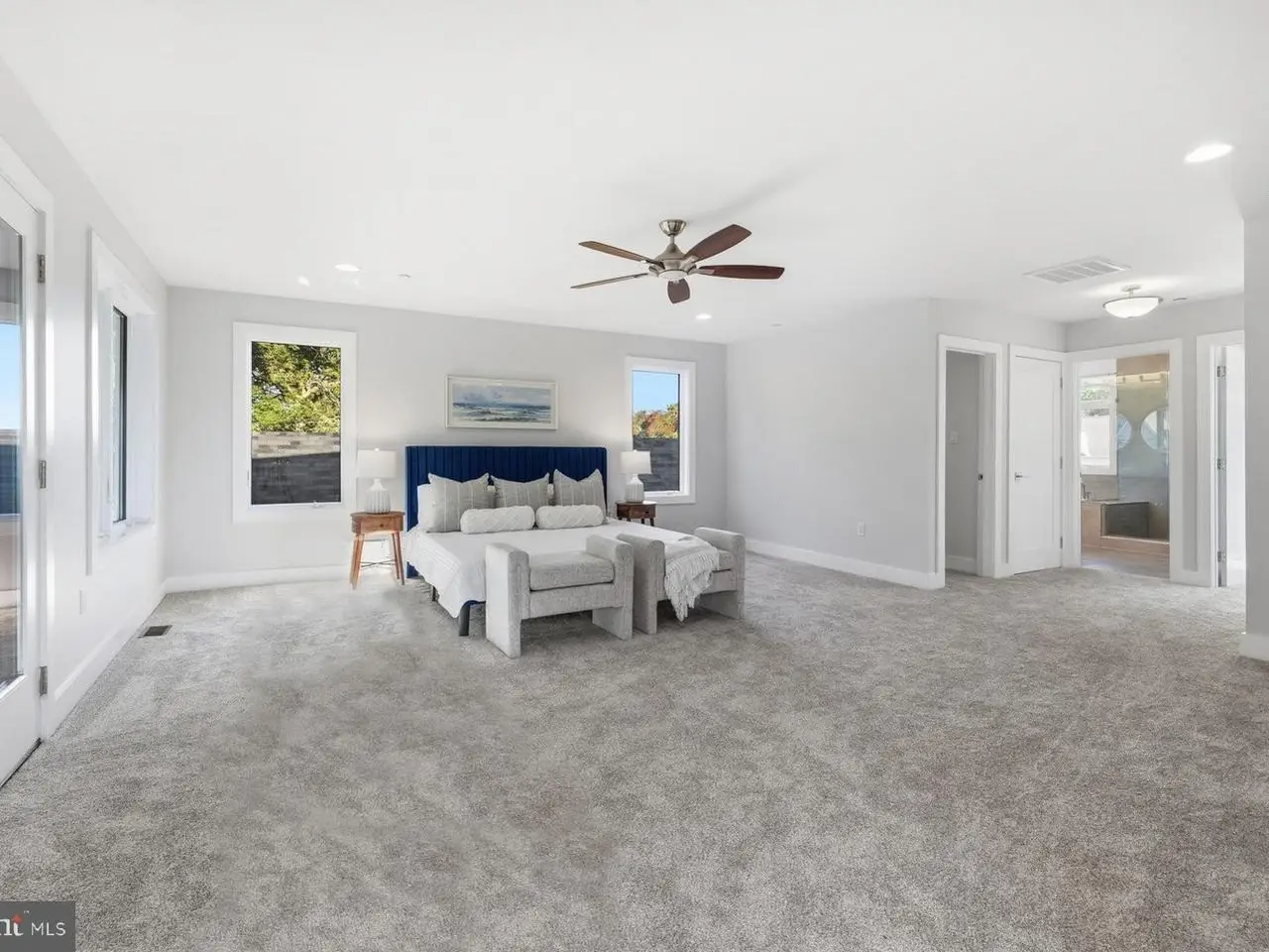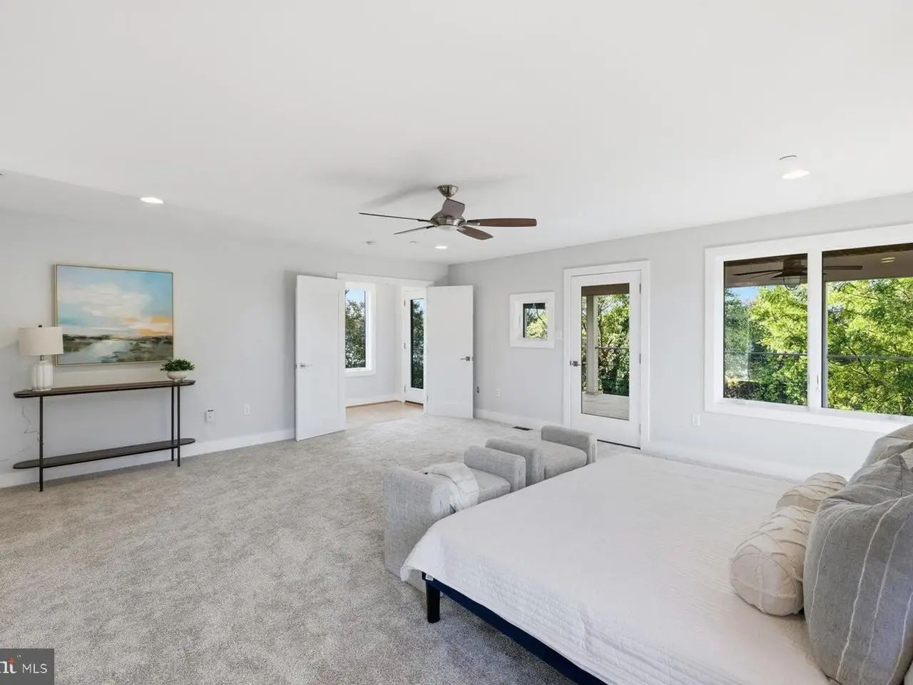 Experience waterfront living at its finest in this exquisite, almost new home in the convenient Bar Harbor community. Designed for comfort, style, and effortless entertaining, this residence showcases Rock Creek water views and thoughtful craftsmanship throughout. The private pier offers two boat lifts and quick access to the Chesapeake Bay. Inside, a light-filled open layout welcomes you with wood flooring and a two-story great room that is flooded with light. Enjoy sitting by the gas fireplace in colder months or gather with friends on the spacious Trex deck with built-in grill against the scenic backdrop. The gourmet kitchen serves as the heart of the home - complete with a generous island perfect for casual dining or hosting gatherings. There's so much flexibility in the use of space! There is a main level office that could serve as a formal dining room or bedroom, with a full bathroom around the corner. On the second floor, there are two ample bedrooms that share a hall bath, and a third bedroom that has an ensuite bathroom. The top-level primary suite is a true retreat, featuring a spa-inspired bathroom, wet bar, two walk-in closets and laundry. The bedroom is large enough to have a sitting area. It opens onto the covered porch to take in panoramic water views or unwind with an evening movie under the stars. The lower-level rec room is another alternative entertaining area. An oversized shed next to the parking area provides a lot of storage for boat gear and outdoor toys. With its blend of sophistication, comfort, and coastal charm, this contemporary waterfront residence offers the perfect escape for those who love life on the water and want to enjoy a crisp, modern aesthetic.