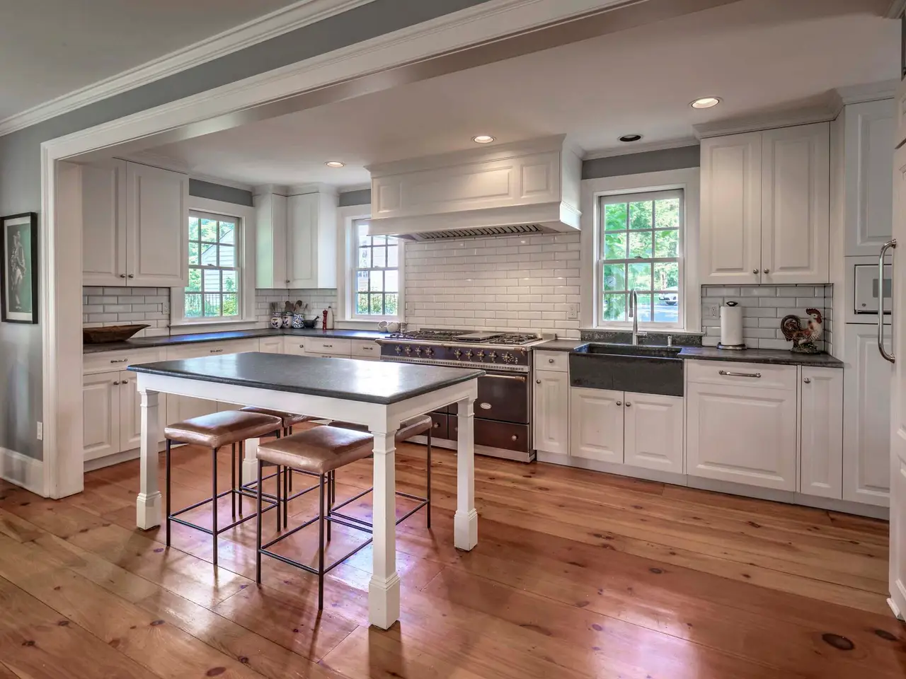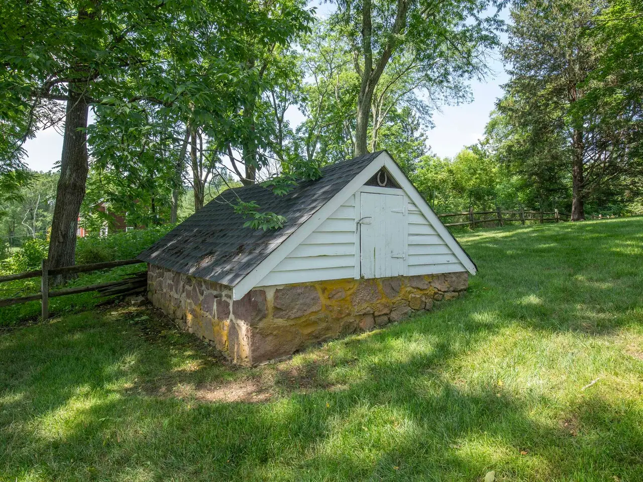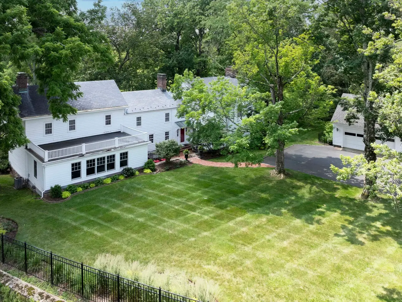 Historic Aaron Van Doren House in Peapack-Gladstone The circa 1812 Aaron Van Doren House is one of Peapack-Gladstone's most notable historic homes, thoughtfully updated to combine early 19th-century charm with modern comfort. With 3,836 square feet of living space, four bedrooms, three full baths, and a powder room on nearly one acre, this property offers timeless architecture, light-filled interiors, and a prime location near village shops, dining, schools, and Midtown Direct trains. Historic details abound, from pumpkin pine floors to four wood-burning fireplaces, three dating to the 1800s. A covered porch entry opens to the center hall, flanked by the formal living room and dining room. The living room features arched bookcases and a Federal mantel, while the dining room retains its own fireplace and a delightful alcove called the "Milliner's Nook" with original glass windows. The home's open kitchen and family room, part of a 1995 addition, create an inviting gathering space. Renovated in 2019, the gourmet kitchen showcases a Lacanche dual-fuel range, Sub-Zero, Wolf, and Miele appliances, soapstone counters, and a large pantry. Anchored by a fireplace, the family room includes custom shelving and a built-in window seat. Upstairs, the primary suite is a serene retreat with tray ceiling, dual walk-in closets, and a spa bath featuring a marble vanity, zero-entry shower, and textured tile finishes. Three additional bedrooms, two more full baths, and a laundry room complete the second story, offering both historic and newer spaces seamlessly connected. The landscaped grounds are equally captivating. Stone walls, brick walkways, brick patio, and specimen trees create a classic country setting. A driveway leads to a detached two-car garage, while a two-stall barn and stone root cellar recall the property's early history. Located in the scenic Somerset Hills, Peapack-Gladstone is known for estate properties, winding country roads, and small-town charm, all within easy reach of major highways and direct trains to New York City.
