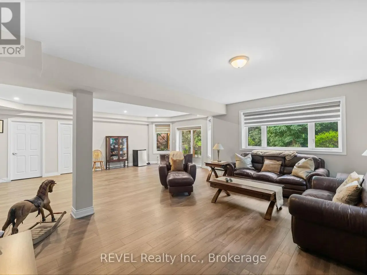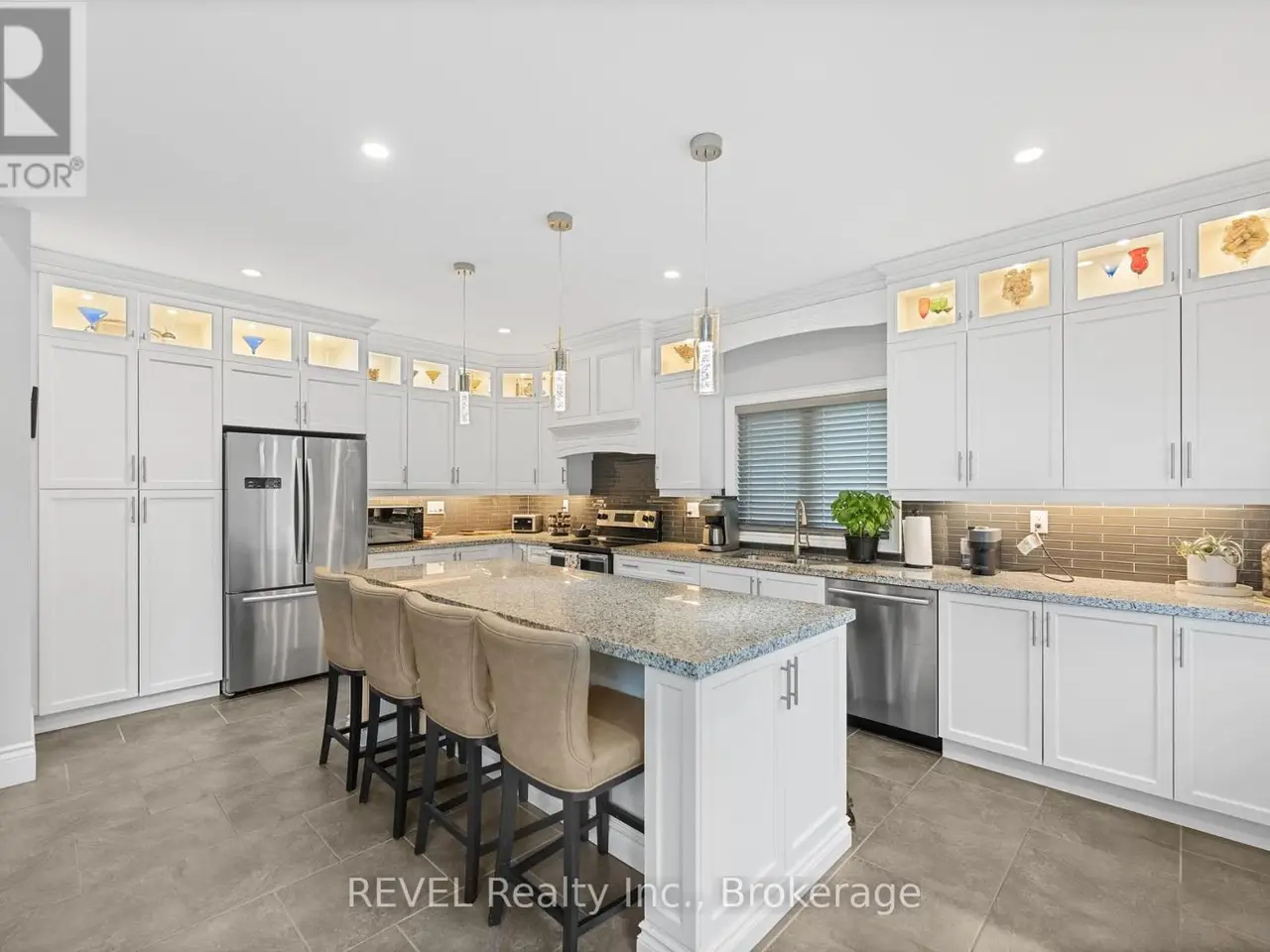 Views for days! Positioned on the edge of the Niagara Escarpment atop the "Fonthill Kame" is this master crafted showpiece. The main front entry is has wonderful armour stone steps that lead you into the grand entry. The back of the main level is perfect for entertaining with a walkout deck that contains a full drainage system and the best views in Fonthill. Natural gas line for your grilling hookup is located here. Overlooking stunning cultured forest with receding escarpment shelves providing incredible colours and seasonal changes. The exterior of this beautiful home is a stunning stone and stucco combination. Inside we find wonderful Black Walnut Hardwood floors throughout the main with porcelain tile in the kitchen and baths. Matching granite countertops throughout the main floor and loft baths as well as the kitchen counters and massive oversized island that is perfect for hosting dinner parties. The oak staircases lead to the loft and basement and are finished in a darker warm stain with matching handrails, newel posts, trims, steps and risers. The loft contains a large bedroom, four piece bathroom and loft overlooking the front entry and back vaulted great room. The views out of the 22 foot height ceilings and floor to ceiling windows facing the rear of the property will take your breath away. In the basement you will find a massive family room perfect for those large gatherings and super bowl parties. Including another two large bedrooms and three piece bath with walk in shower that is perfect for older/adult children or long term visitors. The basement rear is above grade with the front to rear grading slope allowing for a basement walkout to the patio with entertaining spaces. Enjoy a bonfire in the spring and fall months with your favourite people while watching the sunset over and behind the trees. This property exemplifies a lifestyle of peace, with privacy, gathering, and time well spent with loved ones. (id:7434)