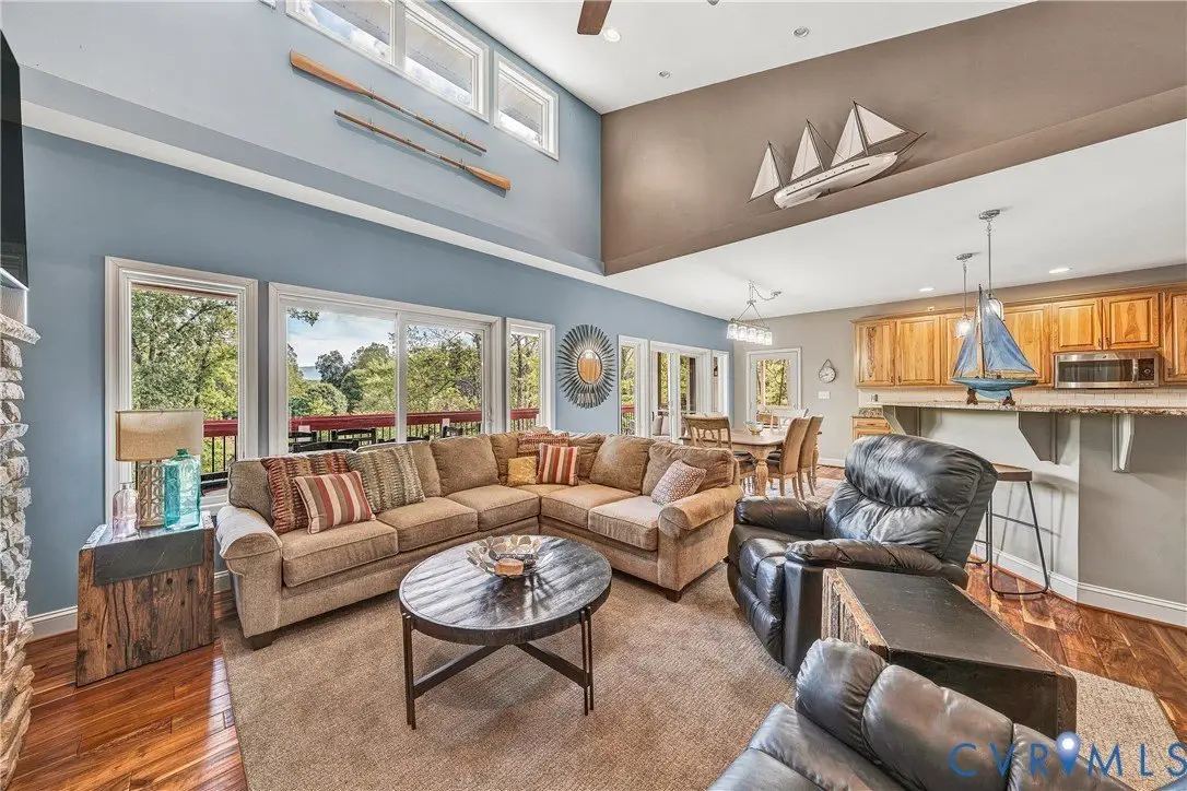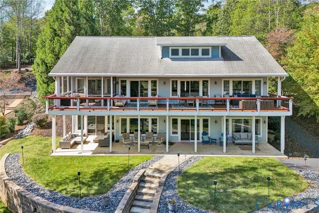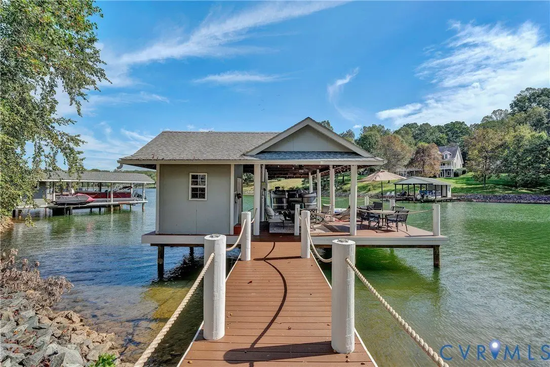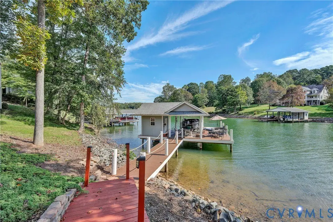 : An exquisite waterfront retreat on Smith Mountain Lake awaits at 1040 Jeffferson Dock Rd-a blend of modern comfort, natural beauty, and lake life luxury. Decorated as a 5 bedroom, 3 bathroom home, with 3265 sqft of living space. Built in 2009 sitting on .75 acres of beautifully landscaped land, with mature plantings, wroght iron fencing and a pristine new backyard firepit and patio! Stunning lake and mountain views, tucked just inside a cove off the main Blackwater River channel. Spacious open-plan living with large windows that capture the lake view and fill rooms with natural light. Gourmet kitchen outfitted with granite countertops, high-end stainless steel appliances and thoughtful finishes.Comfortable main-level living with screened porch and full-length decks to enjoy the outdoors from multiple vantage points. Lower level designed for guests and gatherings: roomy areas, high ceilings,great funtionality and flow. Professionally landscaped lot with a paved pathway down to a custom boathouse. Deep water slip+lift+enclosed storage make lake access effortless. Multiple outdoor living spaces:screened porch, decks with newly installed Trex style decking spanning the house,perfect for morning coffee or evening sunsets. Oversized 2-car garage;driveway and lot designed to accomodate convenience and aestectics. Fantastic propane gas firepit and stunning outdoor patio for cozy evenings taking in the fresh lake air and quiet scendery. Heat pump system, well and septic utilities. Modern touches:stainless appliances, EV charging capability in garage, updated systems. If you are craving lakefront serenity without sacraficing comfort or stylye, this home offers the best of both. No ST rental for zoning RC-1 in Franklin County at this time. Rental over 30 days is allowed. Come enjoy this beautiful home at Smith Mountain Lake today!