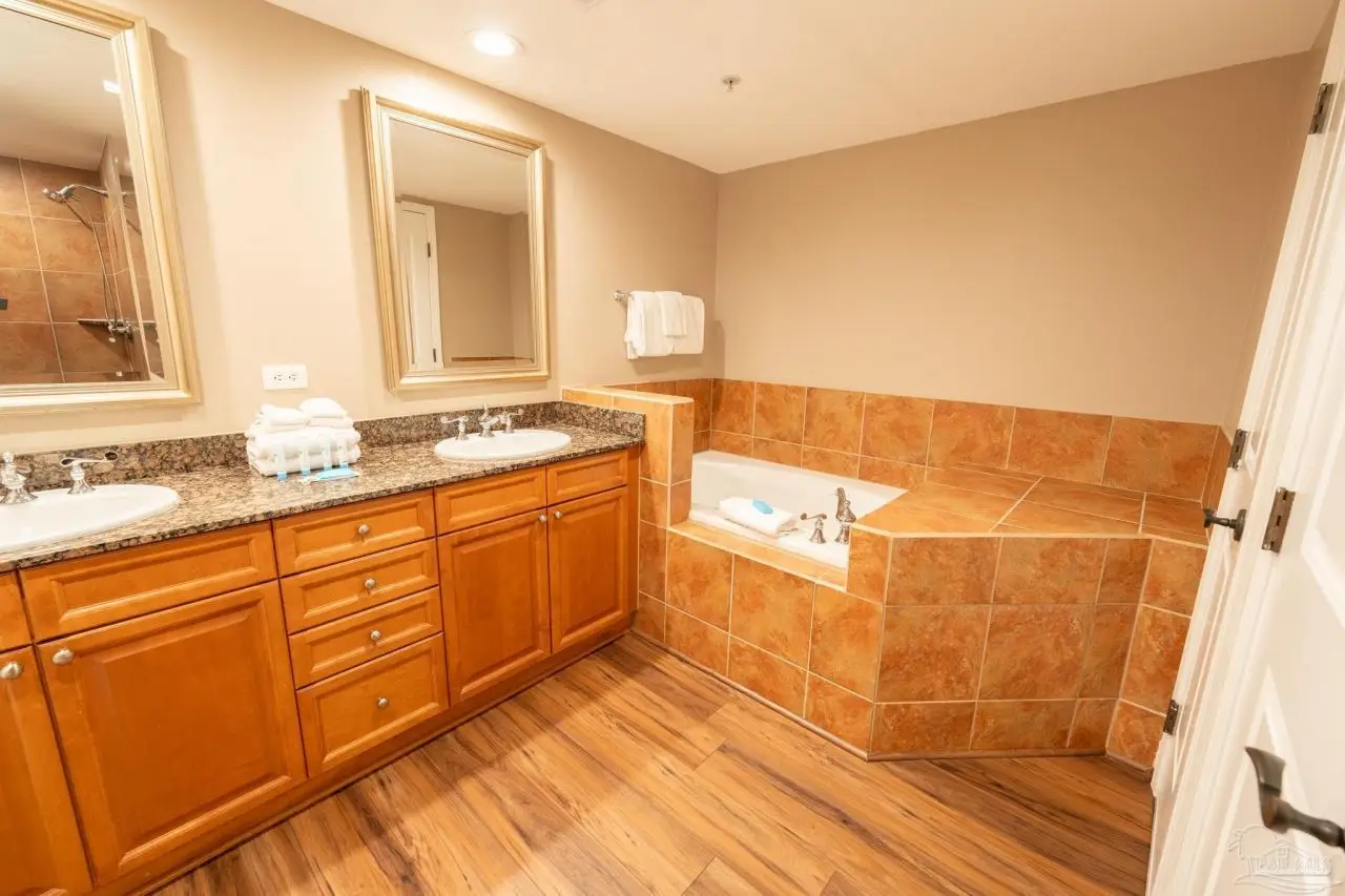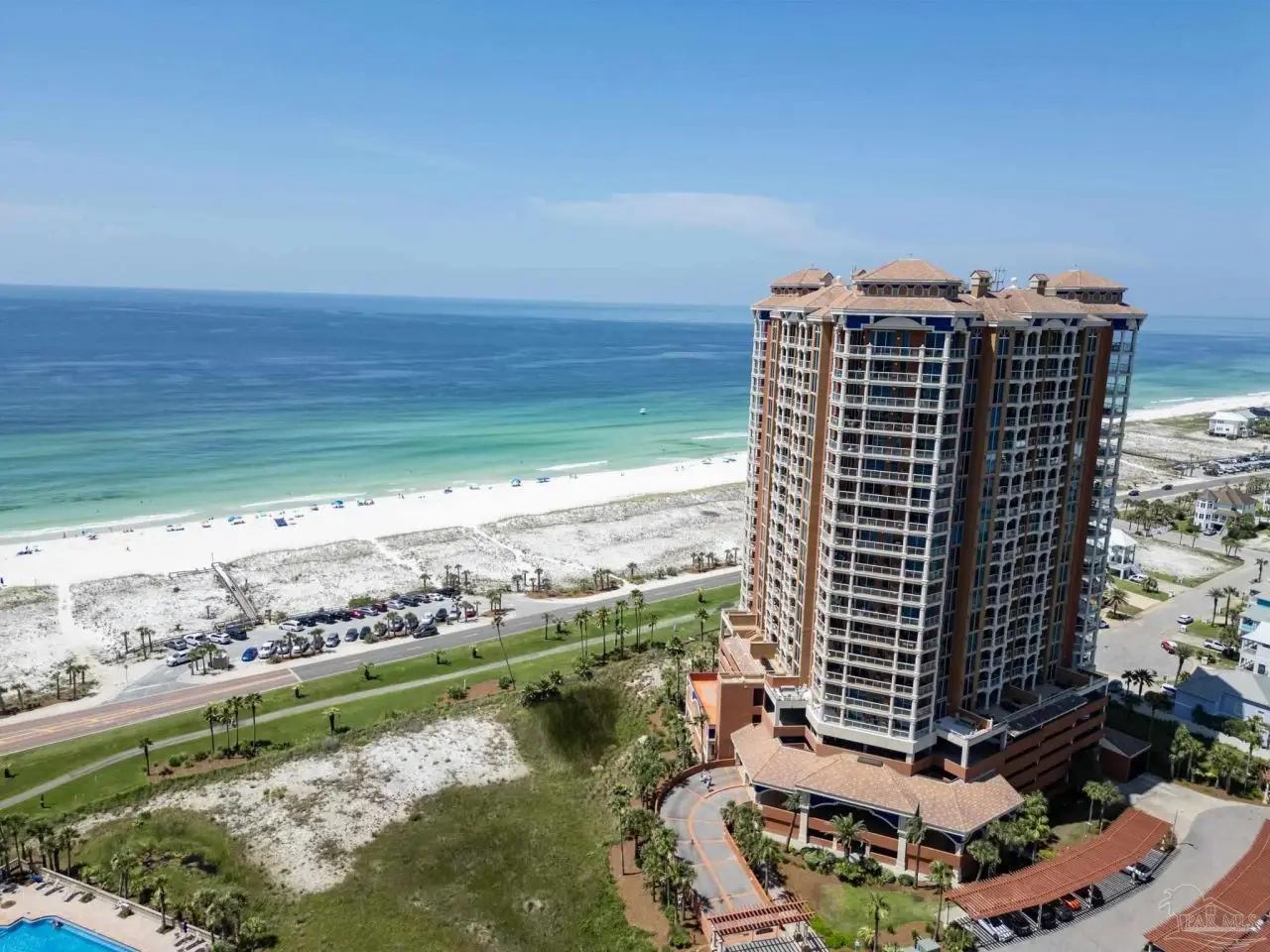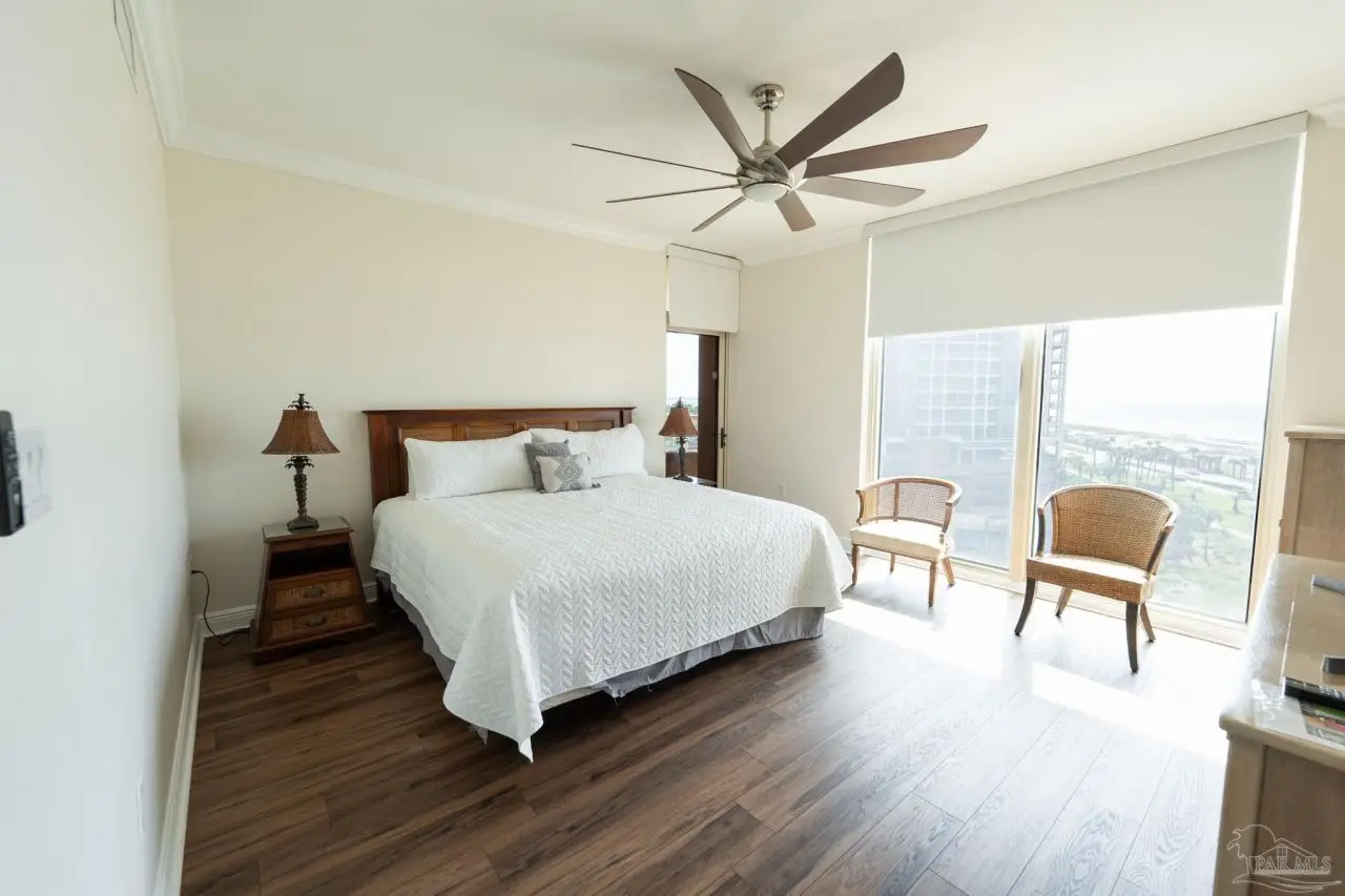 Indulge in Breathtaking Gulf-Front Resort Living at Portofino Experience the pinnacle of coastal sophistication in this fully furnished and meticulously updated 3-bedroom corner residence in Portofino, Pensacola Beach. Revel in sweeping, unobstructed views of the Gulf of Mexico, the Intercoastal Waterway, and the vibrant Lifestyle Center-all from your expansive, 474 sq ft, 3-sided balcony that soaks in glorious sunsets and refreshing breezes. This spacious home features contemporary colors and beautiful new luxury vinyl plank flooring throughout. The kitchen boasts new stainless appliances ready for your gourmet touch. Entertain in style with a custom wet bar in the dining area, featuring a sink, a wine cooler, and an ice machine-ideal for gathering friends and family. The open floor plan flows seamlessly outdoors, perfect for morning coffee or evening cocktails under Florida's colorful skies, and Portofino's wrap around Gulf Views. Unmatched Resort Amenities: Eight sparkling pools and eight hot tubs Pristine clay tennis courts and fully equipped fitness center Full-service European-style spa Indoor/outdoor restaurants and bars Private Gulf and Sound side beach access Enjoy the convenience of two private storage cages and a deeded parking spot just steps from the lobby-exceedingly rare and perfect for year-round or seasonal living. Imagine customizing this beautiful space and living at the center of it all, with every amenity at your fingertips. Make Portofino your resort residence and embrace the high-end lifestyle you deserve. Schedule your private showing today!