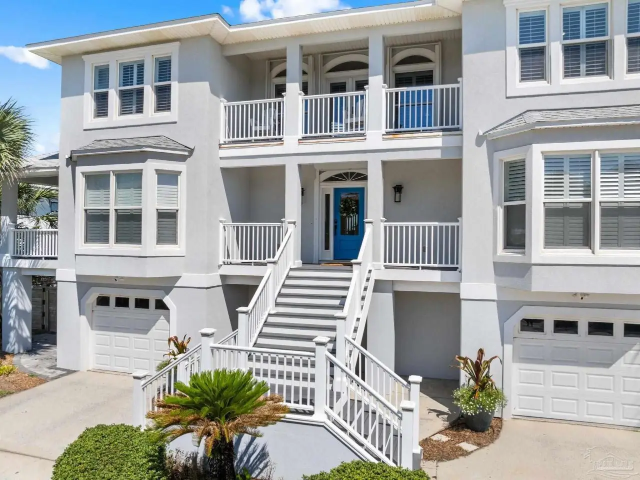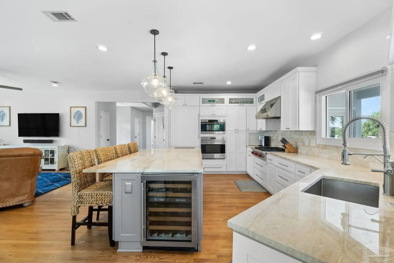 Experience the pinnacle of coastal living at 25 Calle Hermosa, a stunning stucco residence perfectly situated on Pensacola Beach. Inside, rich hardwood floors flow throughout the meticulously renovated interiors, creating a warm and sophisticated ambiance. The gourmet kitchen is a culinary masterpiece, featuring top-of-the-line Sub-Zero and Wolf appliances, custom-crafted cabinetry, and expansive countertops designed for both everyday meals and entertaining. The primary bedroom is a serene retreat, complete with a private balcony offering Gulf views, ideal for savoring morning sunrises or tranquil sunsets over the sparkling waters. The fully updated bathrooms exude spa-inspired elegance with contemporary fixtures and premium materials. A graceful winding staircase leads to an inviting upstairs sitting area with balcony, perfect for relaxation, and three additional well-appointed bedrooms. Outside, the backyard is a private paradise, centered around a shimmering gunite pool and spa, surrounded by pavers that guide you to a charming fire pit area-perfect for hosting gatherings or enjoying tranquil evenings under the stars. This exquisite home boasts an oversized garage, ideal for vehicles, beach gear, or a workshop for seaside hobbies. With exclusive neighborhood Gulf access just steps away and the vibrant Pensacola Beach restaurants just minutes away, this home seamlessly blends modern luxury with coastal serenity, making it a rare gem for discerning buyers.