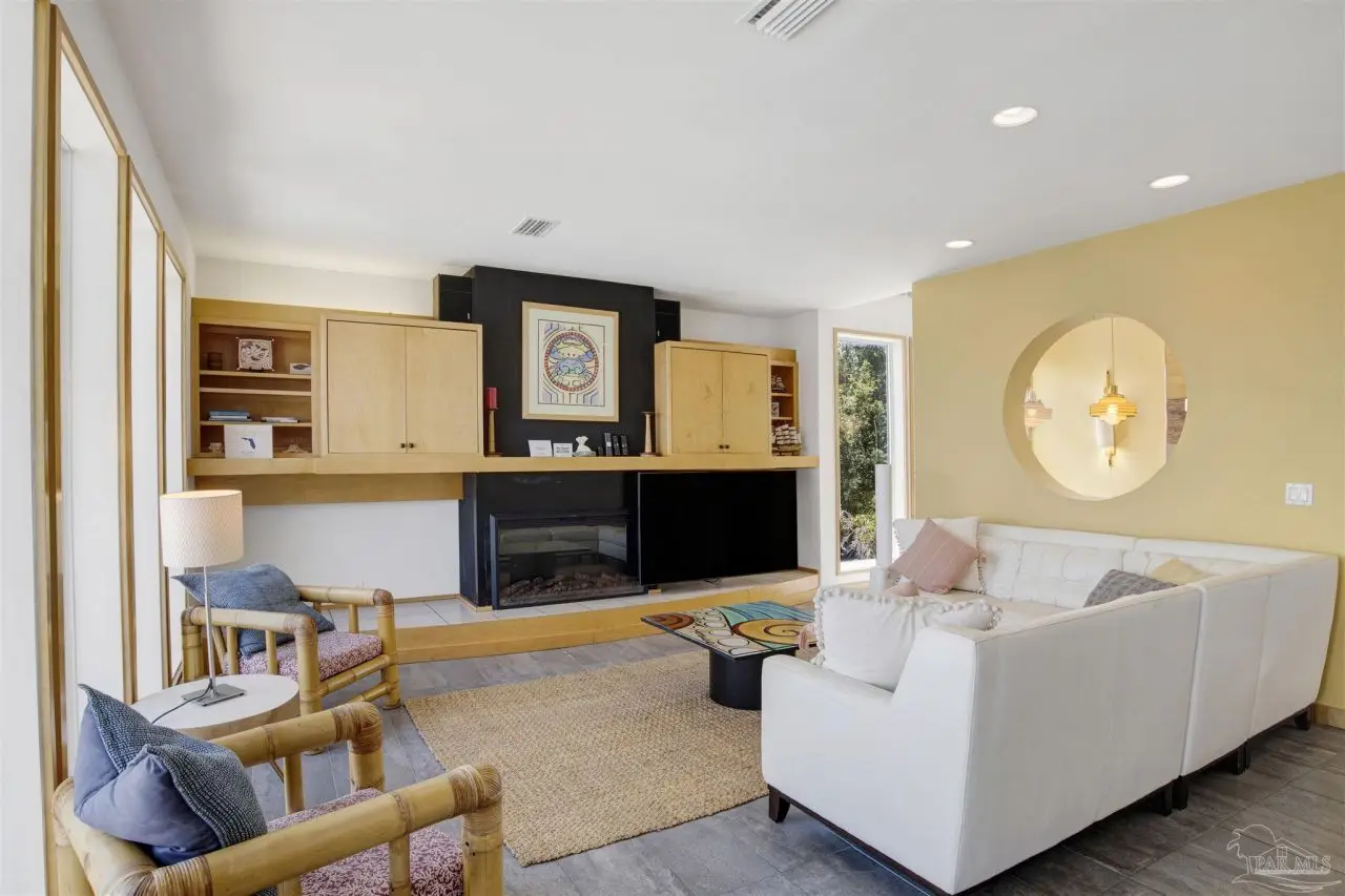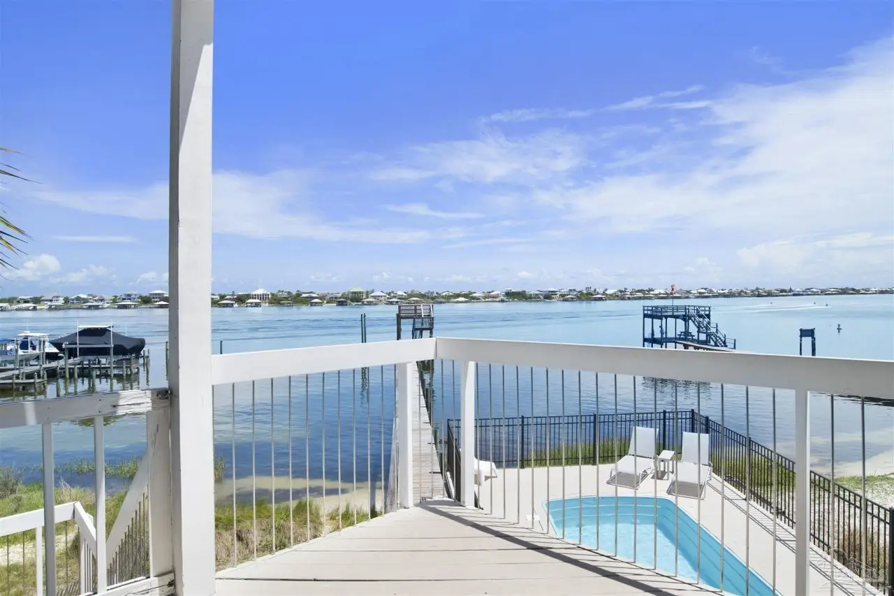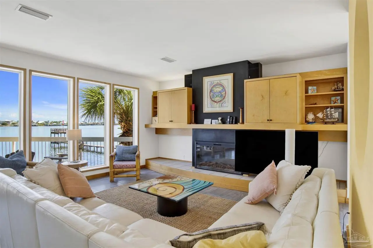 Rare Riverfront Home with Deepwater Pier, Boat Slip & Sundeck - Life on Old River at Its Finest! Welcome to Blue Heron, an extraordinary 5-bedroom, 5-bath riverfront residence designed by award-winning architect Marshall Fischrupp. This stunning architectural gem showcases exceptional craftsmanship-from the custom teak front door with its one-of-a-kind fish design to the dramatic two-story floor-to-ceiling windows in the dining area. The Great Room and Master Bedroom both feature breathtaking water views through expansive windows, opening onto riverfront decks that invite you to soak in the scenery. With water views from all three levels, this home evokes the feel of a luxurious yacht, perfectly designed to embrace its natural surroundings. The private pier leads to a deepwater boat slip with a spacious elevated sundeck and swim ladder, ready for you to launch into the sparkling waters of Old River. Whether accommodating your yacht or simply enjoying a refreshing dip, this property delivers the ultimate waterfront lifestyle. Enjoy the heated and cooled riverfront swimming pool, thoughtfully created for year-round comfort. Launch your kayak or paddleboard and explore the tranquil waters along the Florida State Preserve or around Ono Island. Located in the heart of Perdido Key, Blue Heron offers convenient access to fantastic neighborhood amenities, including community pickleball/tennis courts just across the driveway and deeded access to the sugar-white sands of the Gulf of Mexico across the street. The new multi-use path allows easy walking and biking across the island to explore local dining, and entertainment, shopping, parks, and attractions. Don't miss this rare opportunity to own a one-of-a-kind architectural masterpiece in Perdido Key Coves, one of the most coveted waterfront settings on the Gulf Coast!