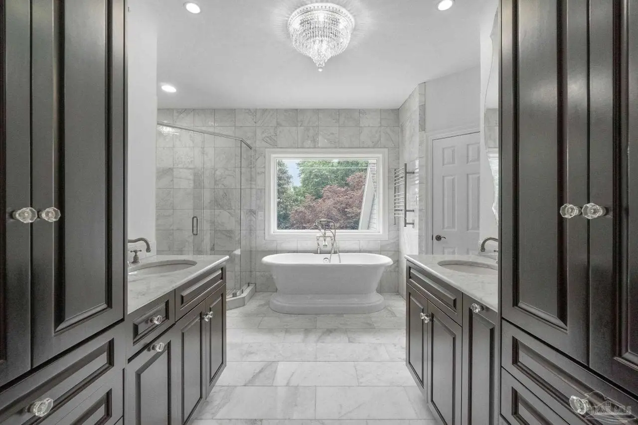 Main-floor primary suite with soaking tub Secondary three-car garage with upper-level living quarters