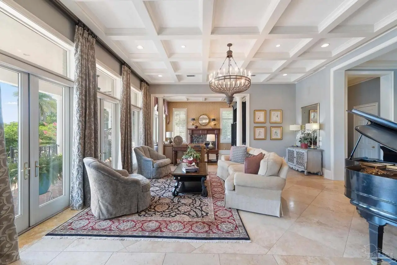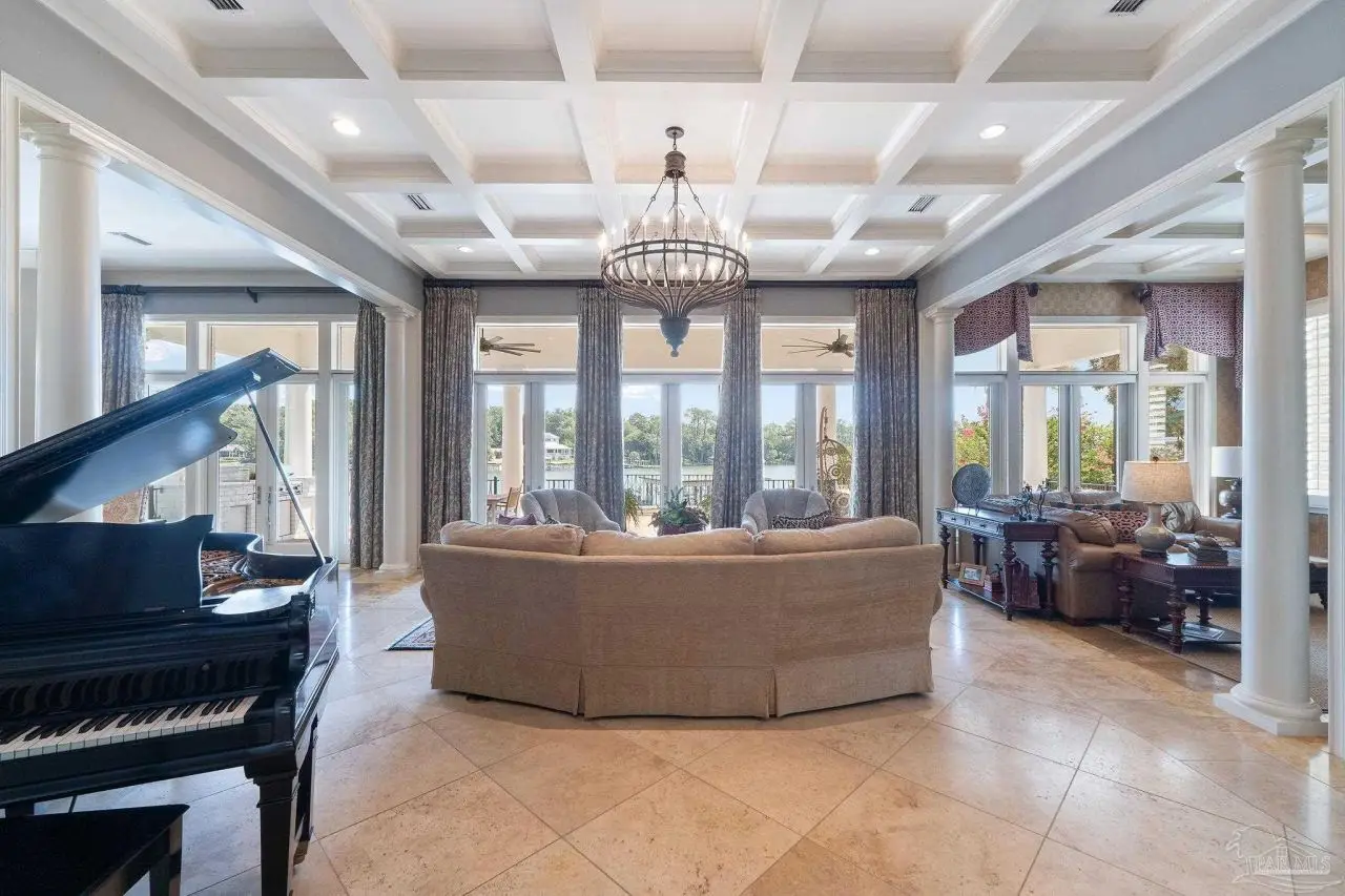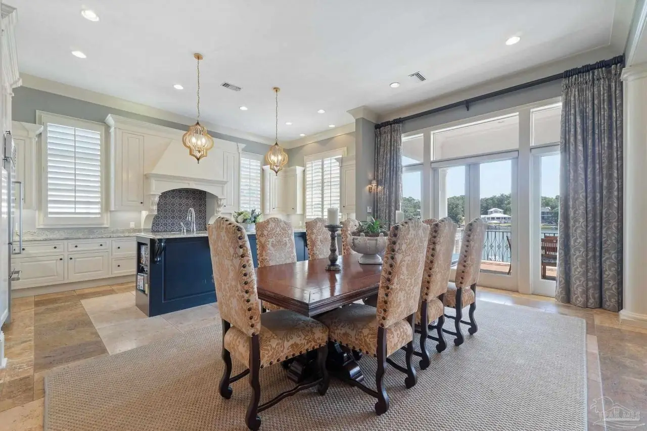 This custom home epitomizes luxury waterfront living. The mahogany arched front door opens to a grand 2 story foyer adorned with crown moldings & 12 foot ceilings. Water views are abundant throughout the downstairs living areas. French doors open onto the large covered lanai that overlooks the perfectly landscaped backyard, custom, pool, dock, & boathouse. The elegant family room features custom built-in cabinetry, a wet bar & a cozy gas fireplace. The spacious dining room includes custom drapes & offers plenty of room for large family gatherings. The gourmet kitchen is a chef's dream, boasting top-of-the-line appliances including a Subzero refrigerator, Thermador gas cooktop with six burners, double oven, a warming drawer, wine refrigerator & a double drawer dishwasher. The kitchen area offers ample space for a large family table, ensuring everyone can gather together & be part of the action. Sitting between the dining room & the kitchen, the butler's pantry is perfect for overflow appliances & hosting gatherings. A custom walk-in wine cellar, includes a wet bar & a 12 foot high wine cabinet. The wine cellar has its own cooling system & thermostat. The owner's suite is a private retreat & spans the length of the waterfront side of the home. This area includes an office/sitting room with a gas fireplace, hardwood flooring, a spacious 16 x 20 bedroom & a large walk-in closet. The luxurious master bathroom features a walk-in shower with three shower heads, soaking tub & dual vanities. The owner's suite also has private terrace overlooking Bayou Texar. There are 3 additional bedrooms upstairs, each with their own fully renovated bathroom. The fifth bedroom is conveniently located on the first floor.A bonus room/game room on the second level is the perfect spot for watching sporting events or hosting family movie night. The laundry room is also conveniently located upstairs. This home is completely Move In Ready! Buyer to verify all measurements and information.