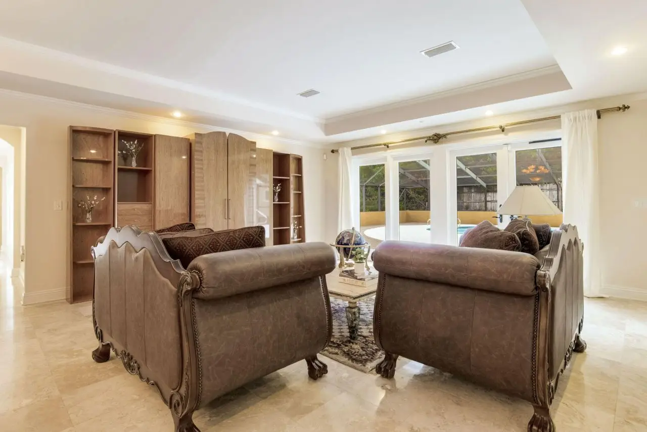This stunning, one-of-a-kind pool home is packed with luxury and space--featuring an in-ground pool, six-car garage, solar panels, whole-home generator, private movie theater, and bonus living quarters. The oversized primary suite includes a massive custom closet with built-ins, fridge, and washer/dryer. The dream kitchen opens to the screened pool area, perfect for entertaining. Imported marble accents and a showstopping iron front door add elegance. With flexible spaces, high-end finishes, and endless perks, this beautifully maintained oasis is ready for its next chapter--will it be yours?
