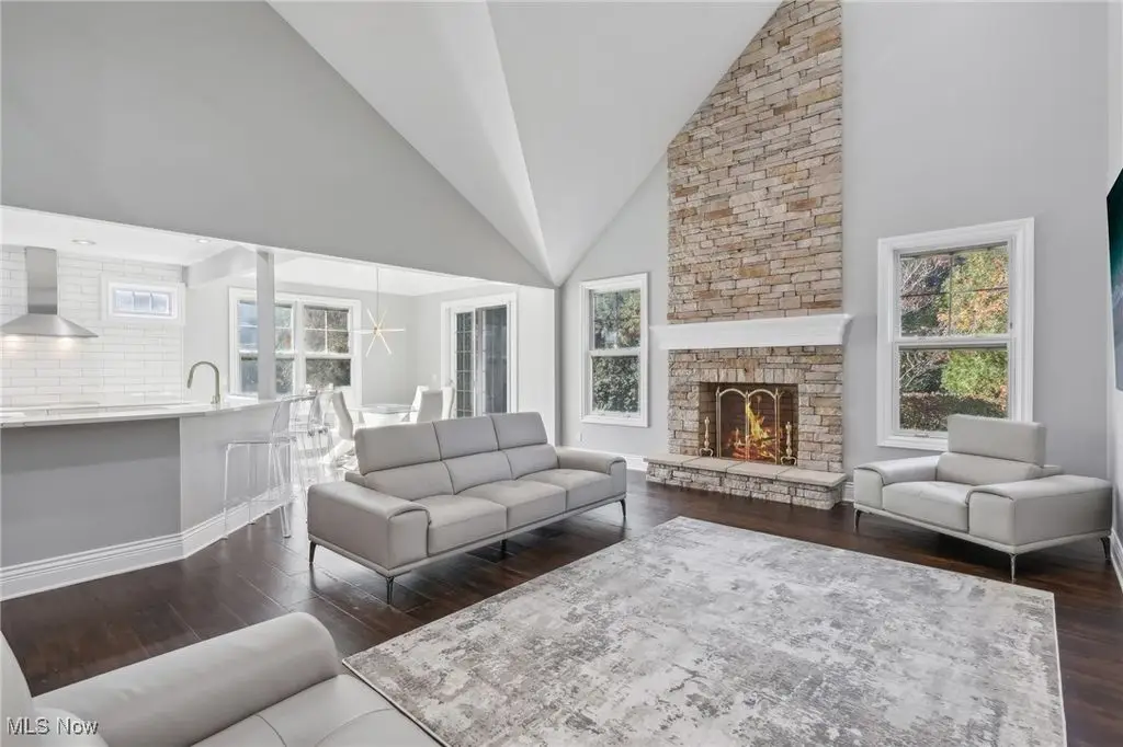 Striking modern colonial home in Sterling Lakes of Pepper Pike. Exceptionally maintained grounds makes this low-maintenance GATED community of prestigious homes stand out like no other in the area. Beautifully set among other fine homes, this property offers tasteful upgrades & updates throughout. The first floor layout keeps ease of living in mind, w/a spacious & vaulted 1st floor owners suite boasting remodeled glamor bath with fully tiled walk-in shower, soaking tub & his/her closets, among other fine details. The renovated modern eat-in kitchen boasts a waterfall quartz top center isle, stunning counter top lighting, exceptional walk-in pantry, plus butler's pantry pass-through to the formal dining room. A floor to ceiling gas fireplace warms the space w/stone veneer. The private first floor den/sitting room is smartly set away from the hustle and bustle, offering it's own private patio to steel away w/your thoughts. The stairs & loft area have been fully transformed with a sleek cable railing system, adding to the dramatic modern appeal. Two addl spacious bedrooms w/2 full baths, plus large loft area provide private quarters for family & guests. The recently finished basement adds tremendous flex space (approx 1500 sqft), including recreation, storage, and bedroom suite, offering a large closet & full bath. This property has been transformed from traditional to stunningly modern, including but not limited to: new solid surface flooring throughout (no carpet), lighting, paint, baseboards, fully remodeled kitchen and baths, two full bath added, basement finished, & so much more! 1st floor laundry room. 3 car garage w/8' doors and built in cabs. Low maintenance living includes lawn care, landscaping, snow removal & general grounds care. Enjoy the meandering walking paths overlooking multiple water views around the community. Excellent location. Close to I-271, fine shopping, and some of the best hospitals and schools in Greater Cleveland! Quick possession if needed.