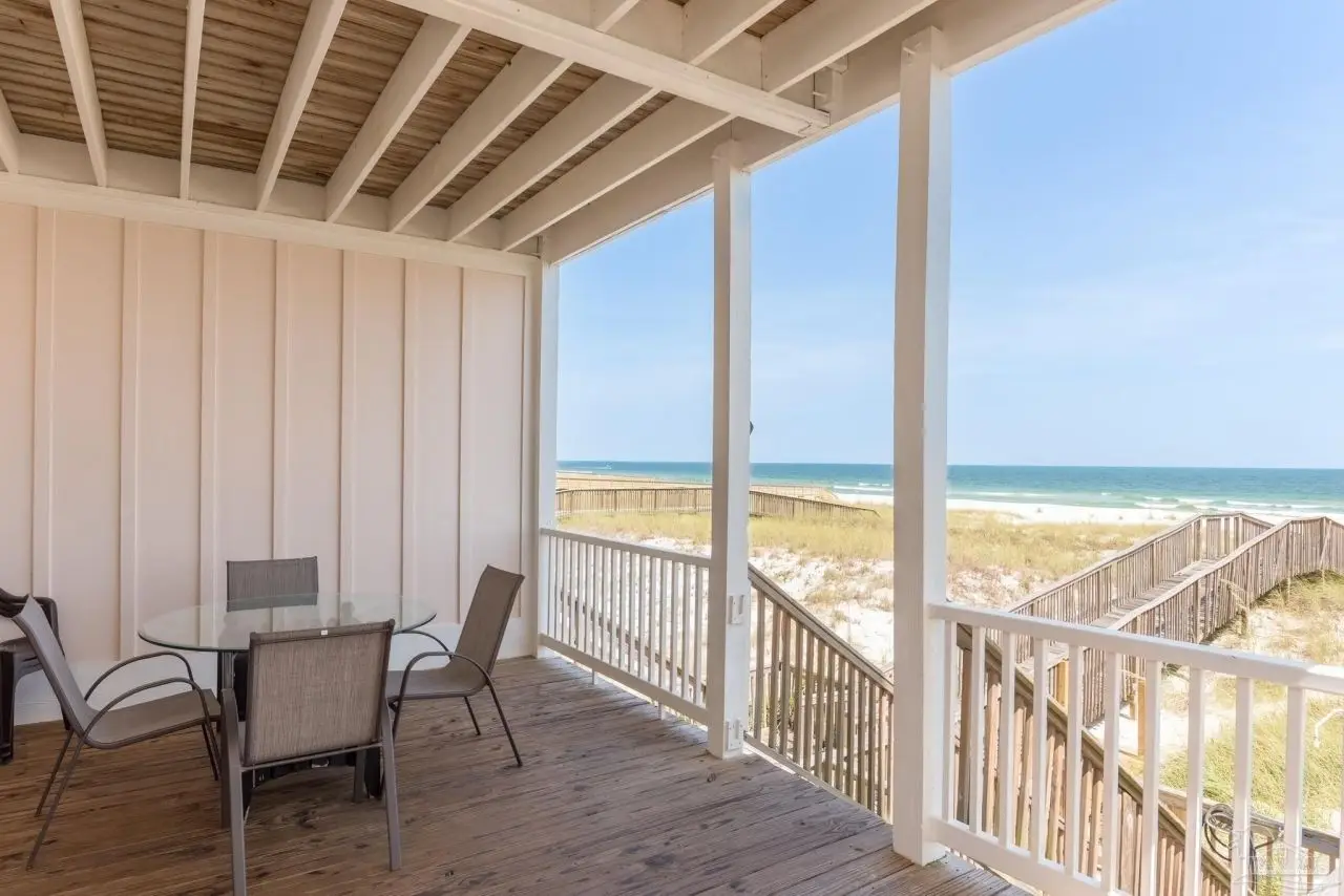 ***OWN THE BEACH***BEST VALUE ON THE BEACH at this Turnkey GULF FRONT 1/2 duplex with 36 feet of PRIVATE BEACH and excellent rental potential! Ideally located in a low density area of Perdido Key within walking distance to multiple restaurants including FloraBama, Waffle House and Crab Trap. This home features two Gulf Facing balconies and has MANY recent updates including Two Hot water heaters, three A/C condensers and air handlers 2023/2024,and updated bathrooms in 2024, kitchen updated 2022. With 2,560 square feet and breathtaking water views from every room, it features 3 spacious bedrooms, plus Hall Bunks making it an excellent vacation rental with beds for 12 guests! Each BR has its own private bath and the primary BR has a private gulf front balcony.On the main living floor, the well designed kitchen is large enough for several cooks and the updated wet bar even has a mini-fridge. An updated powder room and a laundry room with a full-size W/D and extra refrigerator are also on the first floor. The ground level has a storage room and plenty of parking space for multiple vehicles, PLUS a BBQ grill, prep table, picnic table and paved area that offers plenty of space for entertaining and dining. All measurements are approximate. Buyer or Buyers agent to verify all information to buyer's satisfaction. Sellers personal items are excluded. Seller is a licensed realtor in FL and AL and is listing agent.
