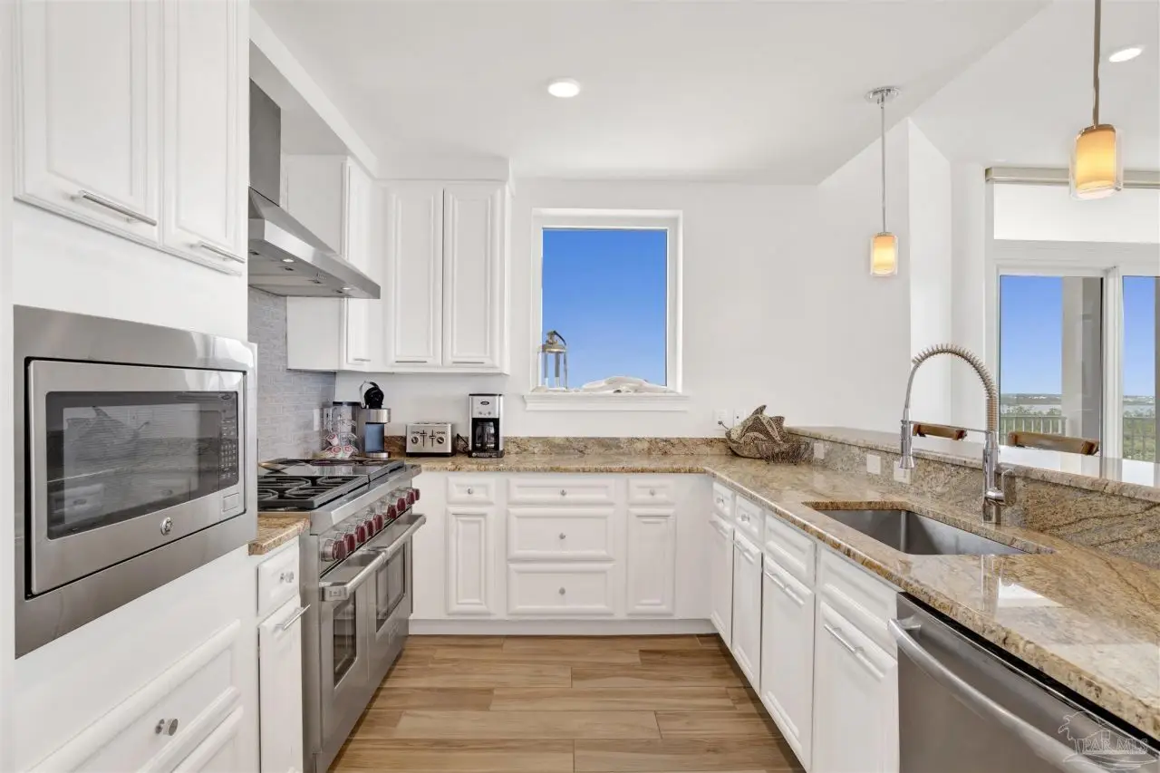 THIS RARE 5-BEDROOM, 6TH FLOOR CORNER RESIDENCE HAS BREATHTAKING, PANORAMIC VIEWS OVERLOOKING MILES OF PROTECTED COASTLINE AND THE GULF! ENJOY EXCEPTIONAL AMENITIES IN A TRANQUIL, LOW-DENSITY BEACHFRONT SETTING FAR AWAY FROM THE CROWDS. Vista del Mar has an irreplaceable location at the east end of the island of Perdido Key and borders over 5 miles of protected Gulf Islands National Seashore offering nature trails, bike paths, and unspoiled beaches for your enjoyment. This luxurious residence has been specially customized to a 5 BEDROOM/4.5 BATHROOM floor plan and comes fully furnished with assigned garage parking. This gem showcases impressive floor-to-ceiling windows, a generous balcony complete with gas grill, and stunning white ship lap accents throughout. The exquisite kitchen boasts granite countertops, high-end cabinetry, a Chef's kitchen featuring a Wolf® range and chimney hood, a Sub-Zero® refrigerator, and a wet bar equipped with ice maker and wine refrigerator. Luxurious guest suites are designed with spa-like bathrooms and ample walk-in closets. At Vista Del Mar, enjoy a secure, gated community entrance, designated garage parking, and climate-controlled owner storage at the amenity level. The grand lobby entrance offers various seating areas, custom artwork, and awe-inspiring views. High-speed elevators lead to climate-controlled lobbies. Indulge in the lavish outdoor pool area with a vast beachfront deck, hot tub, and covered outdoor seating. Experience the heated indoor pool with stunning water views. The owner's health club provides a fully-equipped fitness room, yoga studio, and massage treatment rooms. Residents can unwind in the club room with fireplace, bar, pool tables, and TVs. Surround yourself with lush landscaping, coastal breezes and WELCOME HOME TO LUXURY BEACHFRONT LIVING AT ITS FINEST!
