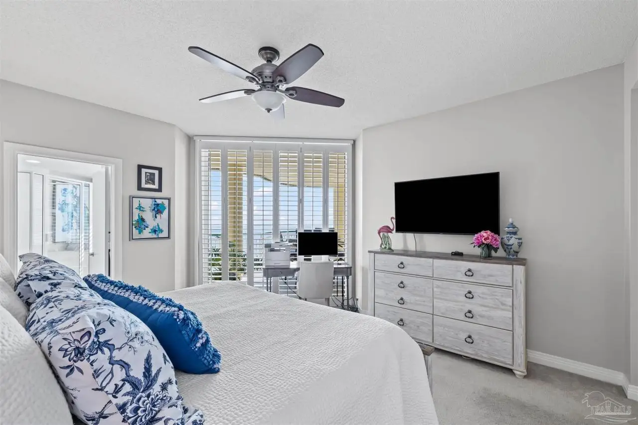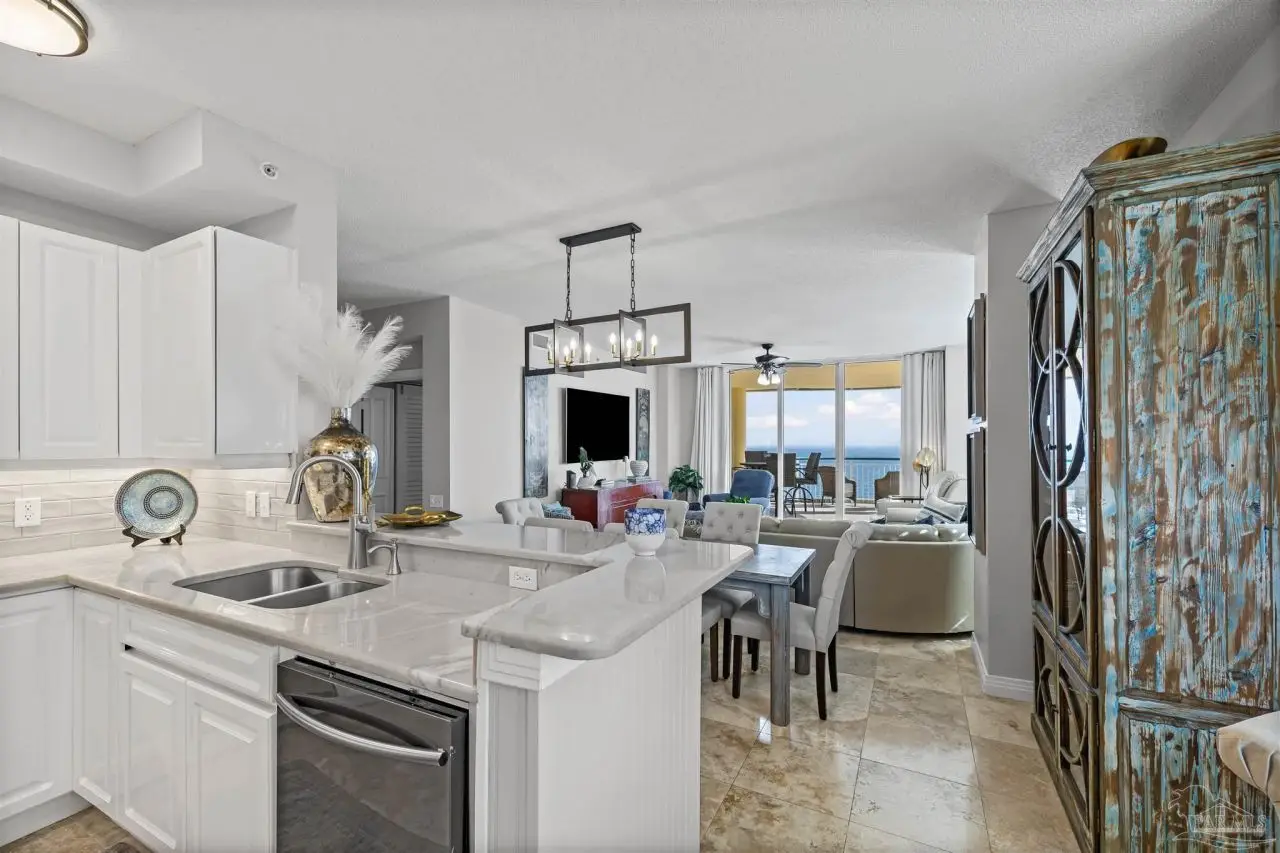 Experience coastal living at its finest in this stunning 3-bedroom, 3-bathroom penthouse perched on the 16th floor of Beach Colony East. With panoramic Gulf views and over 1,900 square feet of elegantly appointed space, this residence offers the perfect blend of luxury and tranquility. Step into a light-filled open-concept living area with floor-to-ceiling glass doors that lead to an expansive beachfront balcony-ideal for morning coffee or sunset cocktails. The gourmet kitchen features quartzite countertops, stainless steel appliances, and a breakfast bar that flows seamlessly into the dining and living spaces. Each bedroom is a private retreat, with the Gulf front primary suite boasting direct balcony access, a spa-like ensuite bath with a jetted tub, separate shower, and dual vanities. The two guest bedrooms are generously sized, each with its own full bath, perfect for hosting family and friends. Beach Colony offers resort-style amenities including gated entry, indoor and outdoor pools, fitness center, tennis and pickle ball courts, and direct beach access. Located minutes from dining, shopping, and the natural beauty of the Gulf Islands National Seashore, this penthouse is your gateway to the ultimate Perdido Key lifestyle. Don't miss this rare opportunity to own one of the largest penthouse units at Beach Colony with unmatched views and amenities.
