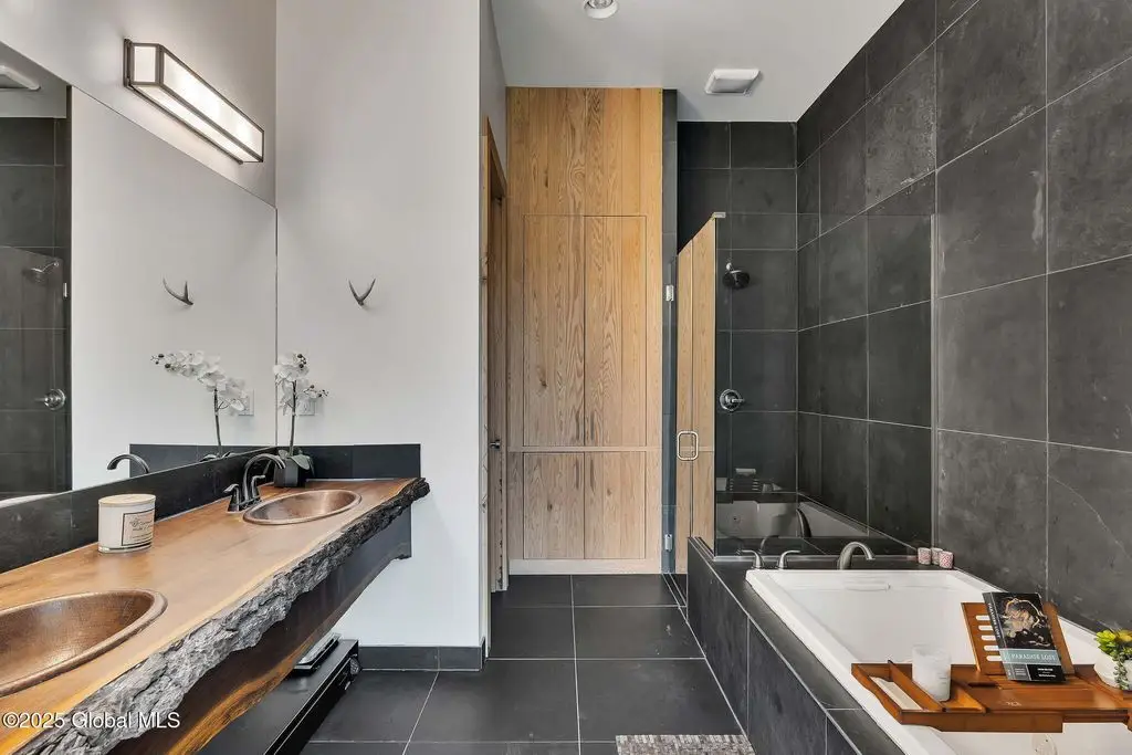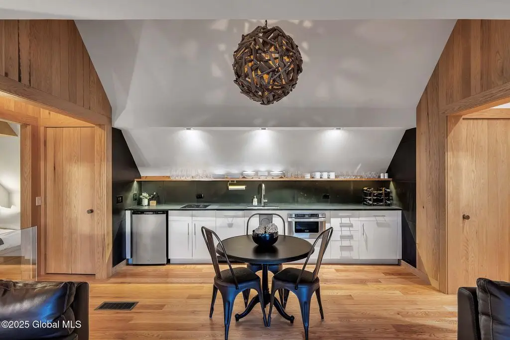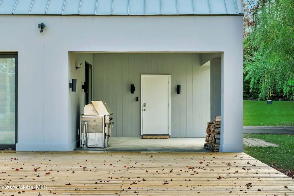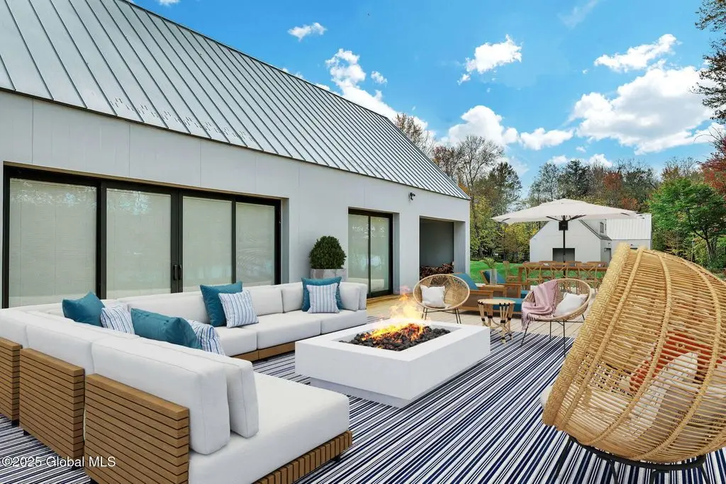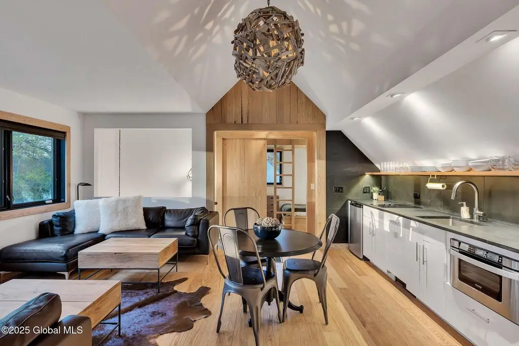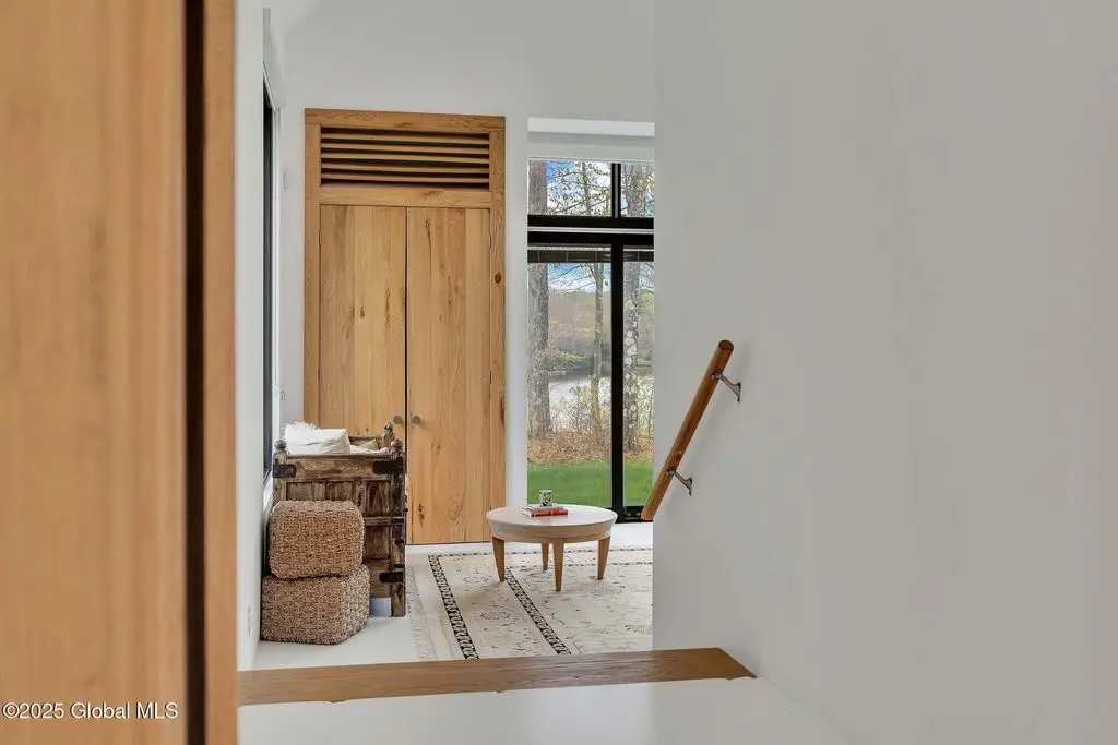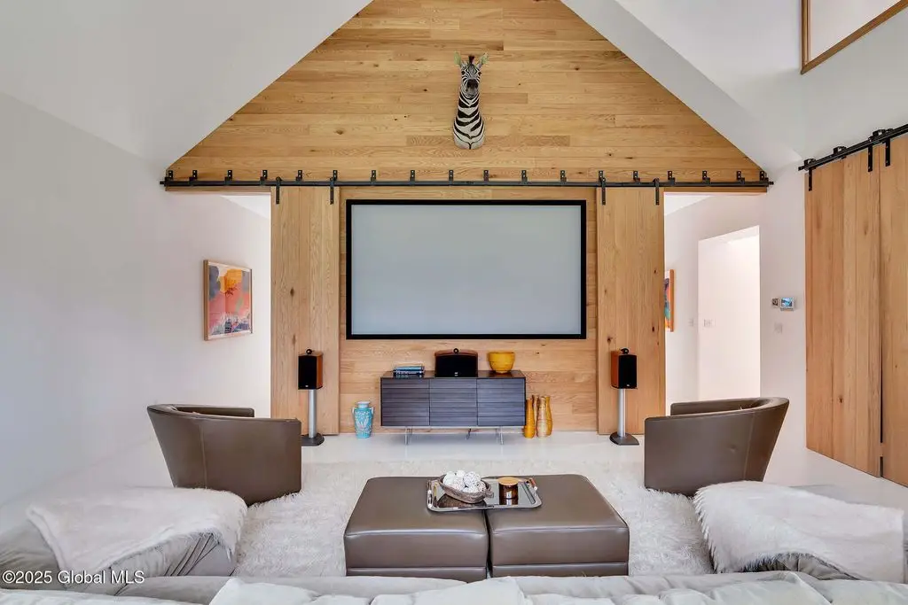 Introducing 500 Pond View Way, a bold modern retreat set on 700 feet of pristine lakefront on Dyken Pond. Designed by the internationally renowned firm Kallos Turin, this one-of-a-kind home blends dramatic architecture with serene waterfront living. It features soaring ceilings, white oak accents, and custom built-ins throughout. The Great Room offers a sleek modern kitchen, a spacious dining area, and a warm, inviting living space centered around a wood-burning fireplace. Walls of sliding glass doors frame peaceful views of the lake from nearly every room, and the primary suite is thoughtfully positioned to capture stunning water views. A separate two-bedroom guest house provides privacy for visitors, making it ideal for extended stays or rental potential. Enjoy quiet evenings or entertaining on the expansive lakeside deck. Residents may enjoy boating on this private 134-acre lake. There are no known restrictions for short-term rentals, making this a perfect opportunity for Airbnb. A beach permit is active for 500 Pond View, and the water depth is approximately four feet at the end of the dock. Sophisticated, peaceful, and perfectly in tune with nature, this is modern lakefront living at its finest.