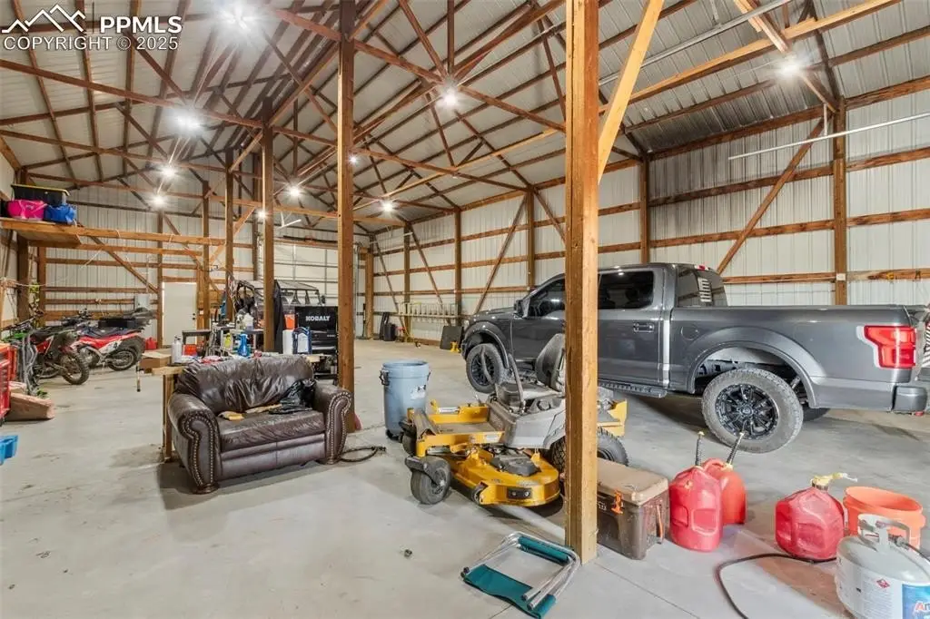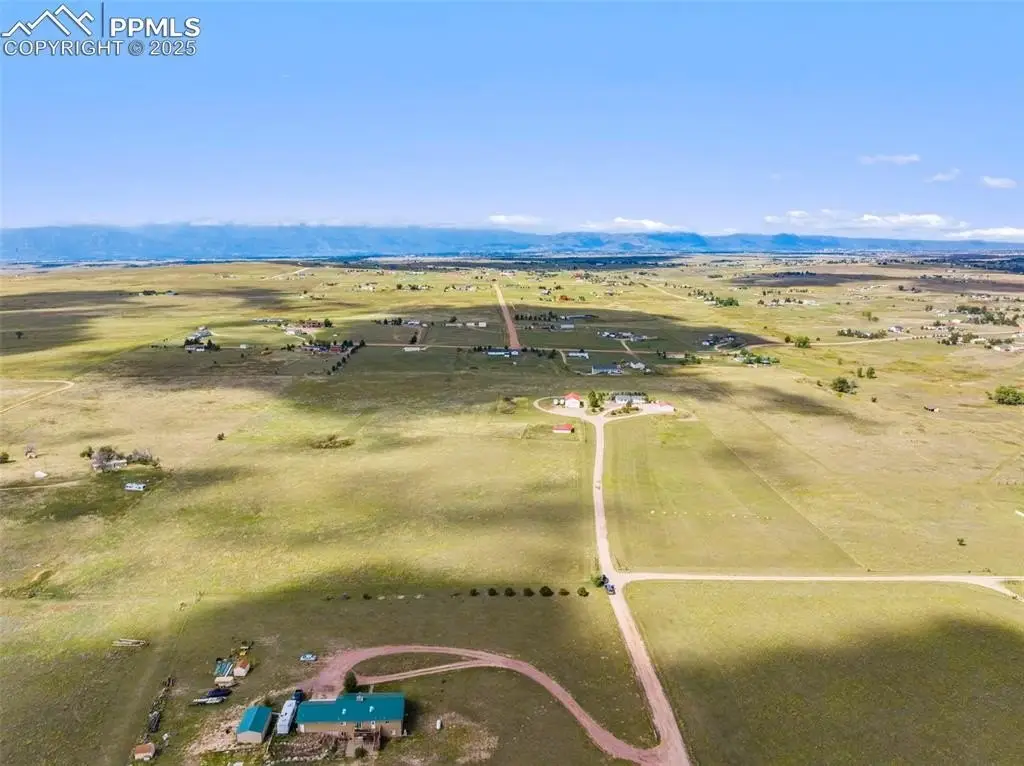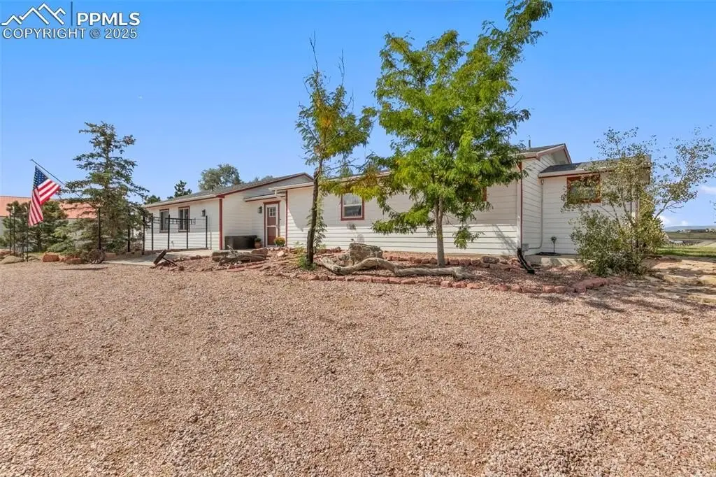 Welcome to this ranch-style retreat set on 35 acres atop a quiet cul-de-sac, just twelve minutes from Falcon. Step into a spacious main level that flows seamlessly with new flooring (2025). The living area is bright and inviting and the updated smart switches add a modern touch. The kitchen features a refrigerator, stove, and dishwasher, all updated in 2023, with plenty of workspace and storage. The primary suite and additional bedrooms are conveniently located on the main level. The bathrooms shine with thoughtful renovations—one updated in 2022 and another in 2024. Downstairs, you’ll find plush, high-end carpet (2022) and generous living areas ideal for entertainment or relaxation. A refreshed laundry room (2025), dual-zone heating with a new upstairs furnace, and central A/C for the main living spaces ensure year-round comfort. Dual hot water heaters, a whole-house fan, and a 50-amp generator inlet with lockout add peace of mind. Step outside to take in panoramic mountain views of Pikes Peak on the new concrete patio. The exterior boasts a new roof (2022), new storm doors (2024), dog doors opening to a fenced backyard, and a septic system installed in 2022. Thoughtfully designed outbuildings, including a fully concreted drive-through 35x60 shop, 12-foot chain-operated doors, separate power, water at both ends. Detached 3-car garage. Full electricity in both garages/shop. Additional sheds provide storage, including a renovated 12x20 building with a built-in chicken coop and a 10x10 for outdoor gear. Horse enthusiasts will appreciate the loafing shed with adjoining paddock, over 25 acres of fencing, and standpipes in the pastures. There are also three hydrants across the property, RV power and water hookups readily available, and a shooting range for recreation. With no HOA or covenants, this property offers unmatched freedom. All outbuildings feature durable metal roofing, and updated garage electrical (2023) ensures functionality for projects big and small.