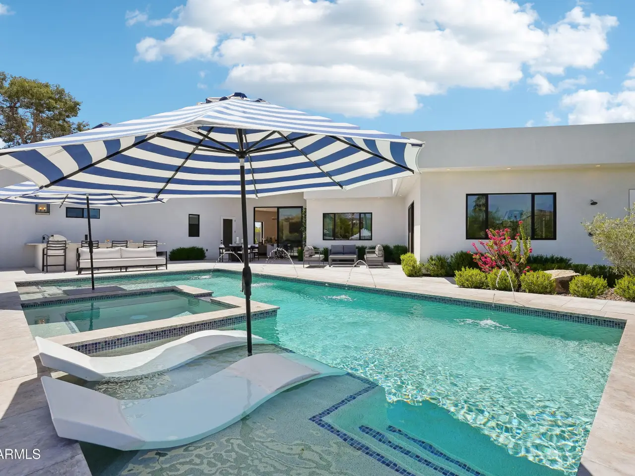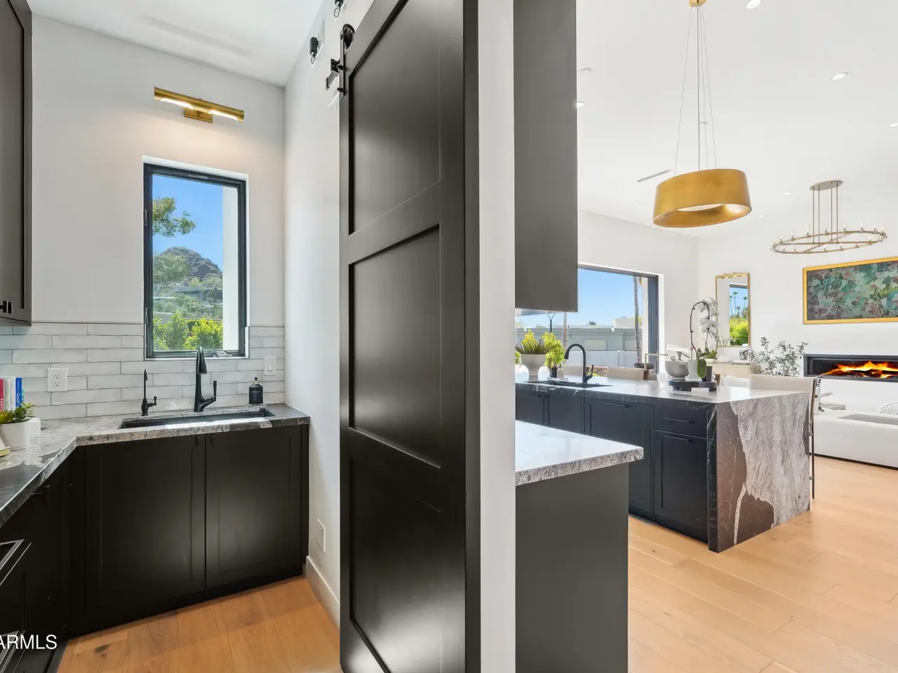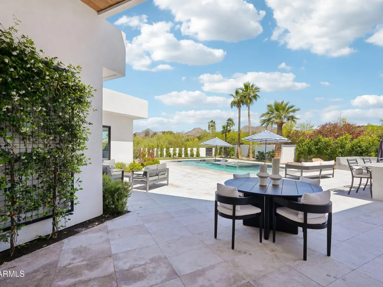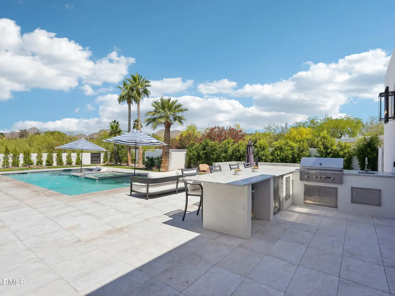 Built in 2023, this exquisite home is nothing short of stunning! Situated in the area of Paradise Valley/Arcadia at the base of Camelback and Mummy Mountains, this home offers 4357 square feet of luxurious yet easy living. Thoughtfully designed with 5 bedrooms and 5.5 bathrooms (includes an exterior pool bath and shower) The chef's kitchen is a true highlight, featuring dual dishwashers, double kitchen sinks, 48-inch dual fuel Monogram appliances, and a large butler's pantry with a second refrigerator, extra storage, and room for food preparation. Gorgeous finishes and features, further enhanced by homeowner, include natural wood and stone floors, designer lighting, surround sound throughout, Taj Mahal stone fireplace, synthetic grass and putting green, outdoor kitchen and speakers, steam shower in master bath, walk in closets, extra storage closets, storage racks in garage, Dry Cleaning Closet, and a secret safe room/closet. Also the home has many high-efficiency and smart home features, including foam insulation, north/south exposure, natural gas, saltwater pool system, Lutron lighting that automatically adjusts based on the sunset and sunrise, security features, thermostatic control, and a home automation system with a color touch screen for easy access and control. Experience views from every room in the house while enjoying the resort living lifestyle. This home is a must see, you are sure to fall in love!