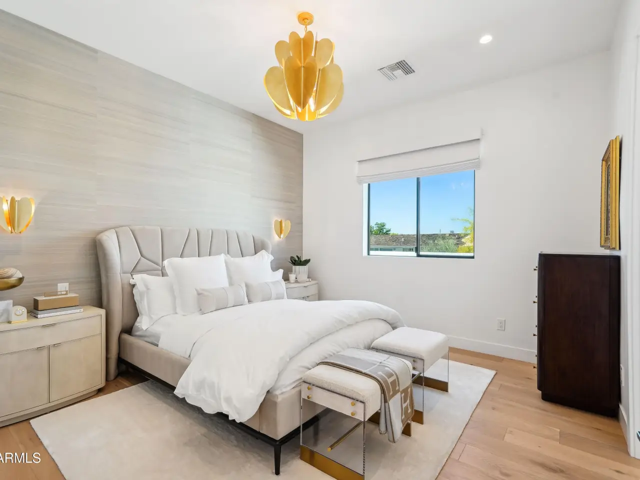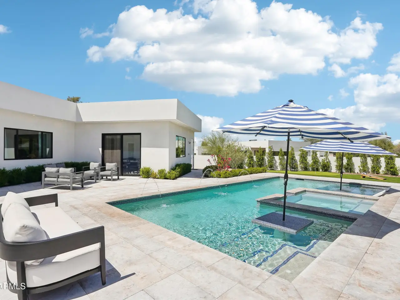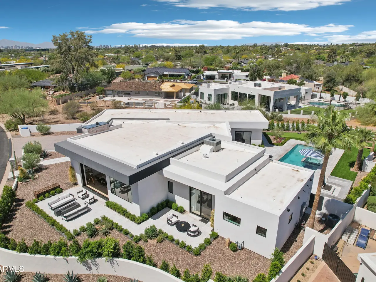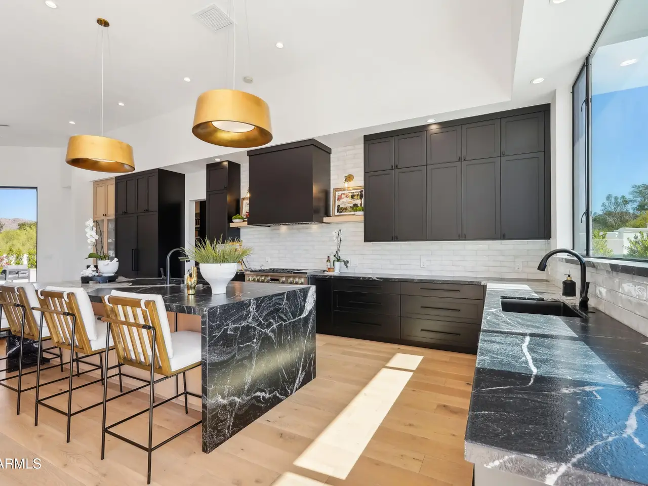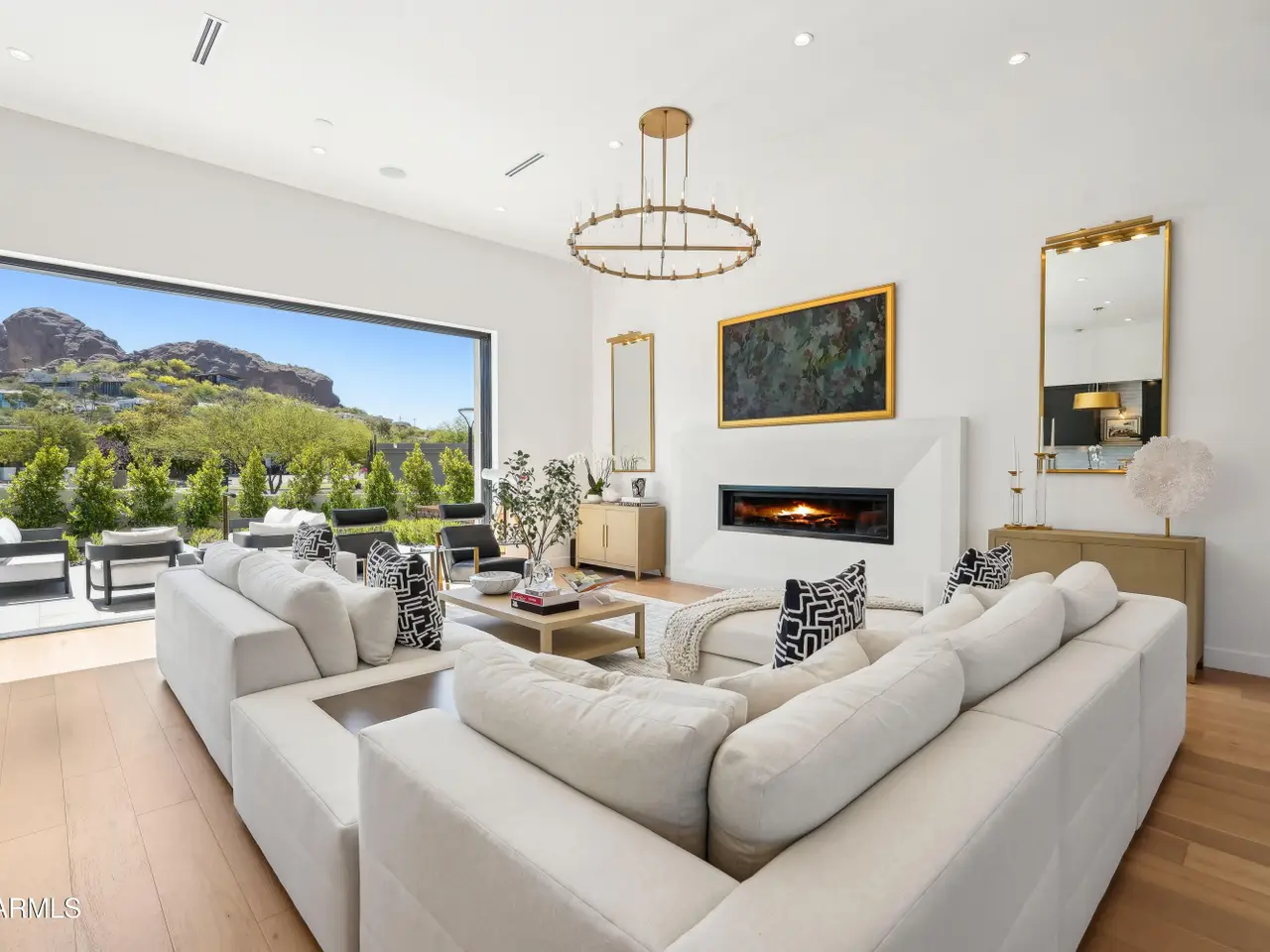 Built in 2023, this exquisite home is nothing short of stunning! Situated in the area of Paradise Valley/Arcadia at the base of Camelback and Mummy Mountains, this home offers 4357 square feet of luxurious yet easy living. Thoughtfully designed with 5 bedrooms and 5.5 bathrooms (includes an exterior pool bath and shower) The chef's kitchen is a true highlight, featuring dual dishwashers, double kitchen sinks, 48-inch dual fuel Monogram appliances, and a large butler's pantry with a second refrigerator, extra storage, and room for food preparation. Gorgeous finishes and features, further enhanced by homeowner, include natural wood and stone floors, designer lighting, surround sound throughout, Taj Mahal stone fireplace, synthetic grass and putting green, outdoor kitchen and speakers, steam shower in master bath, walk in closets, extra storage closets, storage racks in garage, Dry Cleaning Closet, and a secret safe room/closet. Also the home has many high-efficiency and smart home features, including foam insulation, north/south exposure, natural gas, saltwater pool system, Lutron lighting that automatically adjusts based on the sunset and sunrise, security features, thermostatic control, and a home automation system with a color touch screen for easy access and control. Experience views from every room in the house while enjoying the resort living lifestyle. This home is a must see, you are sure to fall in love!