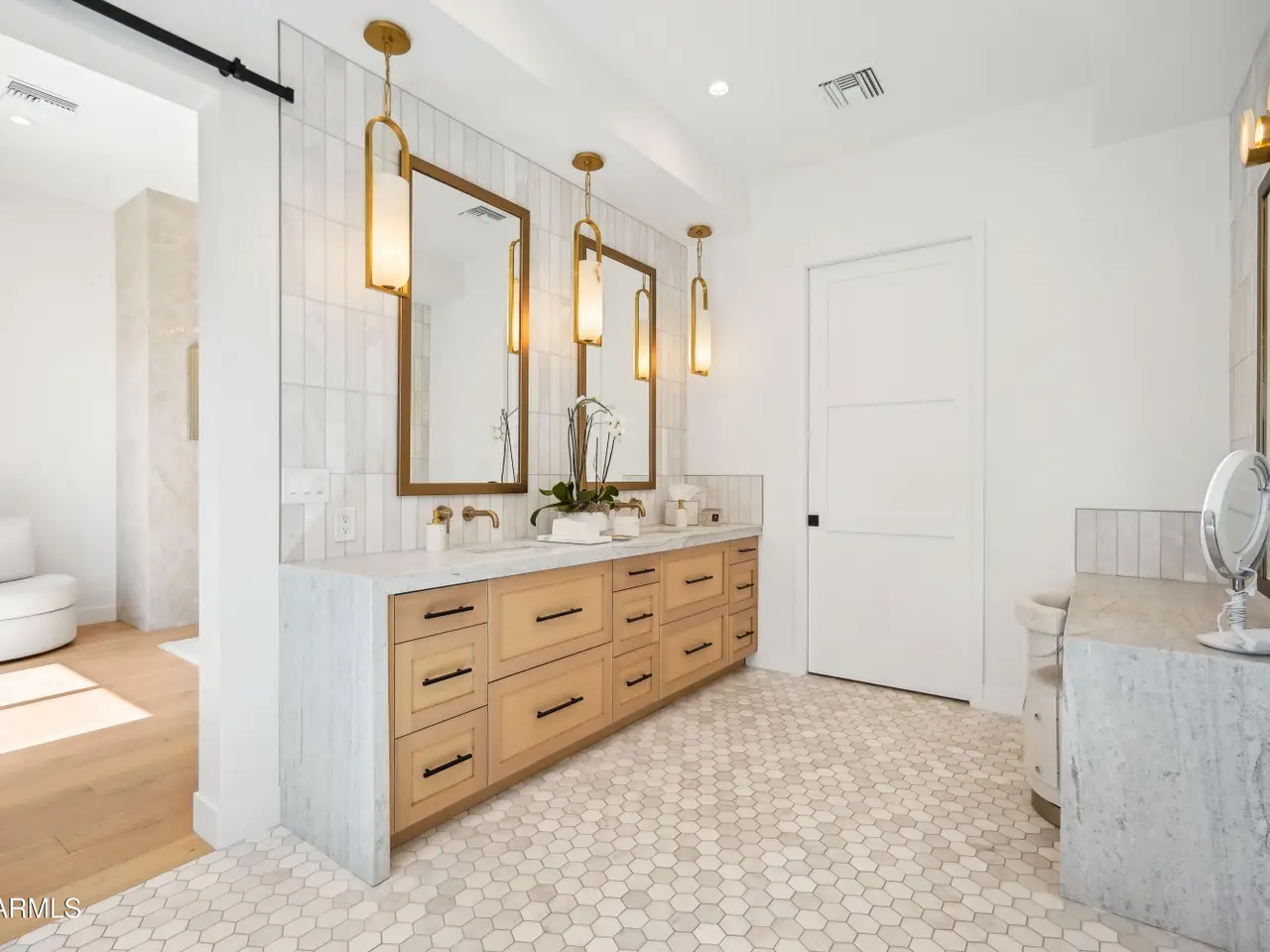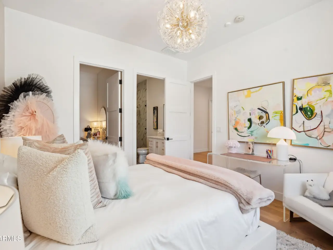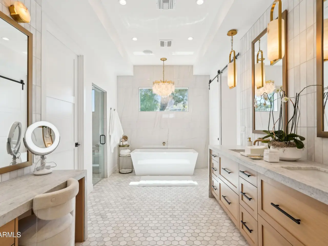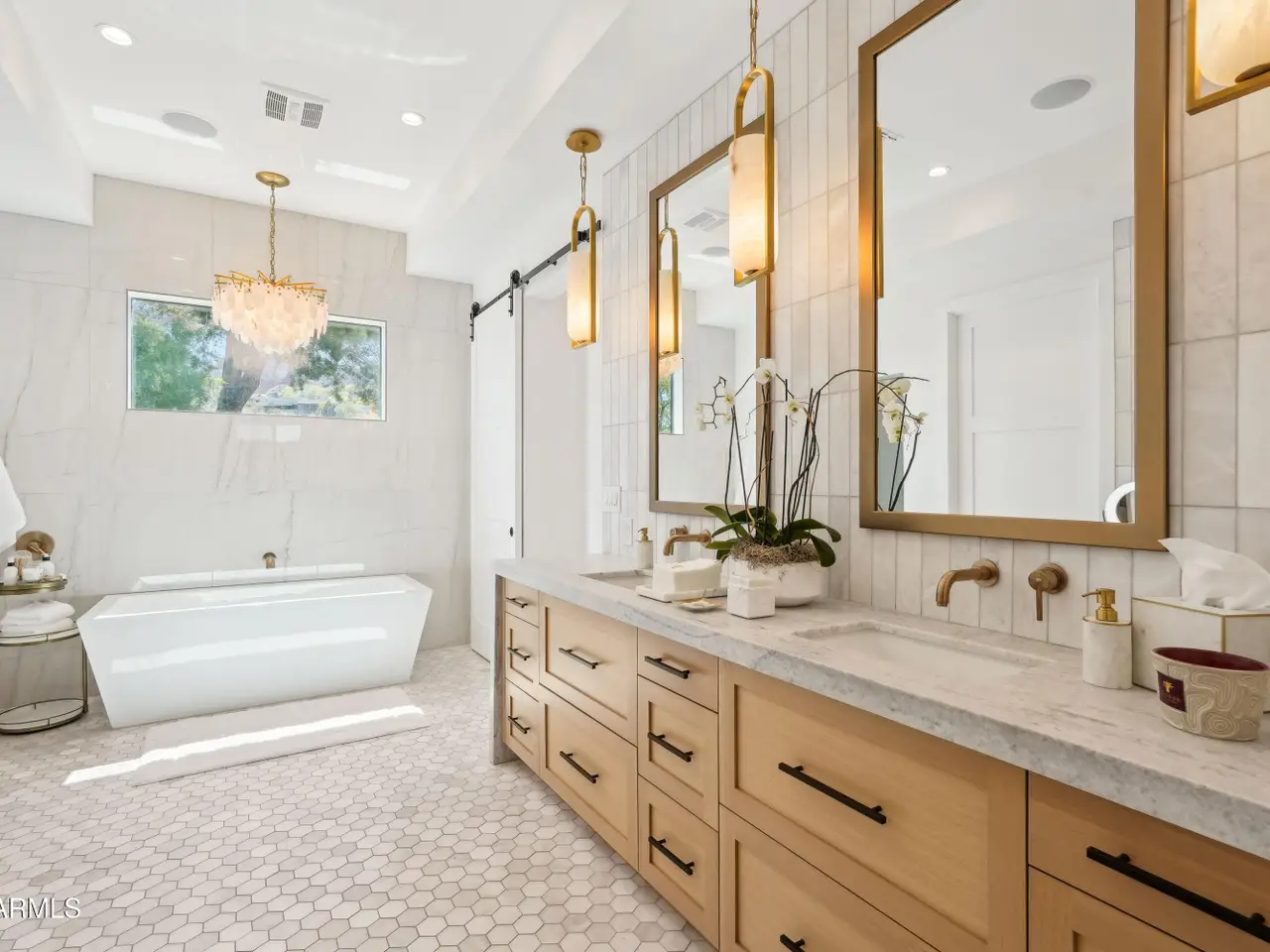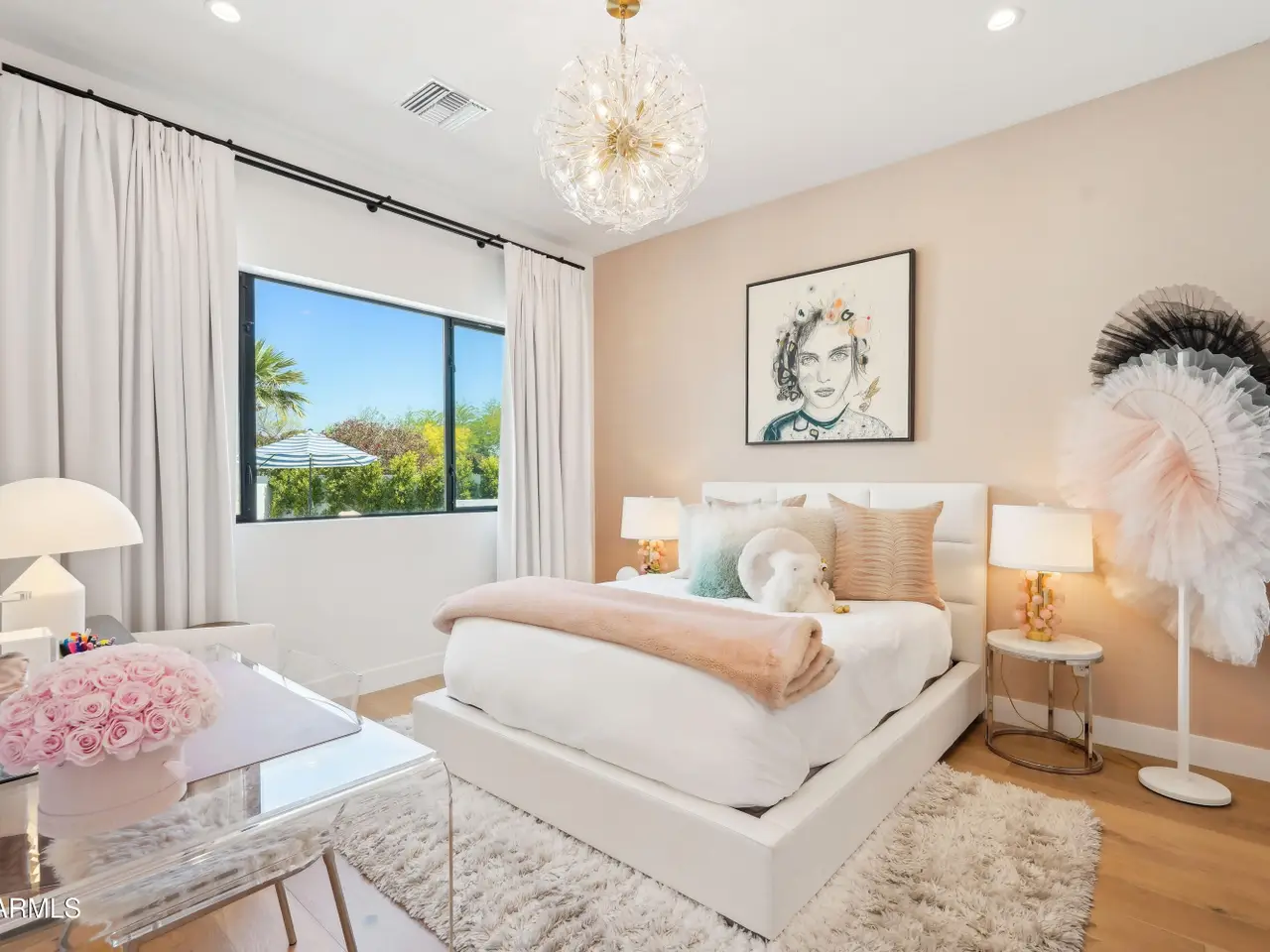 Built in 2023, this exquisite home is nothing short of stunning! Situated in the area of Paradise Valley/Arcadia at the base of Camelback and Mummy Mountains, this home offers 4357 square feet of luxurious yet easy living. Thoughtfully designed with 5 bedrooms and 5.5 bathrooms (includes an exterior pool bath and shower) The chef's kitchen is a true highlight, featuring dual dishwashers, double kitchen sinks, 48-inch dual fuel Monogram appliances, and a large butler's pantry with a second refrigerator, extra storage, and room for food preparation. Gorgeous finishes and features, further enhanced by homeowner, include natural wood and stone floors, designer lighting, surround sound throughout, Taj Mahal stone fireplace, synthetic grass and putting green, outdoor kitchen and speakers, steam shower in master bath, walk in closets, extra storage closets, storage racks in garage, Dry Cleaning Closet, and a secret safe room/closet. Also the home has many high-efficiency and smart home features, including foam insulation, north/south exposure, natural gas, saltwater pool system, Lutron lighting that automatically adjusts based on the sunset and sunrise, security features, thermostatic control, and a home automation system with a color touch screen for easy access and control. Experience views from every room in the house while enjoying the resort living lifestyle. This home is a must see, you are sure to fall in love!
