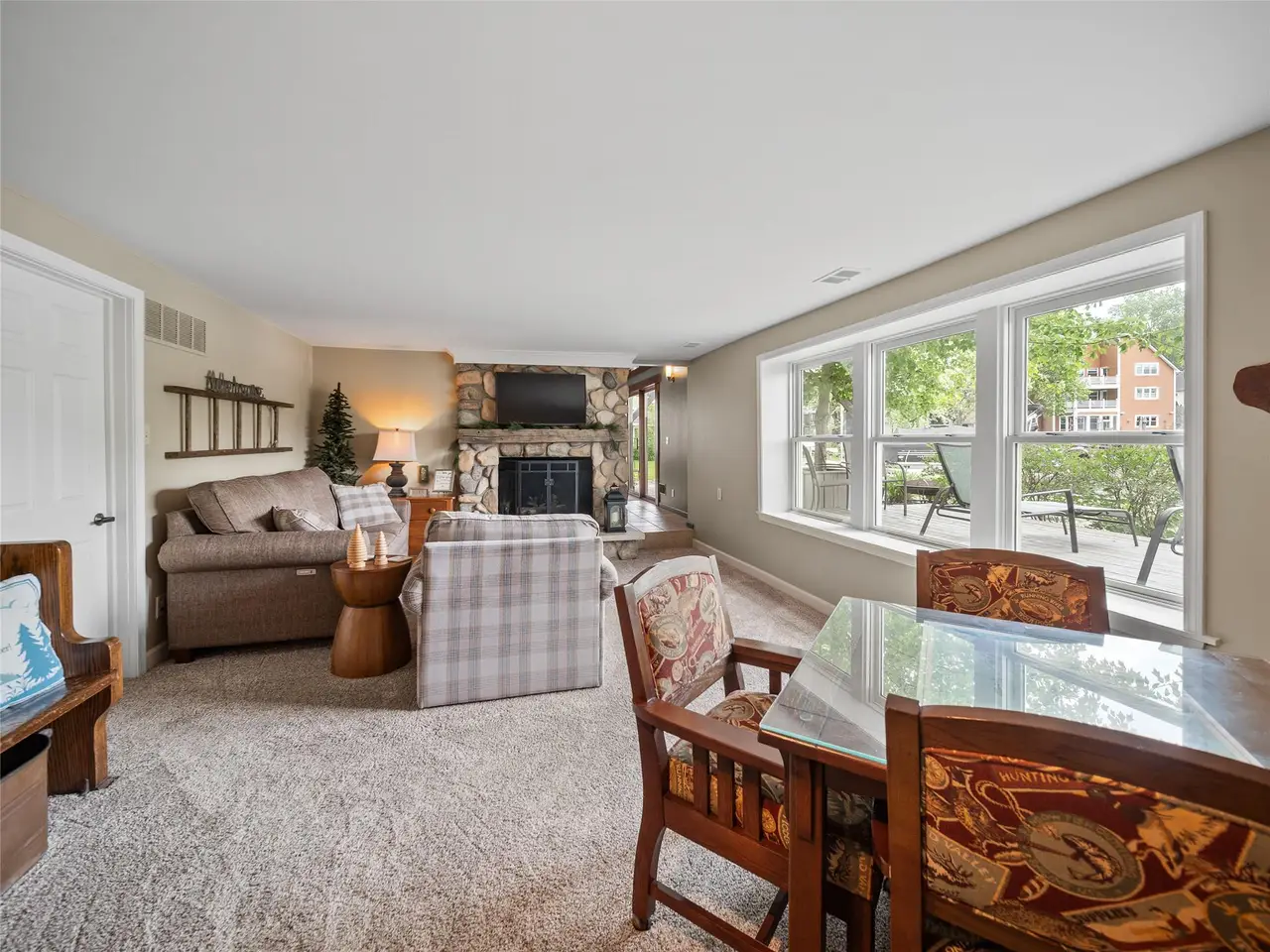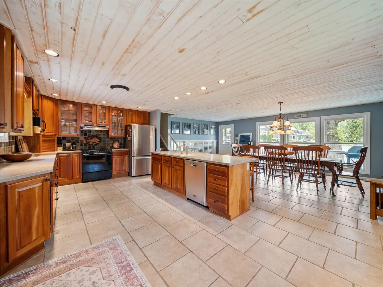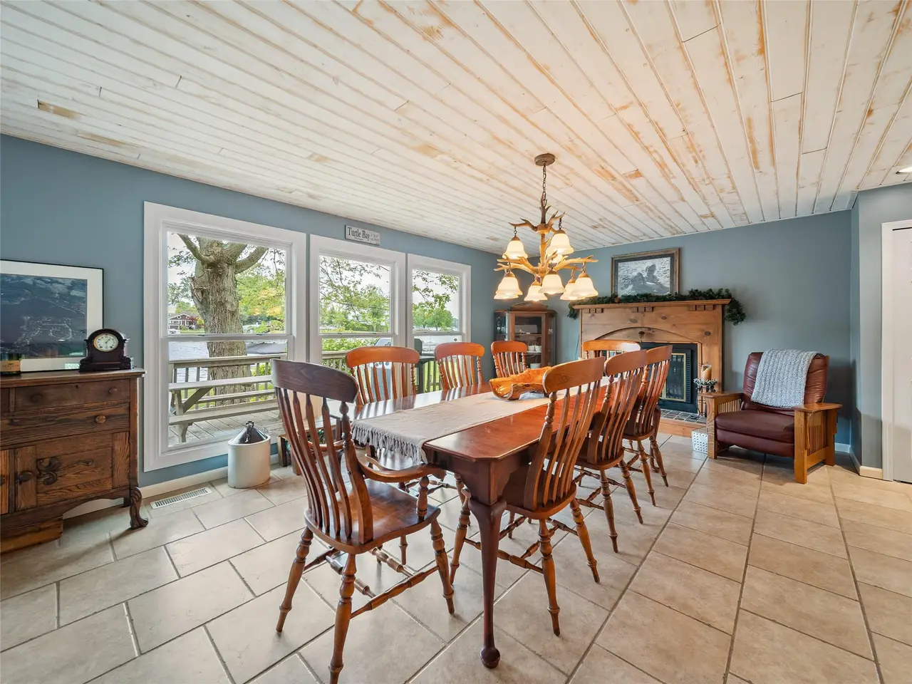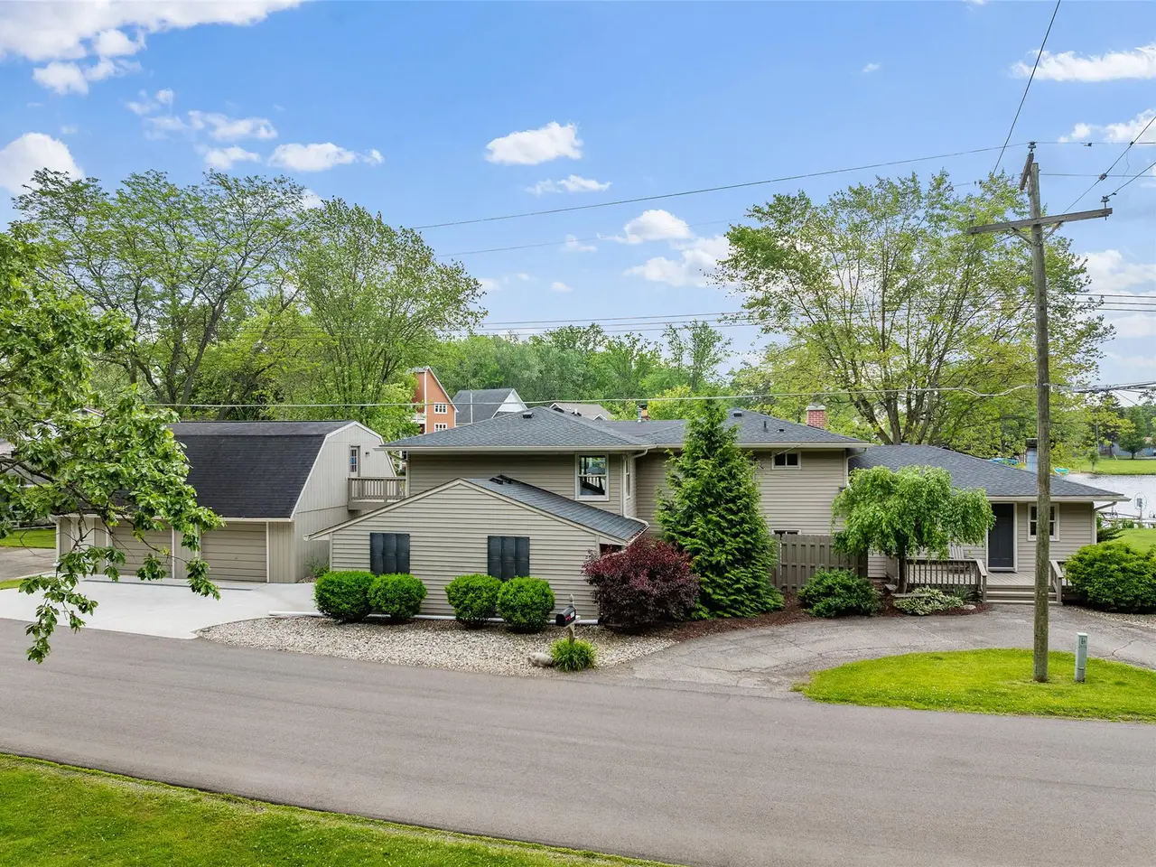 Welcome to Lake Life on All-Sports Strawberry Lake! This stunning 4-bedroom, 3-bath lakefront home offers 125 feet of private waterfront on one of Michigan’s desirable chains of lakes. With over 3,000 sq ft of living space, you’ll enjoy sweeping views, warm finishes, and comfortable spaces designed for both entertaining and relaxing. Step into the main living area with soaring ceilings, a wall of windows overlooking the lake, and a cozy loft above. The open-concept layout features a beautifully updated kitchen with custom cabinetry, island seating, fireplace and an expansive dining area that comfortably fits a crowd—all with panoramic water views. Cozy up in a spacious family room with a lodge-like feel, stone fireplace, media center, and easy access to the backyard and lake. Whether you’re enjoying coffee on spacious deck under the covered gazebo or sunset cruises on the water, this home is made for year-round enjoyment. Additional features include a large pole barn with space above ready to be finished for extra living quarters, a second lot across the street offering 2.30 acres of added privacy with unlimited potential. This is more than just a home—it’s a retreat. Whether it’s fishing, boating, or gathering with friends, Strawberry Lake living delivers a lifestyle you’ll treasure.