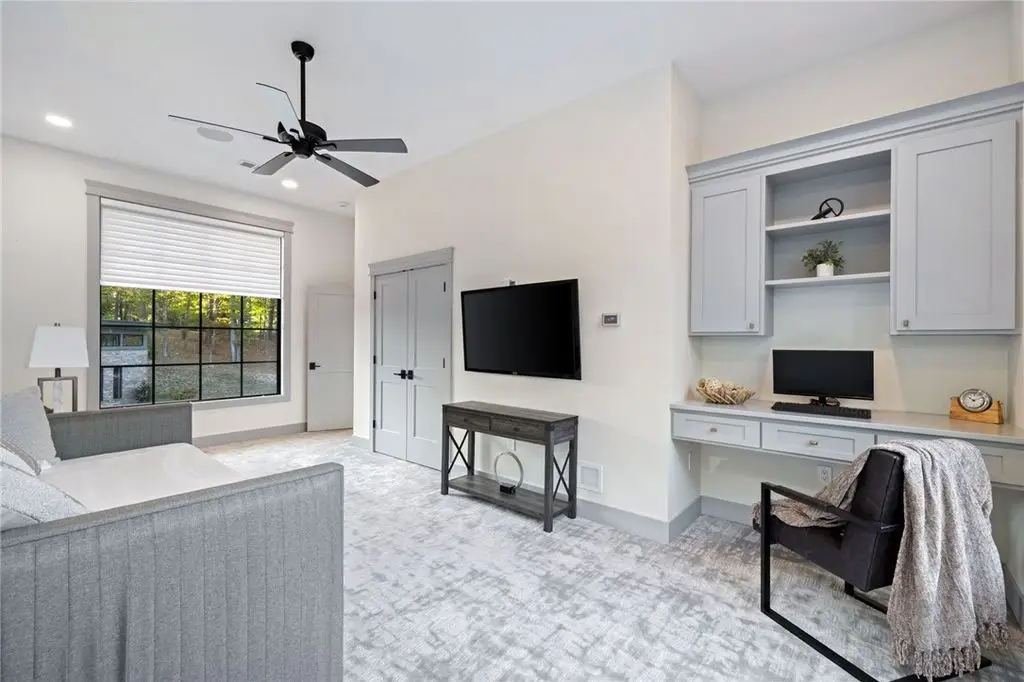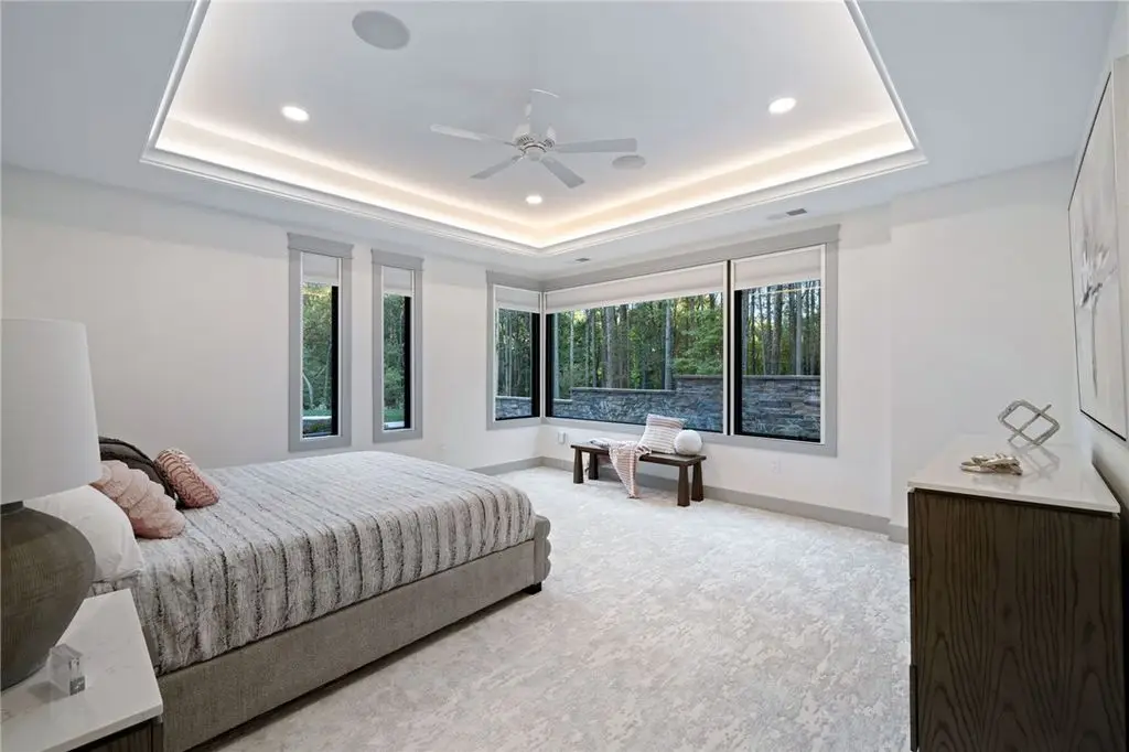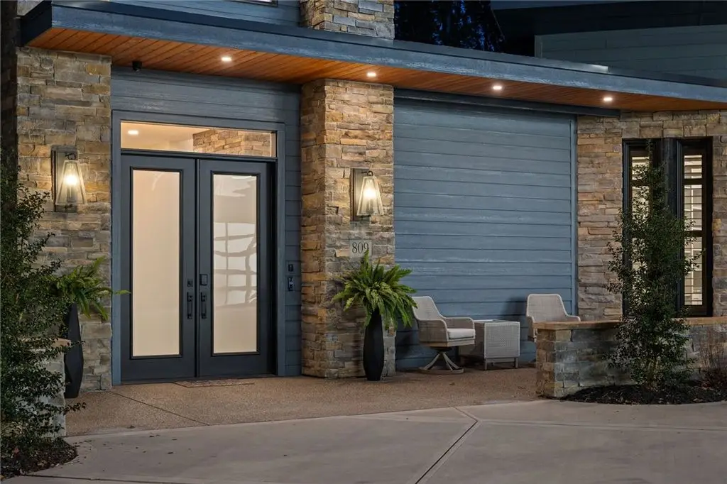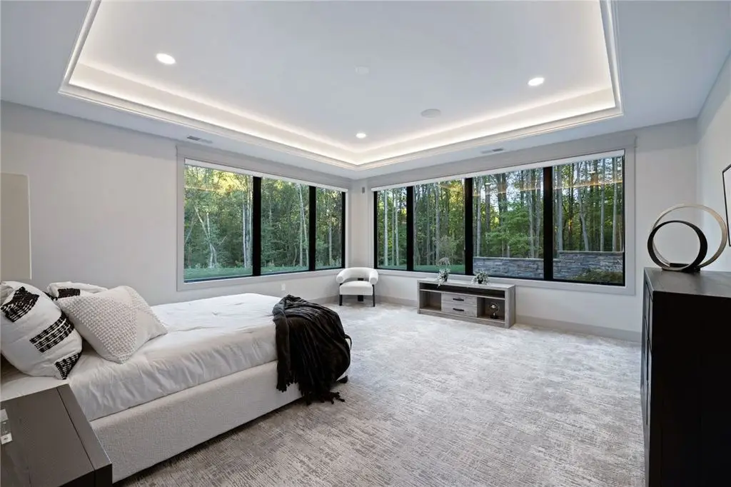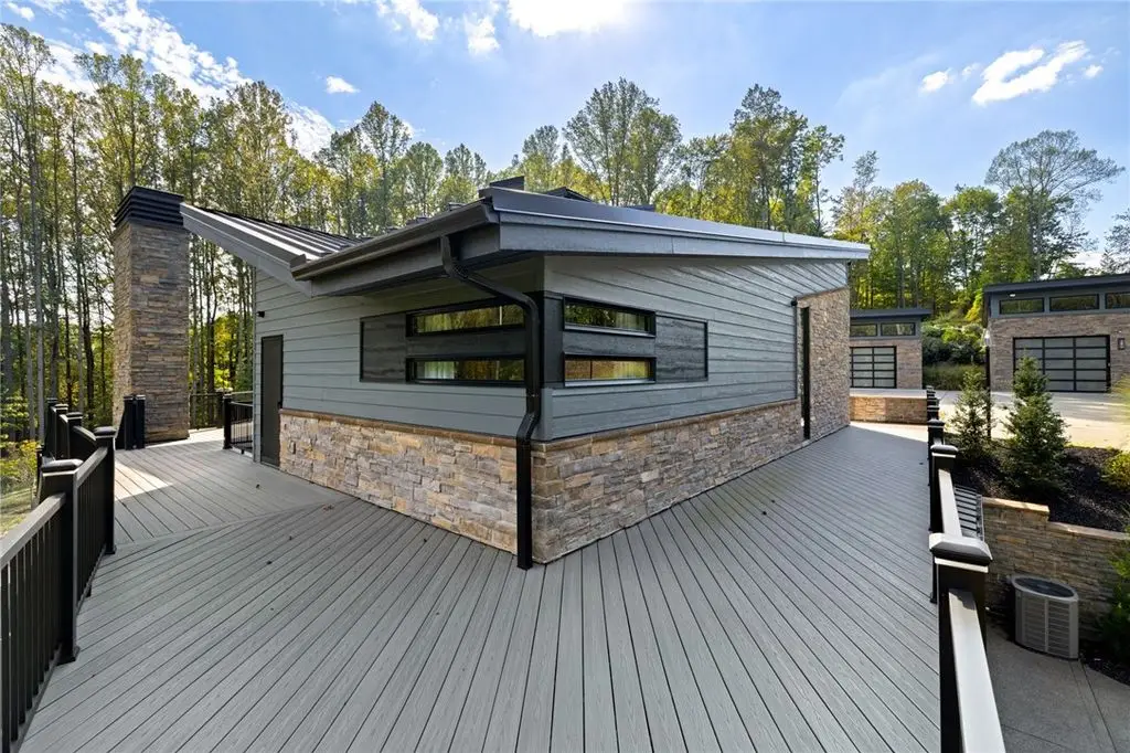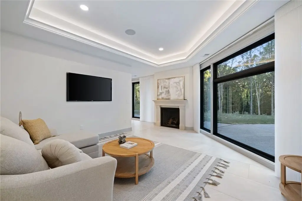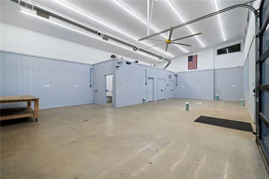 Welcome to a custom-designed home nestled in nature. This home offers privacy and stunning tree-lined views, all just minutes from modern conveniences. Step inside to a stone fireplace that connects the entry and living room. The oversized dining room is ideal for hosting, while the gourmet kitchen is a chef's dream - featuring Sub-Zero refrigerator, Wolf appliances and granite waterfall countertops. The main level also includes a prep kitchen. an office with custom built-ins and plantation shutters, a spacious media room, and owner's suite. Upstairs is a private ensuite bedroom. Smart home technology and radiant in-floor heating. The lower level is a second home, complete with its own gourmet kitchen, prep kitchen, living room, office, bedrooms, laundry, and full-size windows for lots of natural light. Sliding doors open to a covered patio with gas fireplace and kitchen. For the hobbyist or professional, a detached workshop includes a bathroom. Private gated drive and multiple garages.