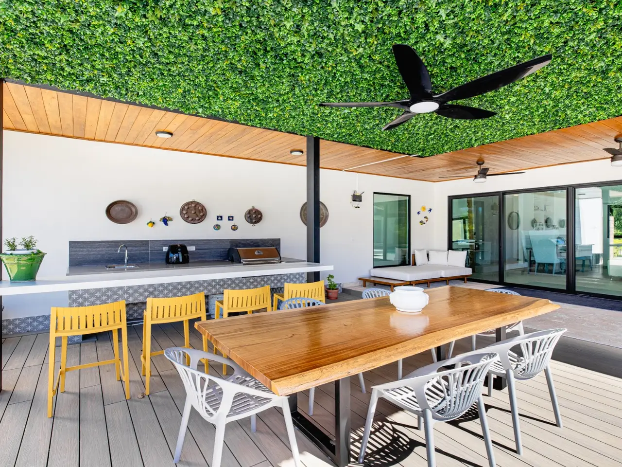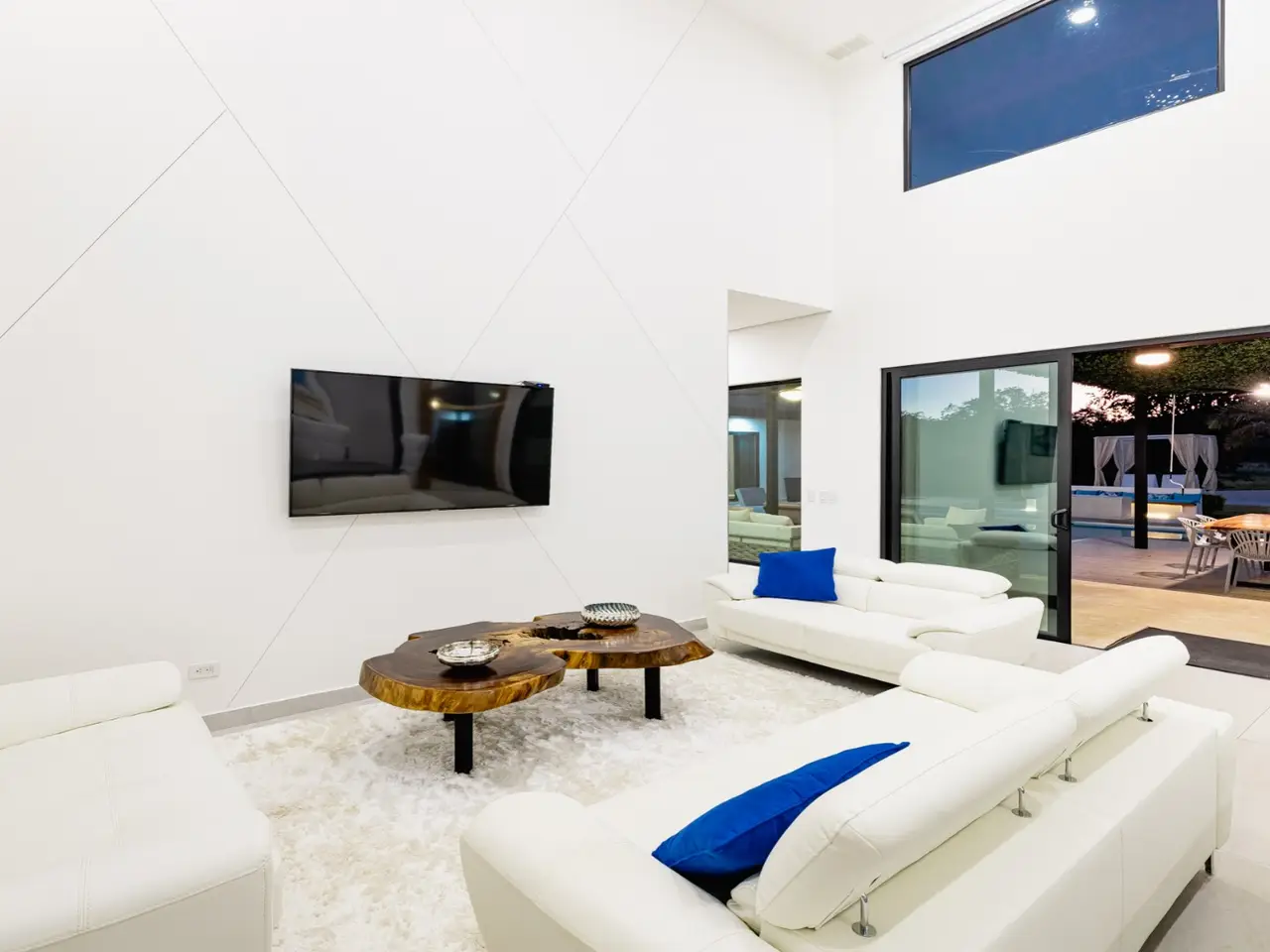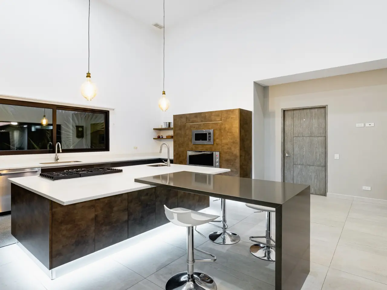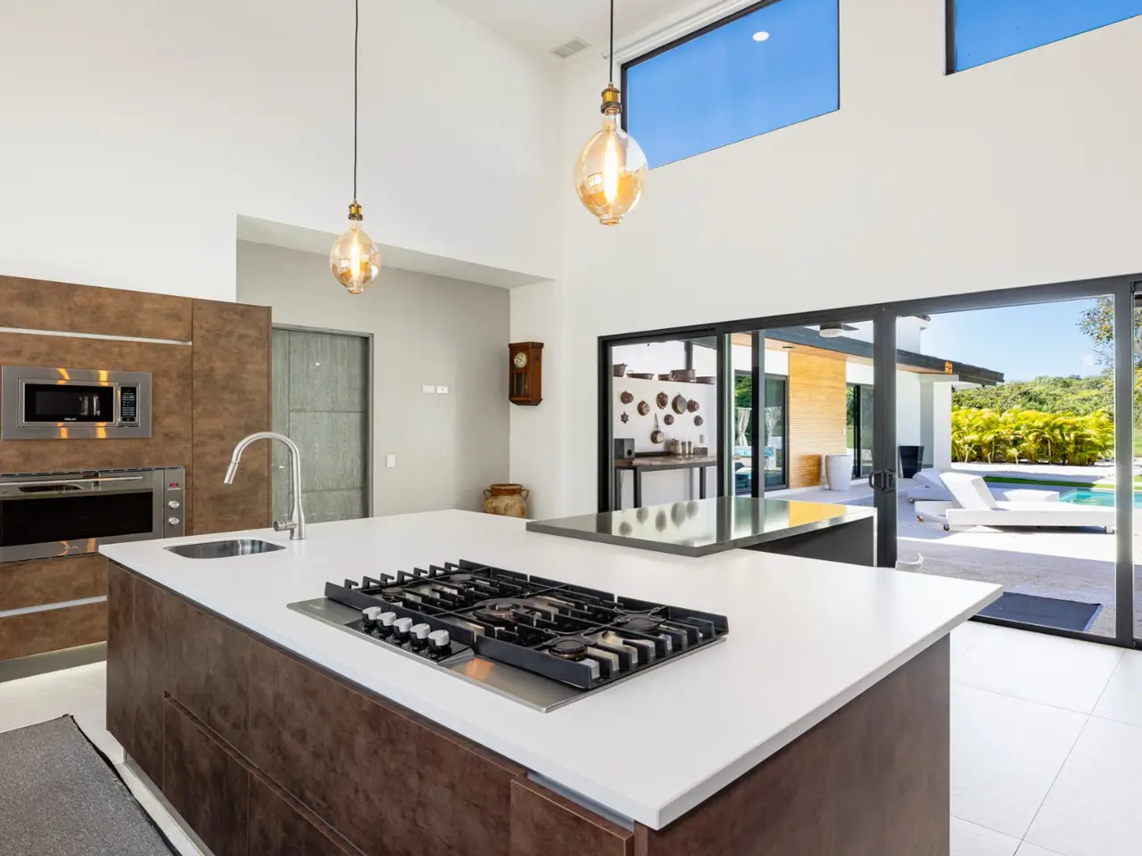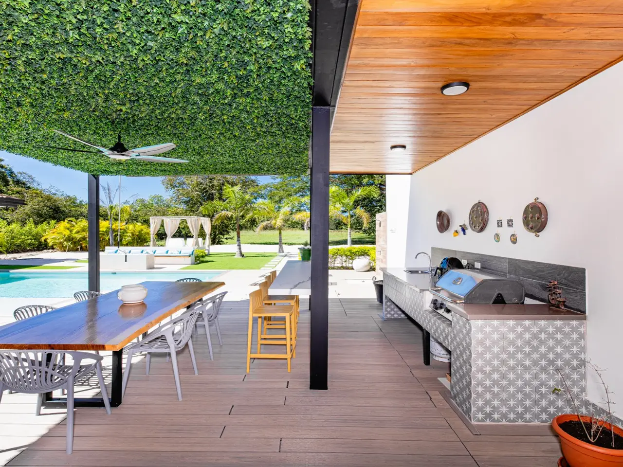 Introducing Los Almendros 51, a unique tropical-modern home that offers a very attractive blend of elegance, functionality, and comfort, along with a great sense of privacy and connection with nature. This stunning golf-front home is in the coveted Los Almendros community, within the very sought-after Hacienda Pinilla development, where you can find a plethora of luxury services, to cater for all tastes and where you can spend endless hours of fun and relaxation. Casa Los Almendros 51 comes fully furnished and comprises of 6 bedrooms, 6 bathrooms and 2 half bathrooms, with an ample living space of 5296 sq ft, a total construction of 7696 sq ft, within a lot of half an acre, giving you the space to host and entertain large groups of friends and family or for vacation rental purposes. In fact, the number of rooms, top notch amenities, its privileged location and low maintenance costs (solar panels, artificial grass, durable materials), makes Los Almendros 51 your ideal choice when looking for a property with great income generating potential. It already has future rentals accounting for $120,000 in just 2 months of being in the rental market. Upon arriving at the property, you will notice its modern design, crowned by an impressive lobby, ideal for meeting and greeting your guests. When entering the house, an ample hallway works as a preamble to the beautiful social areas of this home. The modern and spacious kitchen is the dream of people who love to cook, as it comes fully equipped with everything necessary to prepare delicious meals in a comfortable way. The ample cooking island and the rest of the cabinetry come with lights underneath, activated by contactless sensors, giving it a modern and classy effect. The high ceiling keeps the kitchen cooler and allows for lots of natural light to fill that area. Next to the kitchen is the laundry room and the two cars' garage, both areas are sizeable. Towards the right are the living and dining room, beautifully furnished and seamlessly integrated with the terrace and pool area through glass sliding doors. A hallway connects the social area with the half bathroom and two master bedrooms, each comprising of walking closet and ensuite bathroom. Both bedrooms are tastefully decorated with tropical murals, bringing color and join to them. The other four bedrooms are distributed two on each side of the pool and each bedroom has its own ensuite bathroom. This distribution gives good privacy to guests and easy access to the pool and terrace area. The terrace offers lounging chairs with a stunning view of the pool and the green areas, where you can soak up all year-round sunshine and be mesmerized by breathtaking sunsets. The BBQ area offers a dinner table and a large countertop with a built-in grill, ideal to enjoy meals and gatherings under the beautiful Costa Rican weather. The impressive pool area is crowned by a fire pit and an outdoor bathtub surrounded by palms, where you can have very relaxing baths under the stars. Another key feature of Los Almendros 51 is a brand new cinema for twelve people, adding to the great value proposition of this home and maximizing the potential for rental income. Hacienda Pinilla it’s a 4500-acre gated community with 3 miles (5km) of coastline and just 15 minutes from the world famous, Playa Tamarindo and just 1 hour away from Liberia International Airport. Within this luxury community, you’ll find multiple world-class surf spots, an 18-hole golf course, an exclusive beach club & restaurant, equestrian center with horseback riding, 2 tennis courts, 40km of mountain bike trails and the JW Marriott, that encompasses 5 restaurants, spa and the largest pool in Central America. In Hacienda Pinilla you will find a place where the deep legacy of a Costa Rican ranch is perched on the shores of the pristine waters of the Pacific Ocean in one of Costa Rica’s most spectacular settings. A place where every day brings a new experience and lasting memories.