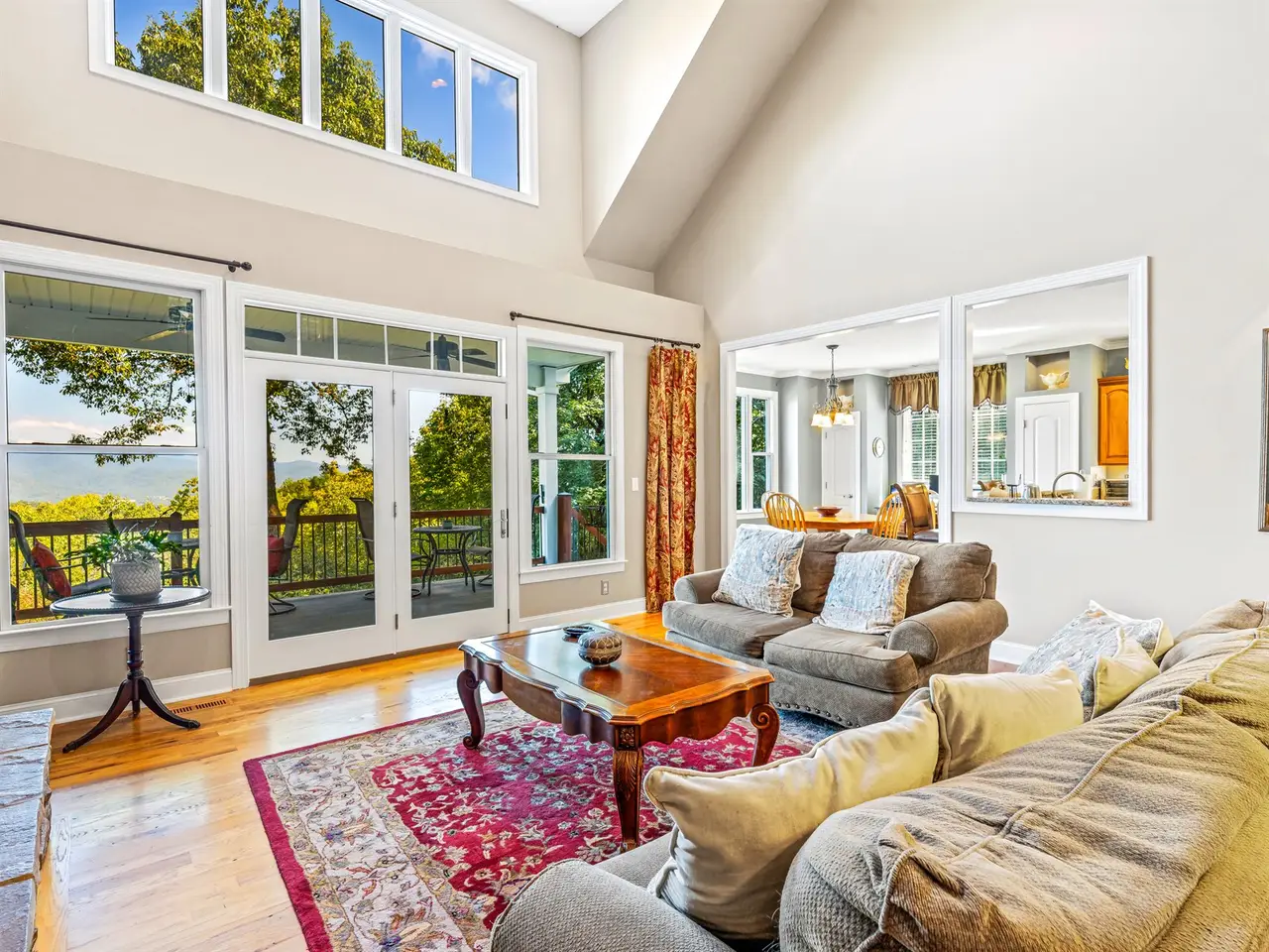 Experience Mountain Living minutes from Downtown Brevard. Nestled on 5 private acres in an established community, this 3-bedroom, 3.5-bath home offers the perfect balance of privacy, space, and convenience, just minutes from downtown Brevard. Built in 2004, the home captures breathtaking long-range views of Pisgah National Forest, with a glimpse of iconic Looking Glass Rock and Mount Pisgah.Inside, the main level welcomes you with an open-concept living space designed for gathering. The living room features cathedral ceilings and a dramatic floor-to-ceiling stacked-stone fireplace, creating a warm and inviting focal point. Natural light floods the space, and French doors open to the covered porch, making it easy to take in the year-round views. The kitchen is a true hub for entertaining with a breakfast nook, bar seating, center island with cooktop.The main-level primary suite feels like a private retreat, complete with a walk-in closet, spa-like bath with shower and soaking tub, and private access to the porch?an ideal spot for morning coffee with a mountain backdrop.Upstairs, you'll find two spacious bedrooms with a split-bedroom layout, each with a bath nearby, plus a versatile bonus room and extra storage space. The lower level includes a generous workshop, a second single-car garage, and opens to a patio and carport?perfect for hobbies or additional parking.The gently sloped property offers a small backyard and garden area, making it easy to enjoy outdoor living. With Hardie Plank siding, cultured stone accents, oak hardwood floors, and thoughtful design throughout, this home is as practical as it is beautiful.This is the first time this property has been offered on the market?a rare find combining acreage, views, and convenience to town.
