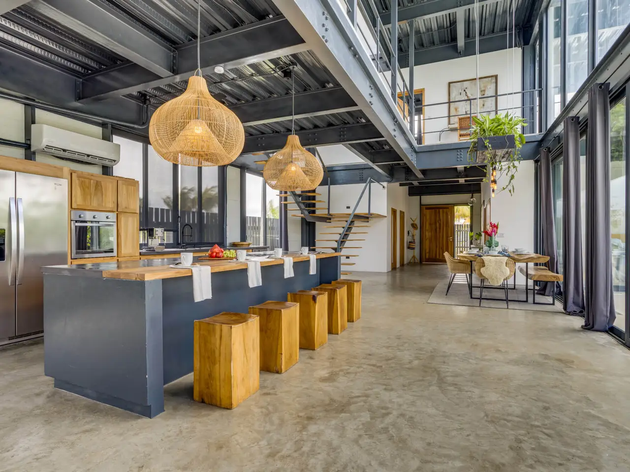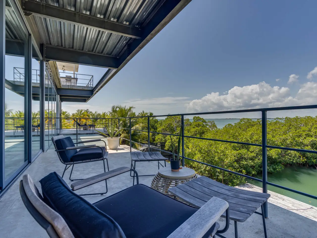 Discover Casa Balam, a striking 5,600 sq. ft. villa set on 200 ft. of lagoon frontage in a serene residential enclave on the Placencia Peninsula. Blending modern luxury with tropical living, this steel-and-concrete masterpiece was engineered with hurricane-resistant features and designed for style, comfort, and functionality. Inside, the open-concept great room boasts floor-to-ceiling hurricane-rated windows, a chef’s kitchen with commercial-grade appliances, and elegant living and dining areas. The lower level offers a guest suite with an ensuite bath, a second bedroom with a shared bath, and direct access to the expansive pool deck with a 40 ft. pool and private dock. Upstairs, a floating staircase leads to a mezzanine lounge with a custom workstation, flanked by two lavish master suites with private balconies and sweeping lagoon views. The primary master features a spa-like bath, oversized walk-in closet, and access to an outdoor entertainment area with a fire pit, picnic space, and wood-fire oven. For the ultimate in outdoor living, the rooftop deck includes a bar, shaded lounge, and dining area perfect for sunsets and stargazing. Premium finishes throughout include Balinese and local furnishings, custom chandeliers, alpaca rugs, and built-in entertainment features such as a media lounge and full-size table tennis setup. Surrounded by manicured, edible landscaping and fully air-conditioned for year-round comfort, Casa Balam also generates up to $1,500 USD per night as a luxury rental making it an exceptional residence and investment opportunity.